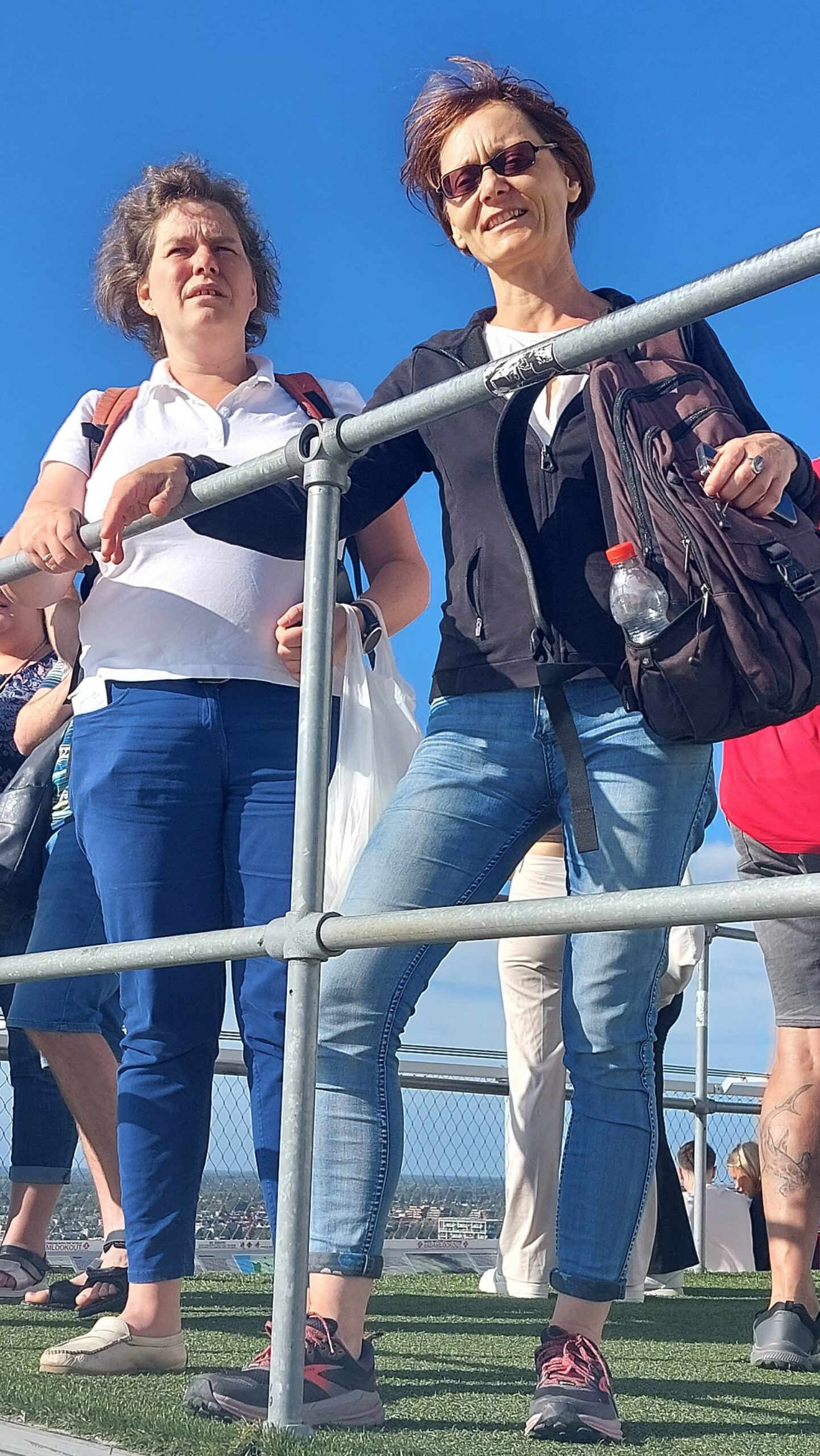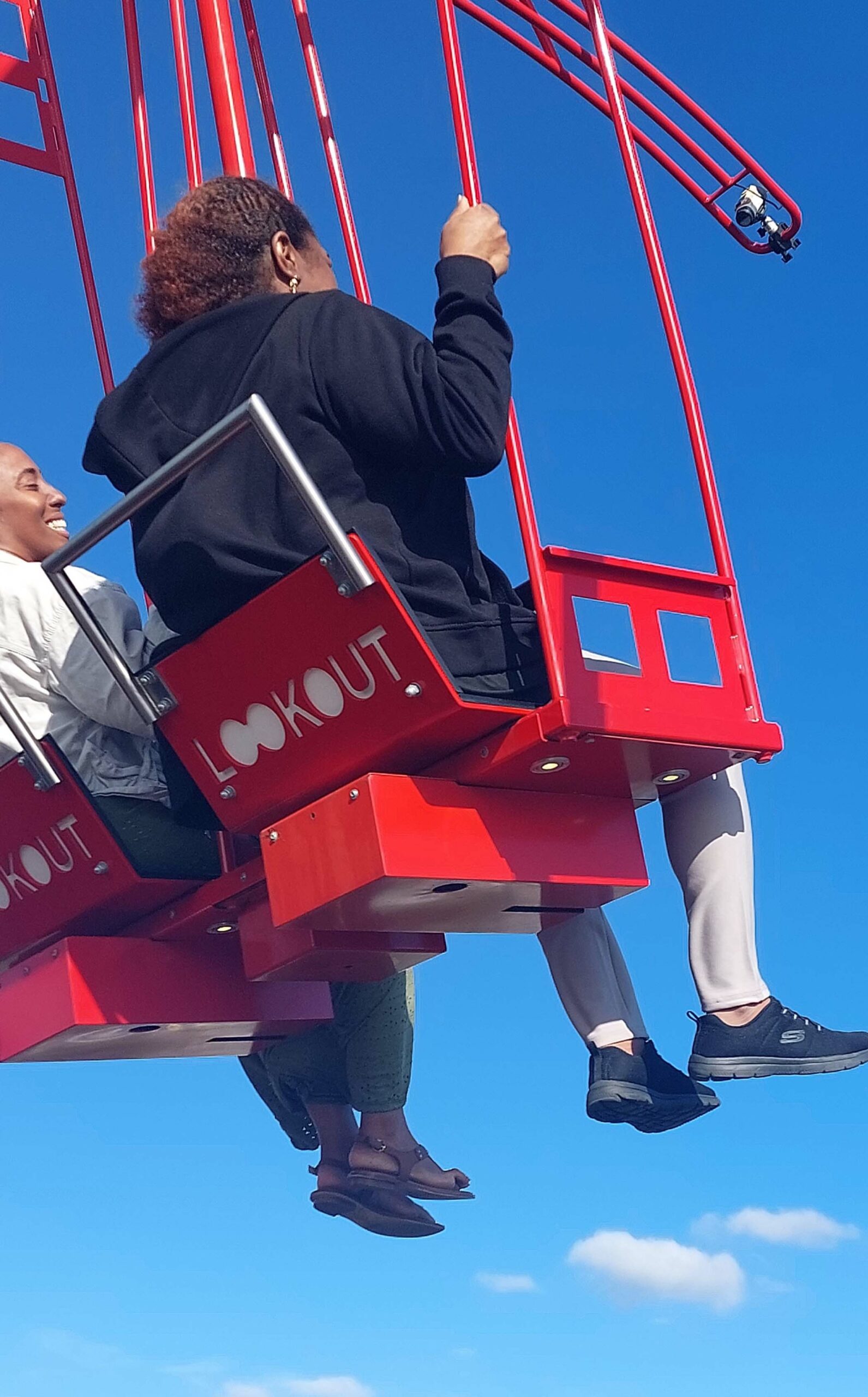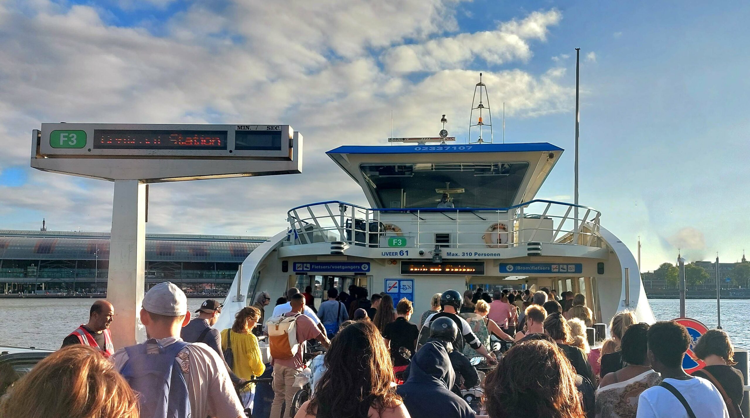 Zum Ende es ausgefĂŒllten Tages lassen wir uns mit der kostenlosen FĂ€hre ĂŒber den Ij ins Stadtviertel Noord, schippern. Hier steht das Hochhaus A‘dam Toren mit einer fantastischen 360-Grad Aussichtsplattform und der höchsten Schaukel Europas! In nur 22 Sekunden sausen wir mit dem Lift 100 Meter nach oben. Wow, das Panorama auf Amsterdam ist traumhaft. Genau der richtige Ort, um jetzt den Hering zu schnabulieren! Wir haben großen Spaß und beenden den Tag bei einem Aperol Sprizz!