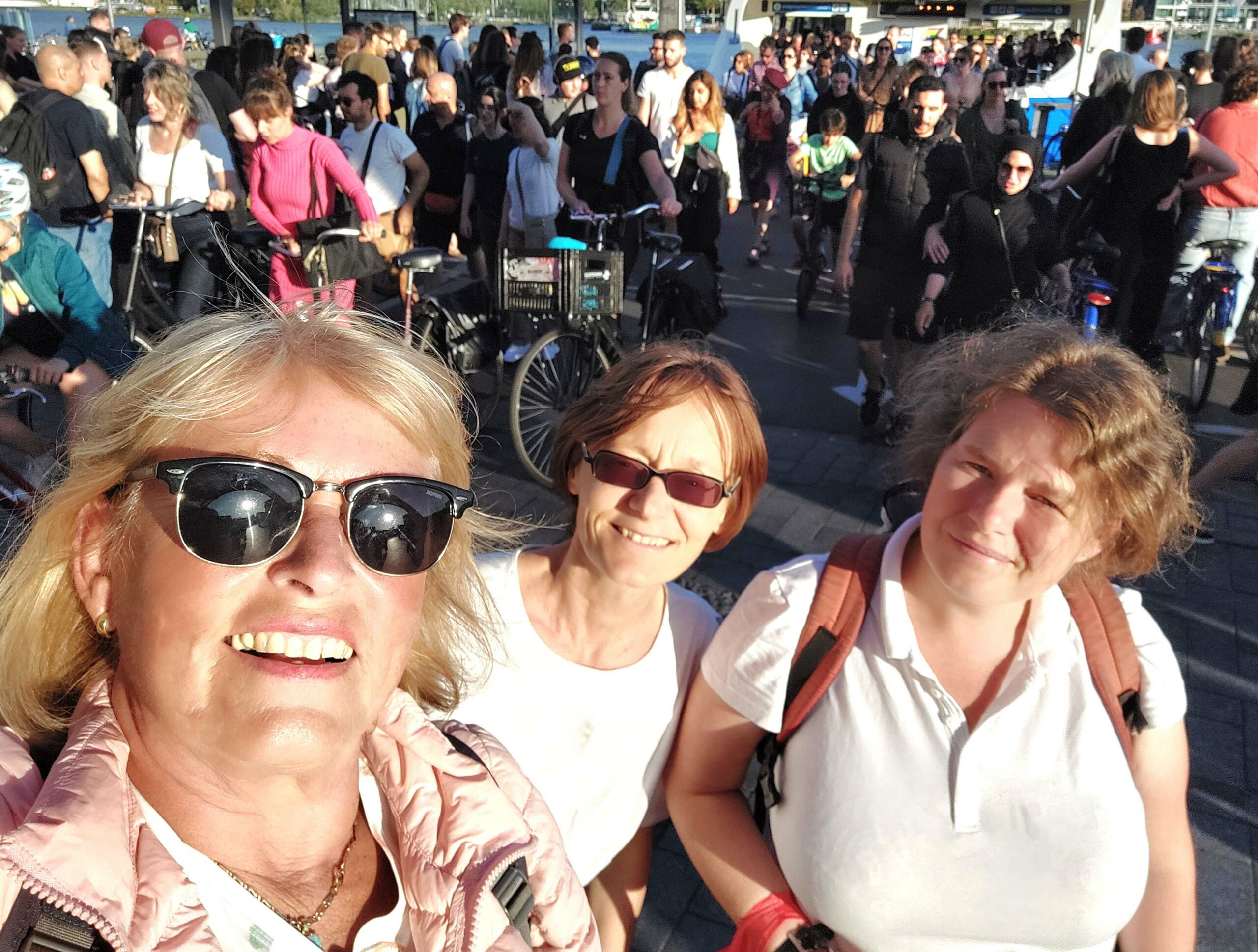 EnttĂ€uschung braucht Futter. Also ab auf den Noordermarkt. Hier gibt’s frischen Matjes nach Amsterdamer Art! Birgit und Ines lĂ€uft schon das Wasser im Mund zusammen.