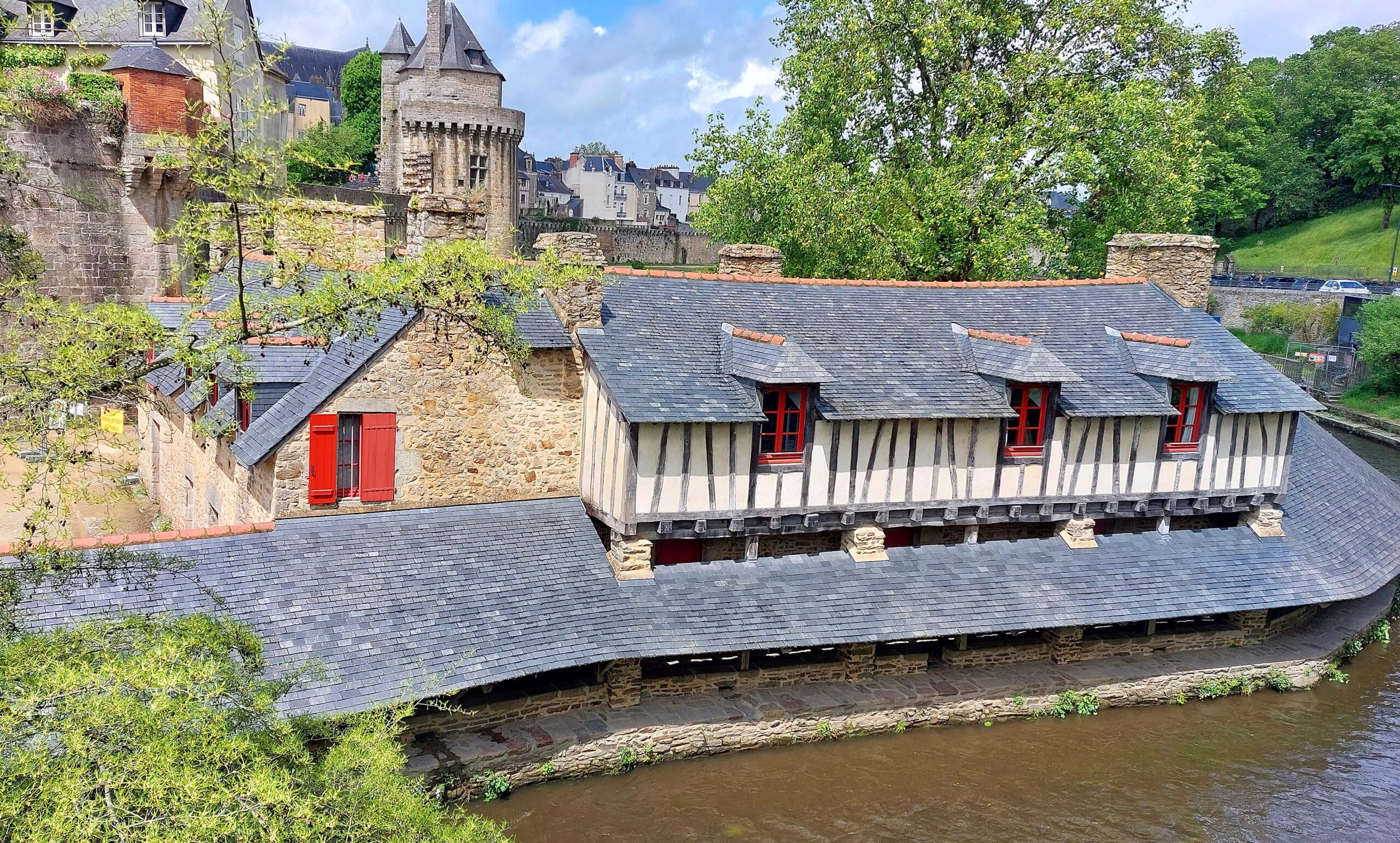 Zu den Festungen gehören die öffentlichen Waschplätze, bedeckt mit einem langen Schieferdach, dass sich über die Marle neigt. Der Ort ist wahrhaftig ein Schmuckstück! Ich bin happy, 😁😁😁 dass ich die Parkplatzsuche nicht aufgegeben habe. Ich hätte wahrlich etwas verpasst! Zumal es das letzte Fleckchen in der Bretagne gewesen ist! 👋