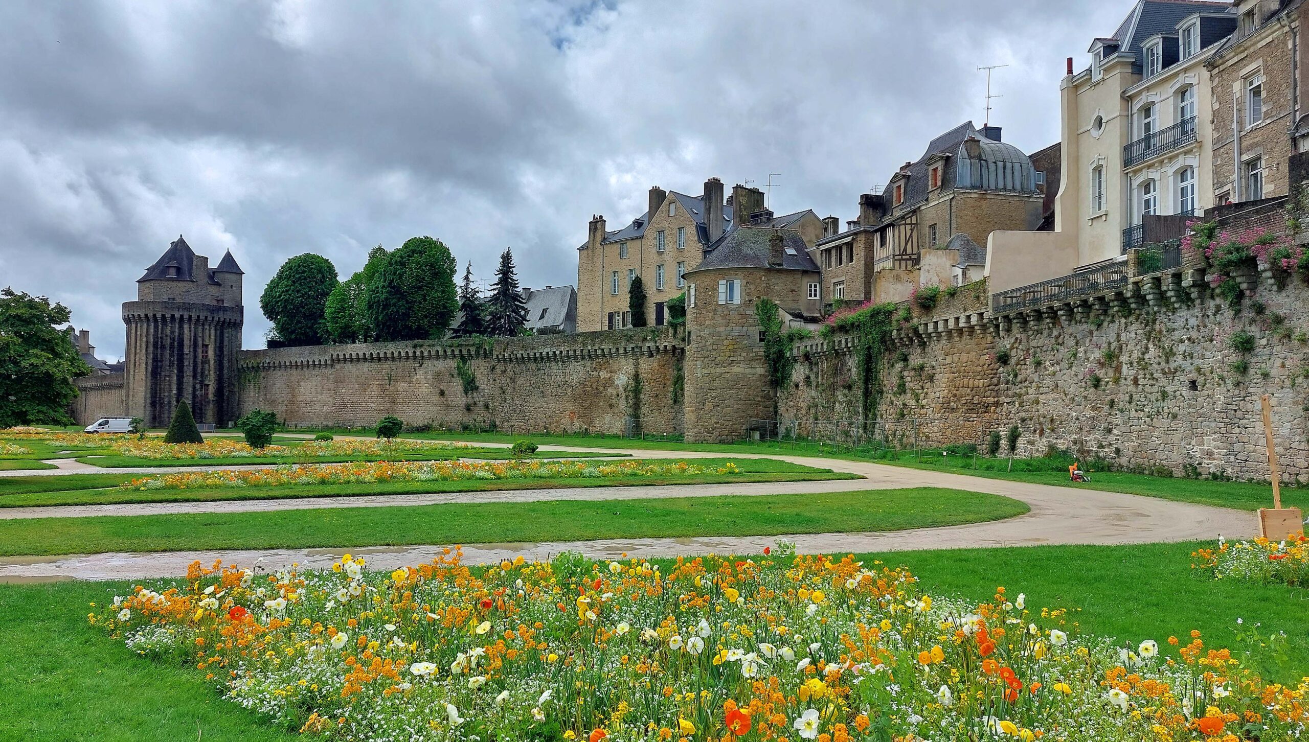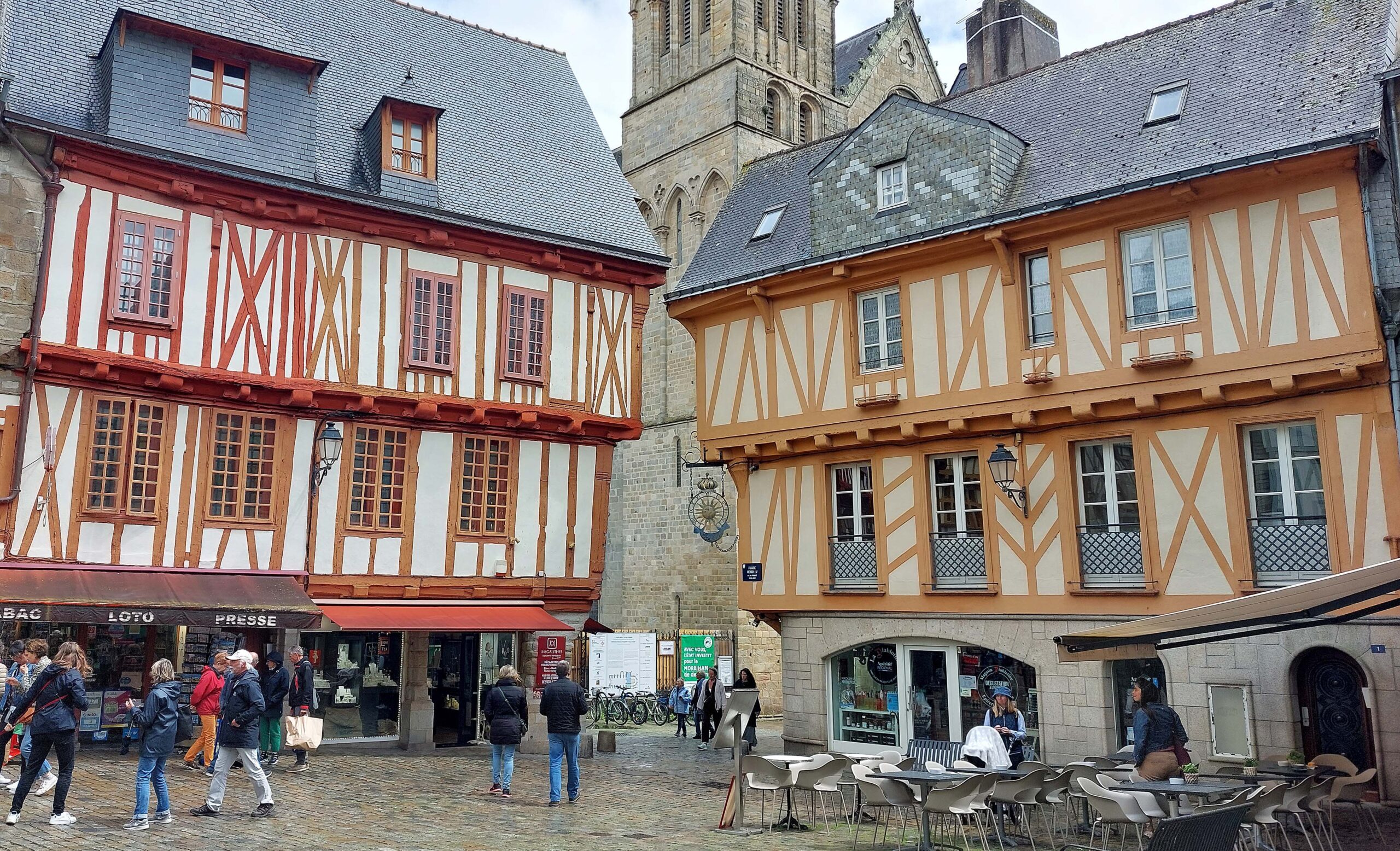 Ich schlendere am Yachthafen entlang Richtung Altstadt und Stadttor. Der Ort liegt am Ende des Golfs du Morbihan und die alte Stadt liegt hinter der historischen Stadtmauer. Ich flaniere duch die Altstadt 🚶♀️ mit ihrenfarbenfrohen Fachwerkhäusern 🏠🏚️🏡 und der großen Kathedrale Saint Pierre. ⛪ Manche der Häuser sind aus dem 17. Jahrhundert. Die Stadtmauern wurden schon im 13. Jahrhundert errichtet. Dazu gehören Türmen und Tore und ein französischer Garten.