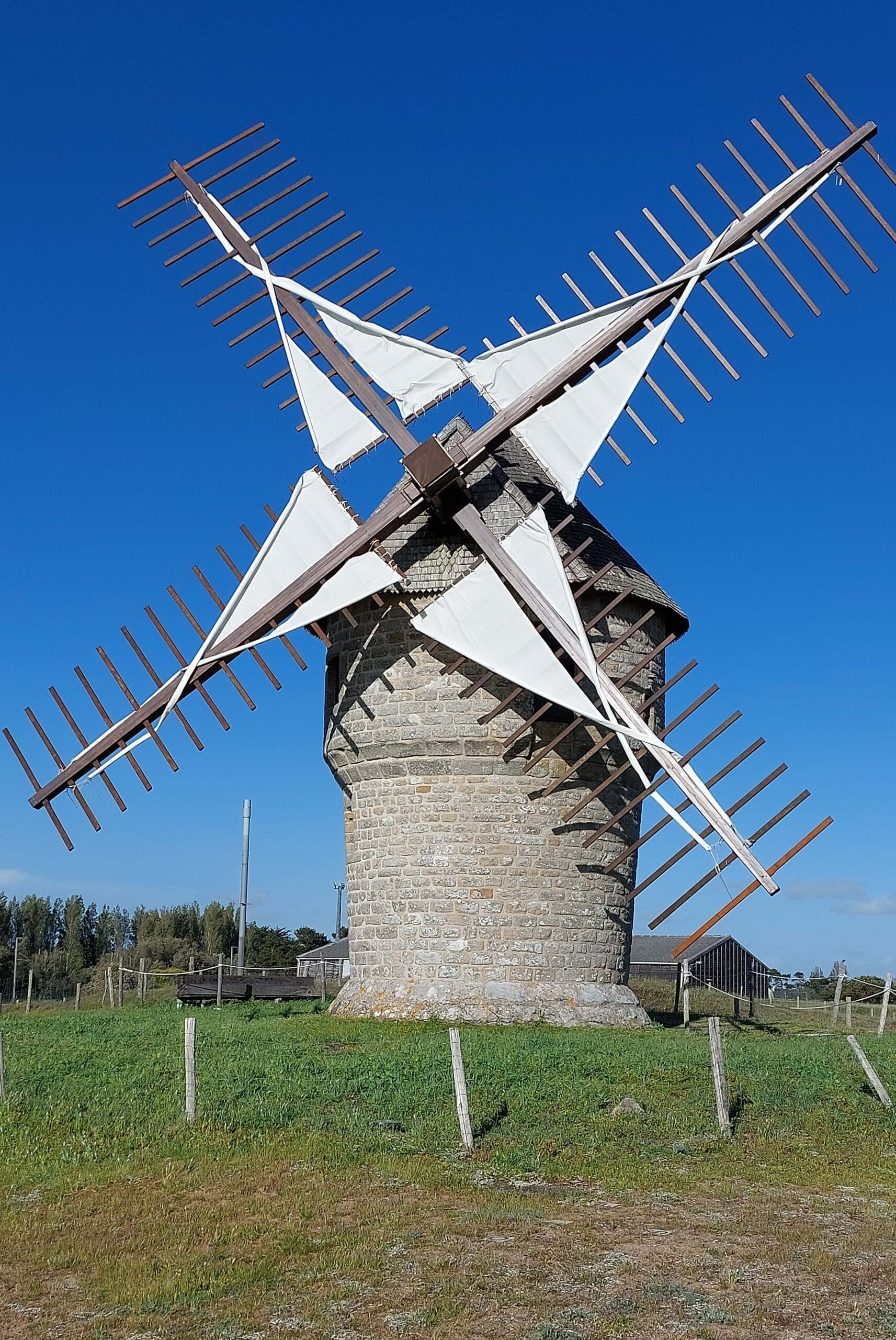Ich relaxe 💤einen Moment auf dem Platz. Schon bald zieht es mich zum Meer. 🐳🐬🪸🪼🦀Vor mir liegt eine unfassbar tolle Bucht, brausende Wellen, Sonne, glitzerndes Salzwasser und ein Traum von Sand- und Felsenküste. Wow!! Ich mache einen langen Spaziergang an der Plage de la Gouvelle und laufe durch den Ort zur Windmühle La Falaise. Die Mühle ist authentisch, nämlich so, wie sie schon im 16. Jahrhundert betrieben wurde. Natürlich wurde sie restauriert und produziert noch heute traditionelles Buchweizenmehl.