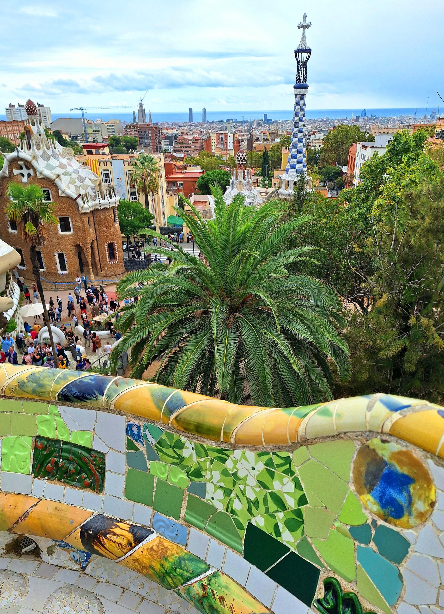 Der Park ist mit der weltberühmten, wellenförmigen und mit Bruchkeramik verzierten Bank eine der bekanntesten Sehenswürdigkeiten Barcelonas und wird als Gaudís Hommage an die Natur bezeichnet. 〰️〰️〰️Ursprünglich war eine Wohnsiedlung für Aristokraten geplant, sie scheiterte aber an den hohen Finanzierungskosten.