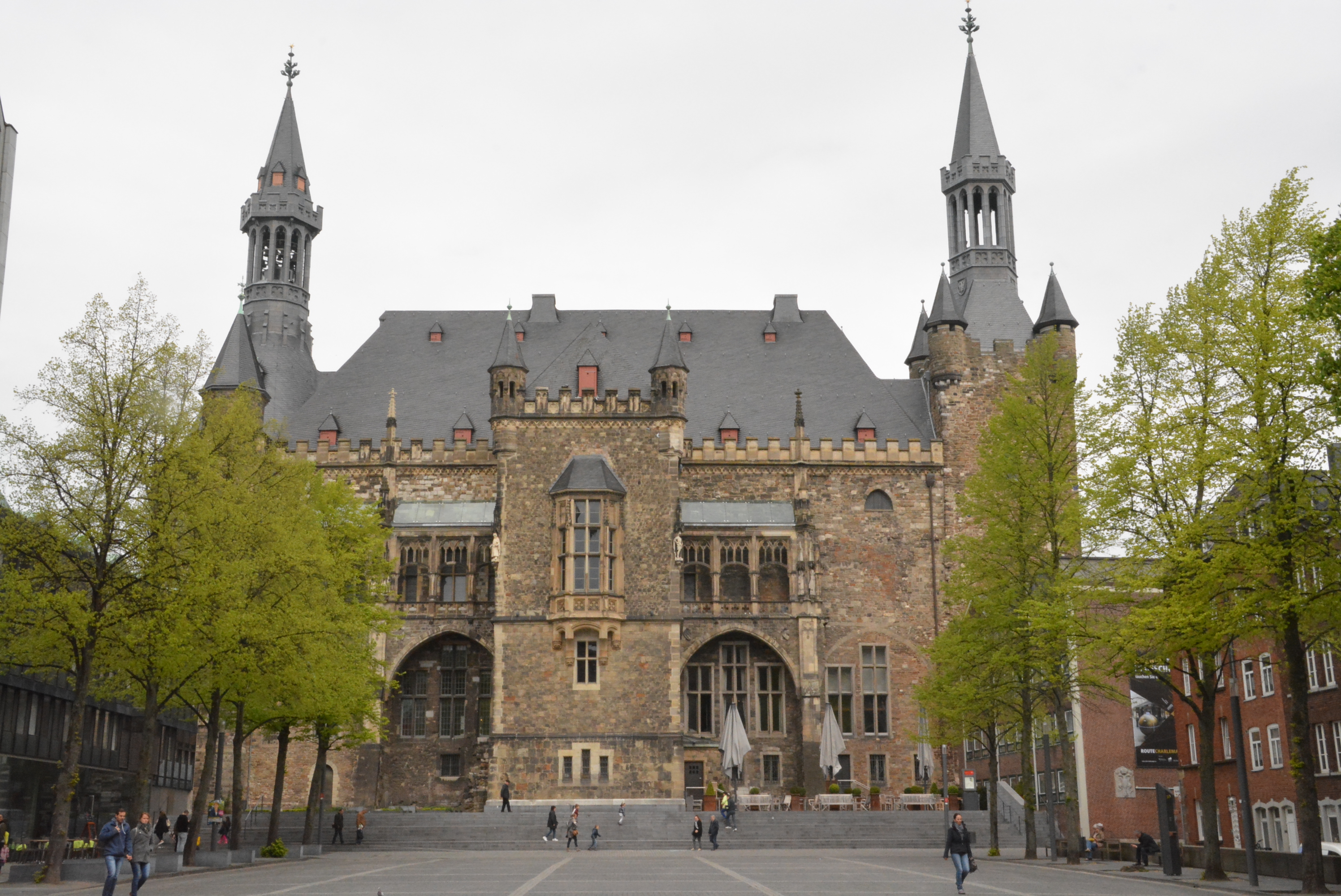 Zwischen 936 und 1531 fanden an diesem Ort die Festmähler der Aachener Königskrönungen statt. Im Krönungssaal, der um 1349 der größte profane Saal im Heiligen Römischen Reich war, befinden sich Nachbildungen der Reichskleinodien der mittelalterlichen Herrscher. Heute verleiht der Internationale Karlspreis dem Saal europäische Bedeutung. Alles in allem sehr beeindruckend.