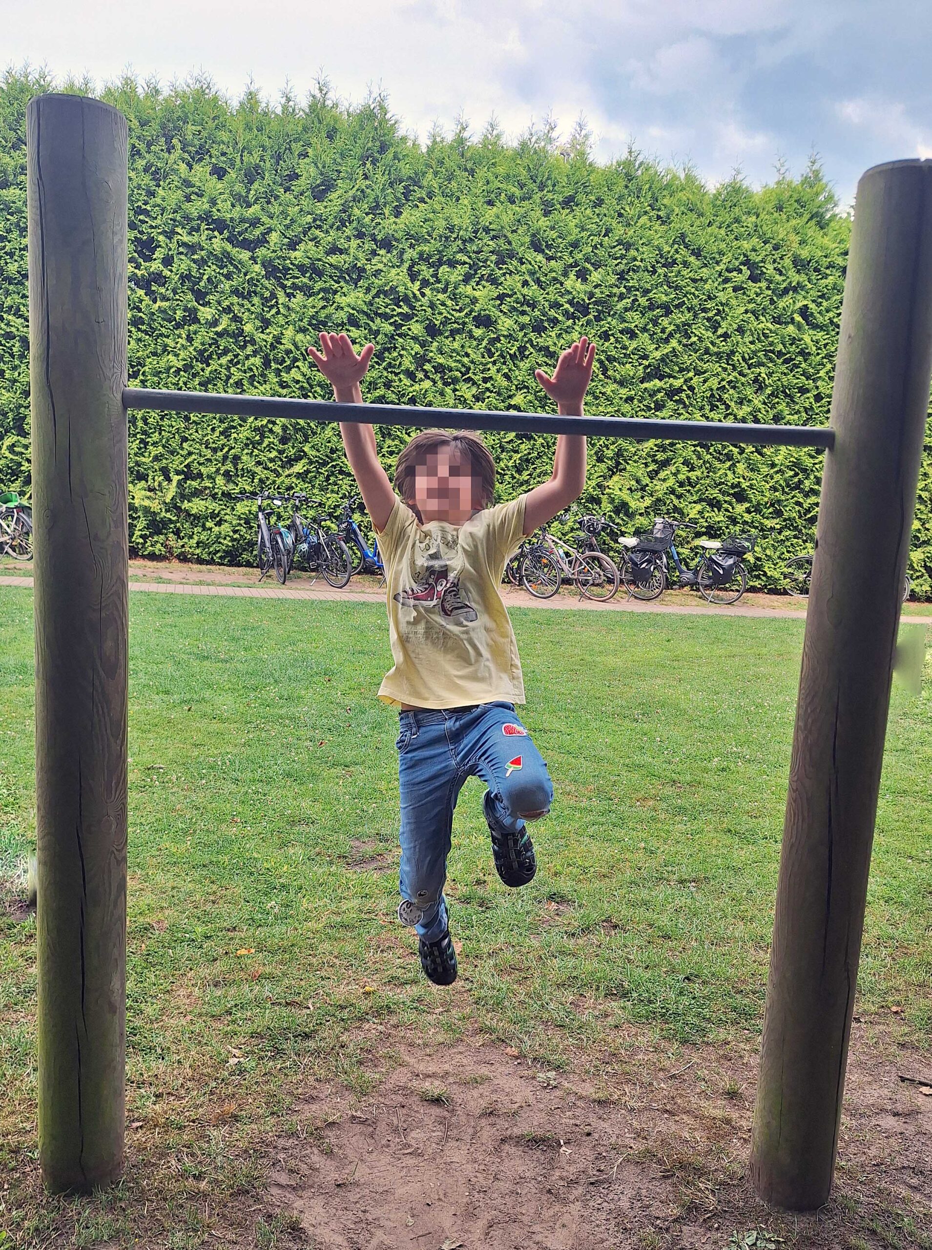 Nach dem Essen gehen wir auf den Spielplatz, die Kids turnen wieder und machen Kopfstand. Ich halte jeden einzelnen Schritt im Bild fest. Dann kommt unser eingespieltes „Same Procedere wie jeden Abend“. 👍Und ich mache noch eine Abendrunde am Yachthafen zum Abschalten. Ein letztes Mal Schlafen im Wohnmobil. 😞