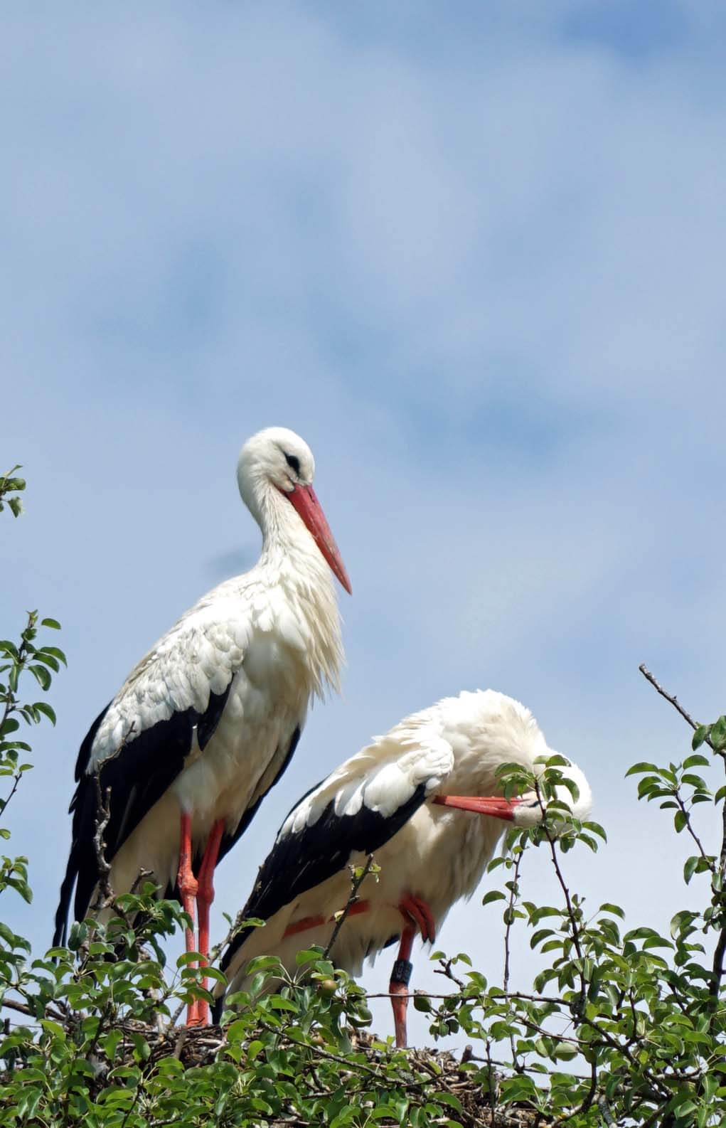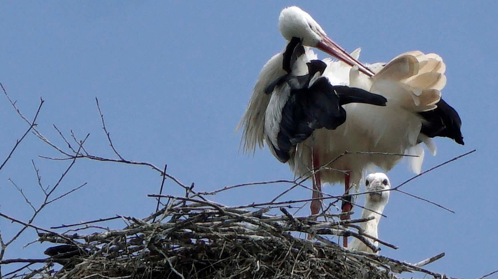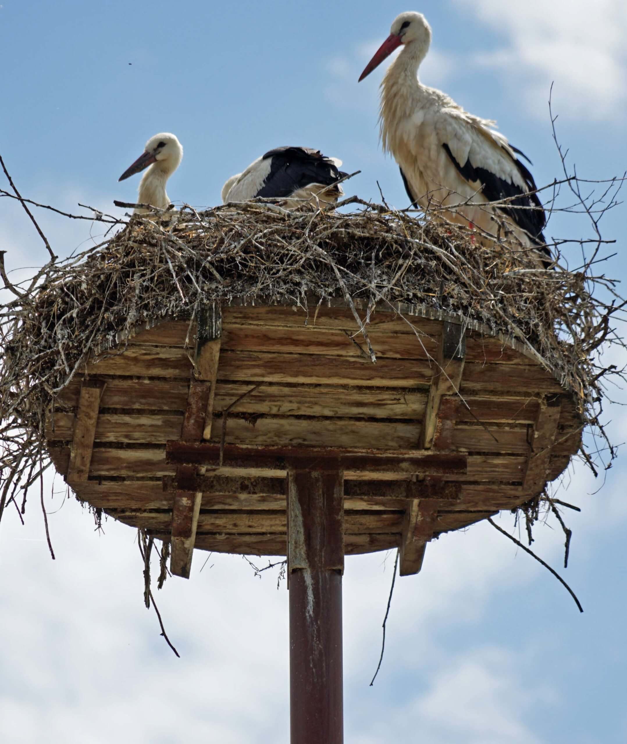 Es hat sich gelohnt! Wir werden von zig klappernden Storchenpaaren empfangen, die ihre Nester in die zahlreichen Bäume gebaut haben. Das ist erstmal eine längere Foto-Session wert.