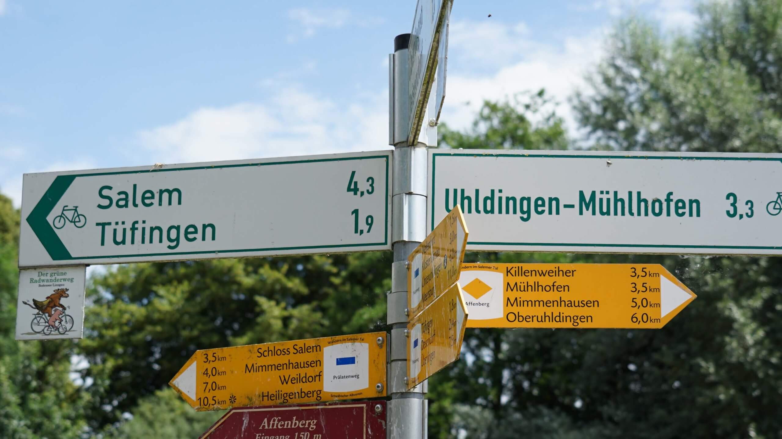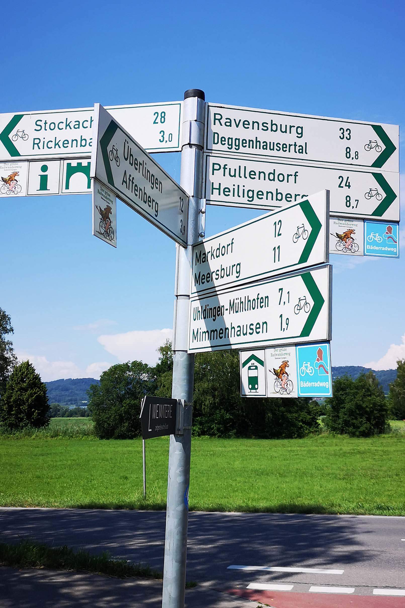 Den Weg bis Uhldingen/Mühlhofen kennen wir schon von unserer Shit-Wetter-Tour. Heute aber reißt der Himmel auf und es wird recht sonnig. In der Pfahlbautenstadt zweigt der Radweg zum Affenberg ab. Wir fahren völlig entspannt und fast alleine durch Felder und Wiesen bis wir auf dem letzten Teil der Strecke auf einen sehr langen Anstieg treffen. Und der hat es wirklich in sich. Naja, es heißt ja auch Affenberg und nicht Affental!!!