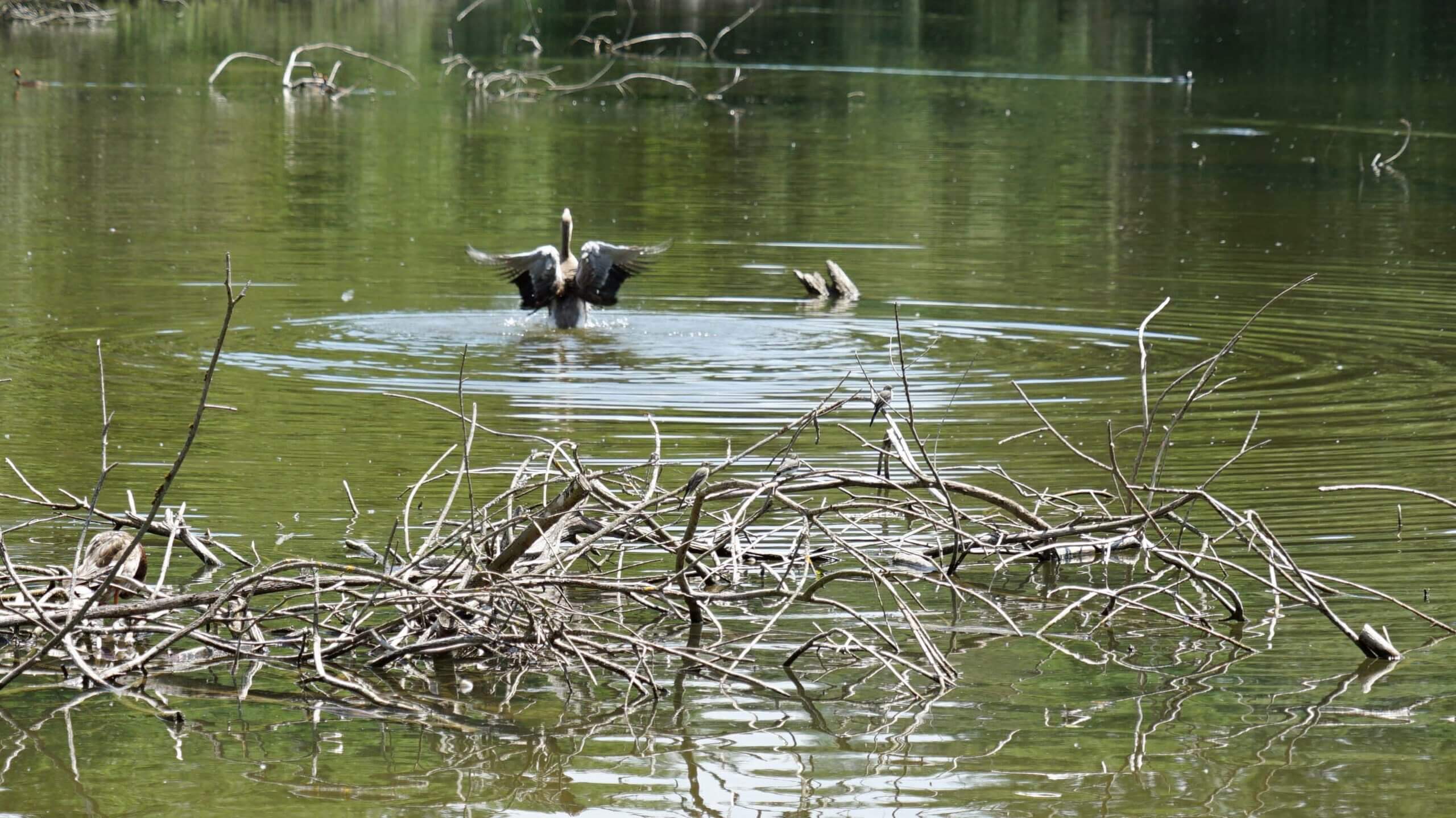 Gleich hinter dem Haupteingang liegt ein malerischer Weiher. Hier in idyllischer Lage gibt es u.a. frei fliegende Schwäne, Graugänse, Stockenten, Blässhühner, Haubentaucher und Fische. Trotz zahlreicher Besucher herrscht hier eine sehr entspannte, fast ruhige Stimmung, so dass wir die Natur sehr genießen können.