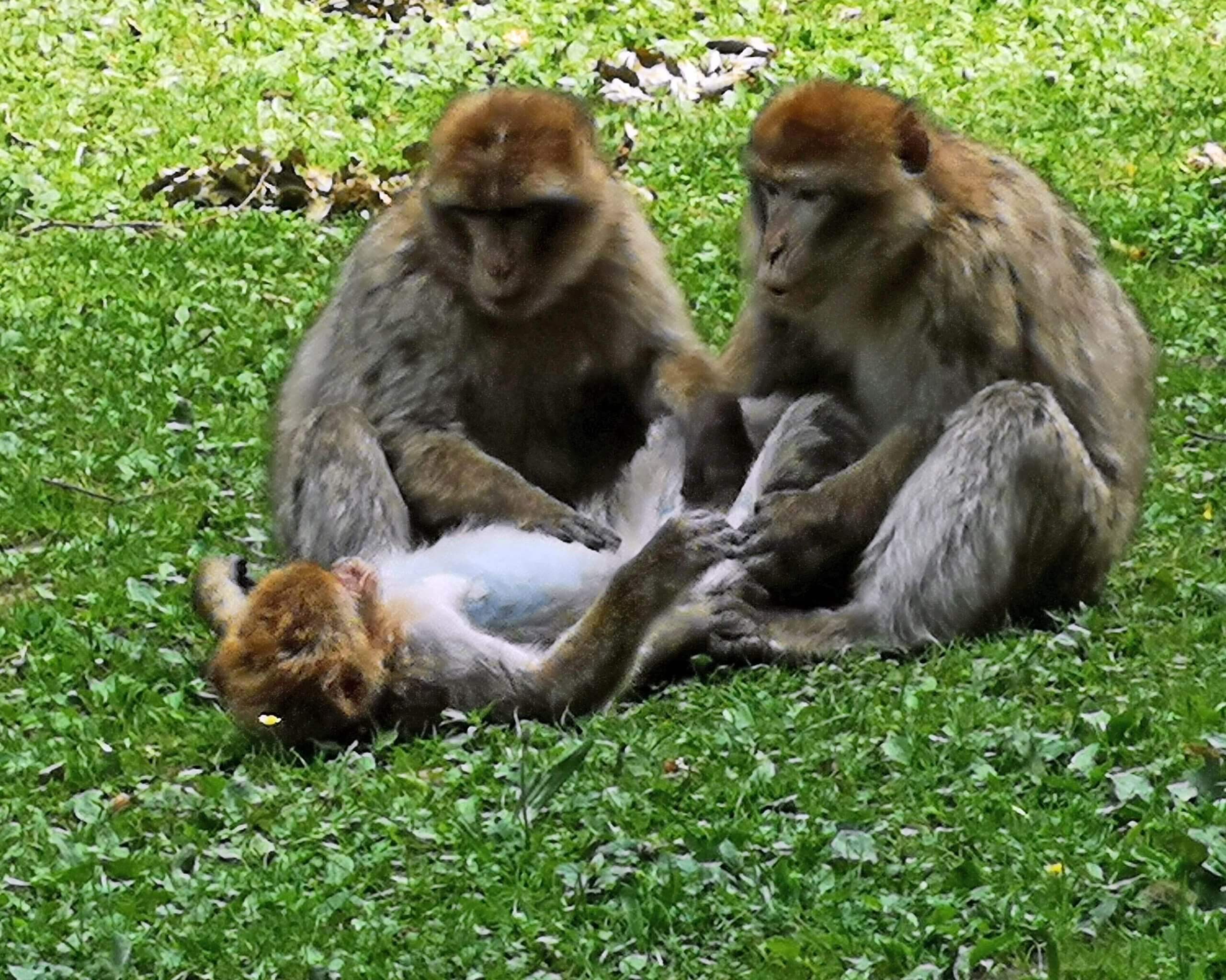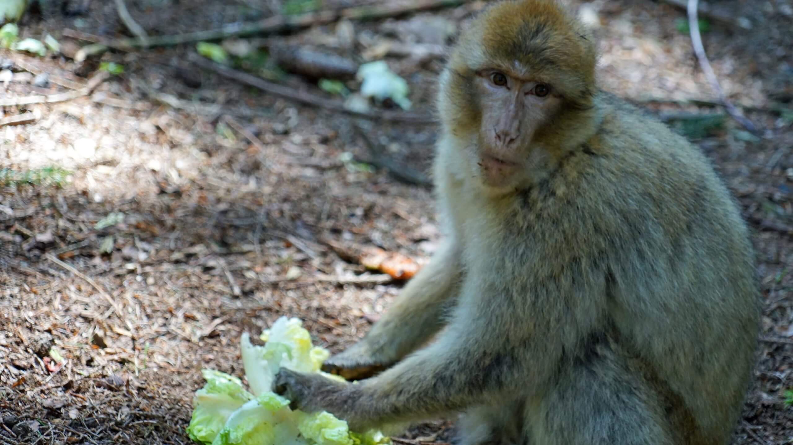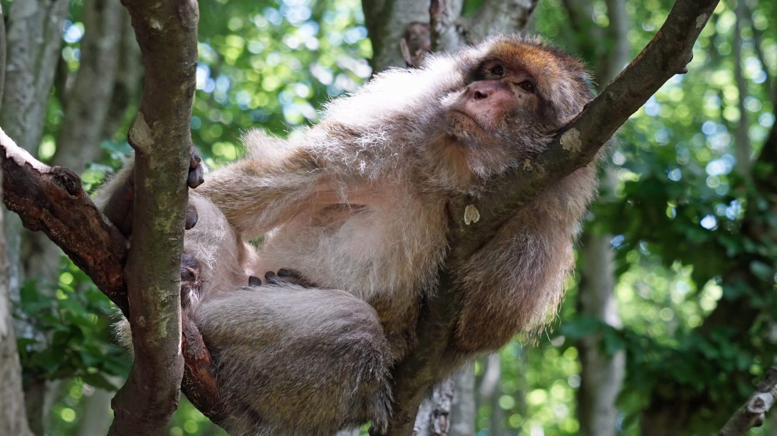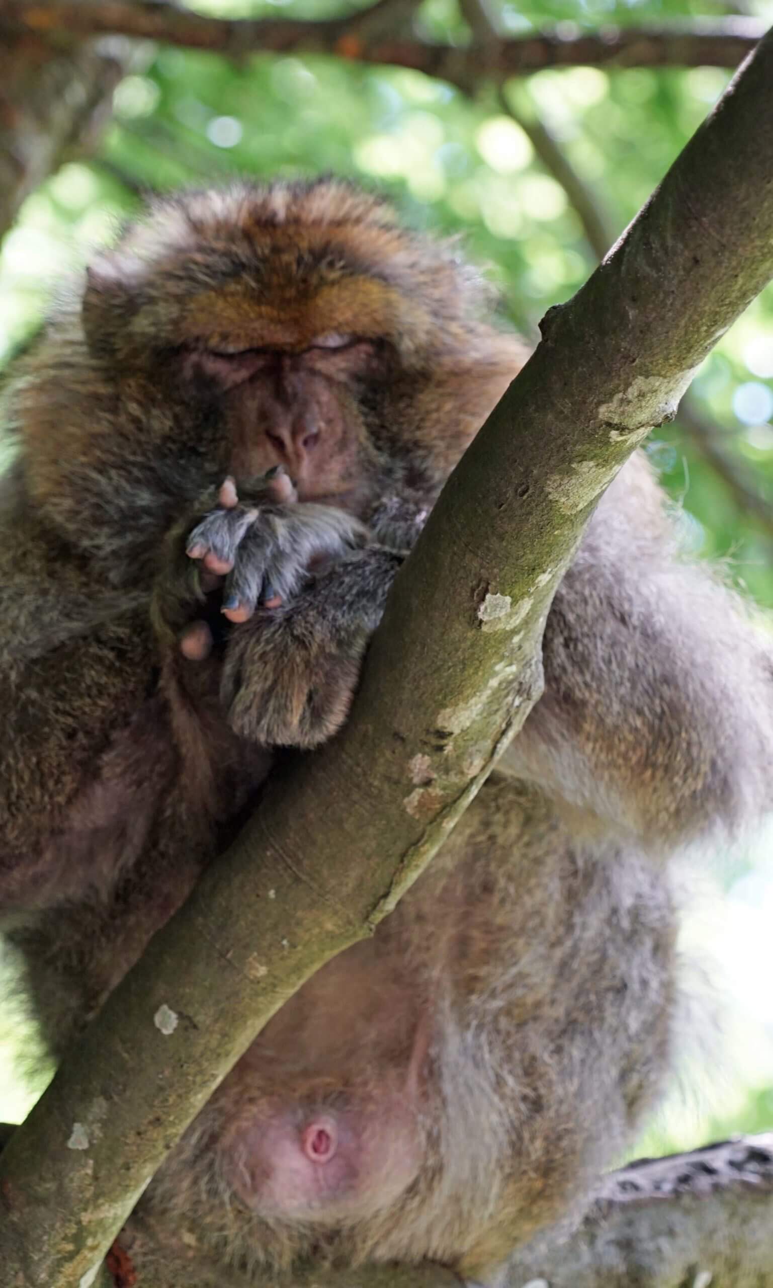 Ein paar hundert Meter weiter nähern wir uns dem Affenberg. Das ist ein Tierpark und zugleich Deutschlands größtes Affenfreigehege. Die Hauptattraktion des über 20 Hektar großen Waldstückes sind die rund 200 Berberaffen, die sich dort frei bewegen. Auf einem Rundweg können wir zahlreiche vom Aussterben bedrohte Berberaffen aus nächster Nähe und mit ihrem natürlichen Verhalten beobachten. Oft müssen wir sehr genau hinschauen, um die Tiere in den Bäumen zu entdecken. Weltweit wird der Bestand auf weniger als 8000 Individuen geschätzt!