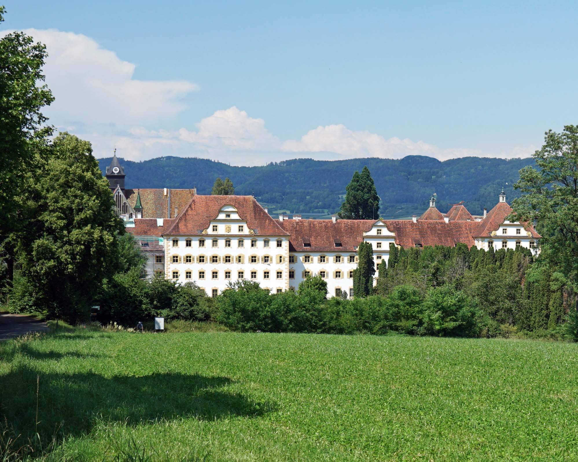 Um das Schloss der Schlösser am Bodensee zu erreichen, müssen wir zahlreiche Steigungen durch die herrliche Landschaft bewältigen. Und endlich: Inmitten großzügiger Park- und Gartenanlagen liegt das ehemalige Zisterzienserkloster und heutige Schloss Salem vor uns. Kloster und Schloss Salem zählen zu den schönsten und bedeutendsten Kulturdenkmälern der Bodenseeregion. 1134 als Zisterzienserkloster gegründet, vermittelt die weitläufige Anlage ein anschauliches Bild vom Reichtum der früheren Abtei. Heute ein renommiertes Internat und nur von weitem zu sehen, weil im Privatbesitz.