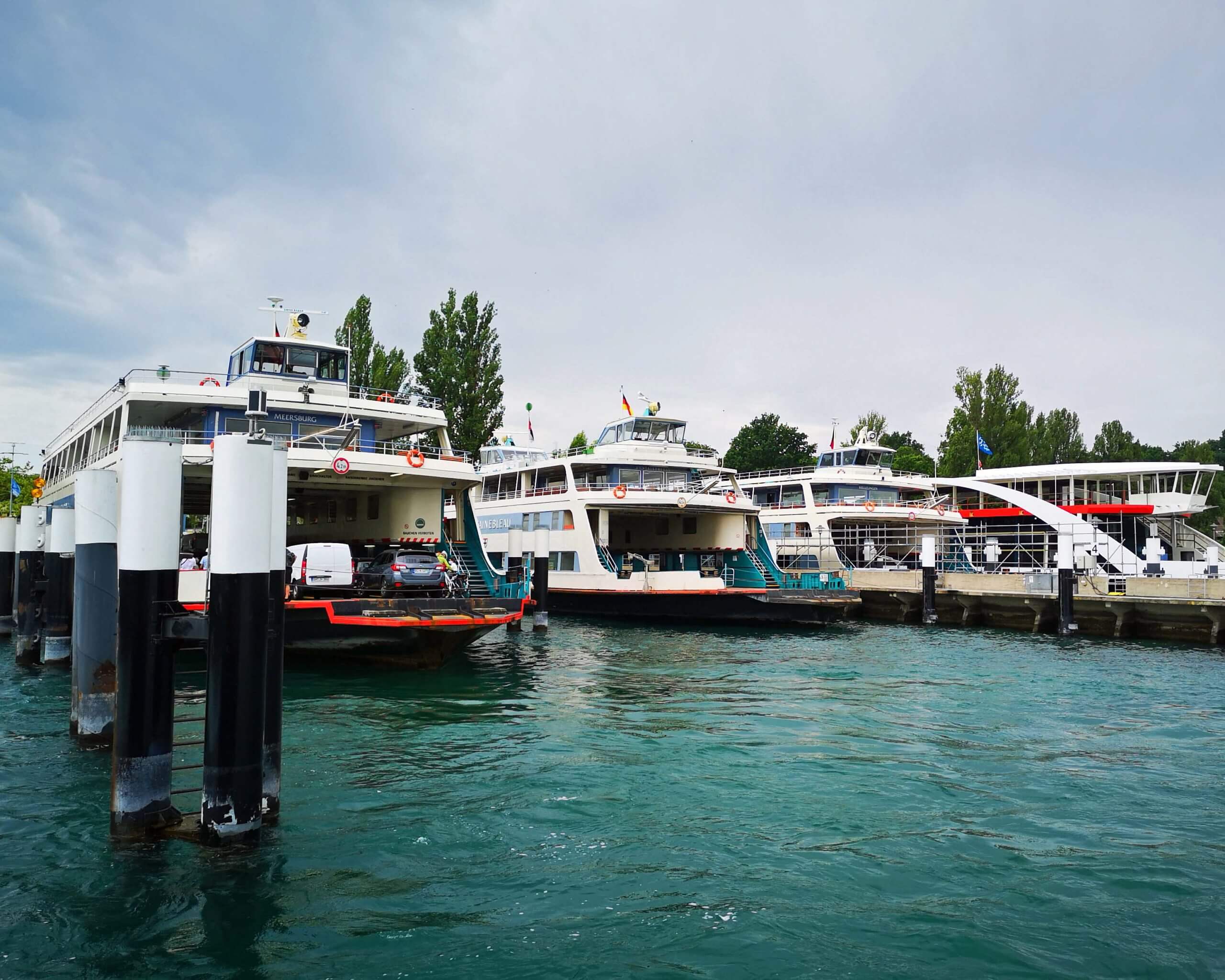 Hmmm, das Wetter sieht nicht berauschend aus. Der Himmel ist grau und gerade als wir starten wollen, beginnt es leicht zu regnen. Das kann uns jedoch nicht aufhalten. Wir schnappen die Räder und nehmen die Autofähre von Konstanz-Staad nach Meersburg. Punkt 11 Uhr geht’s los, wir löhnen 10,30 Ocken (Hin- und Zurück) und sind in 15 Minuten in Meersburg.
