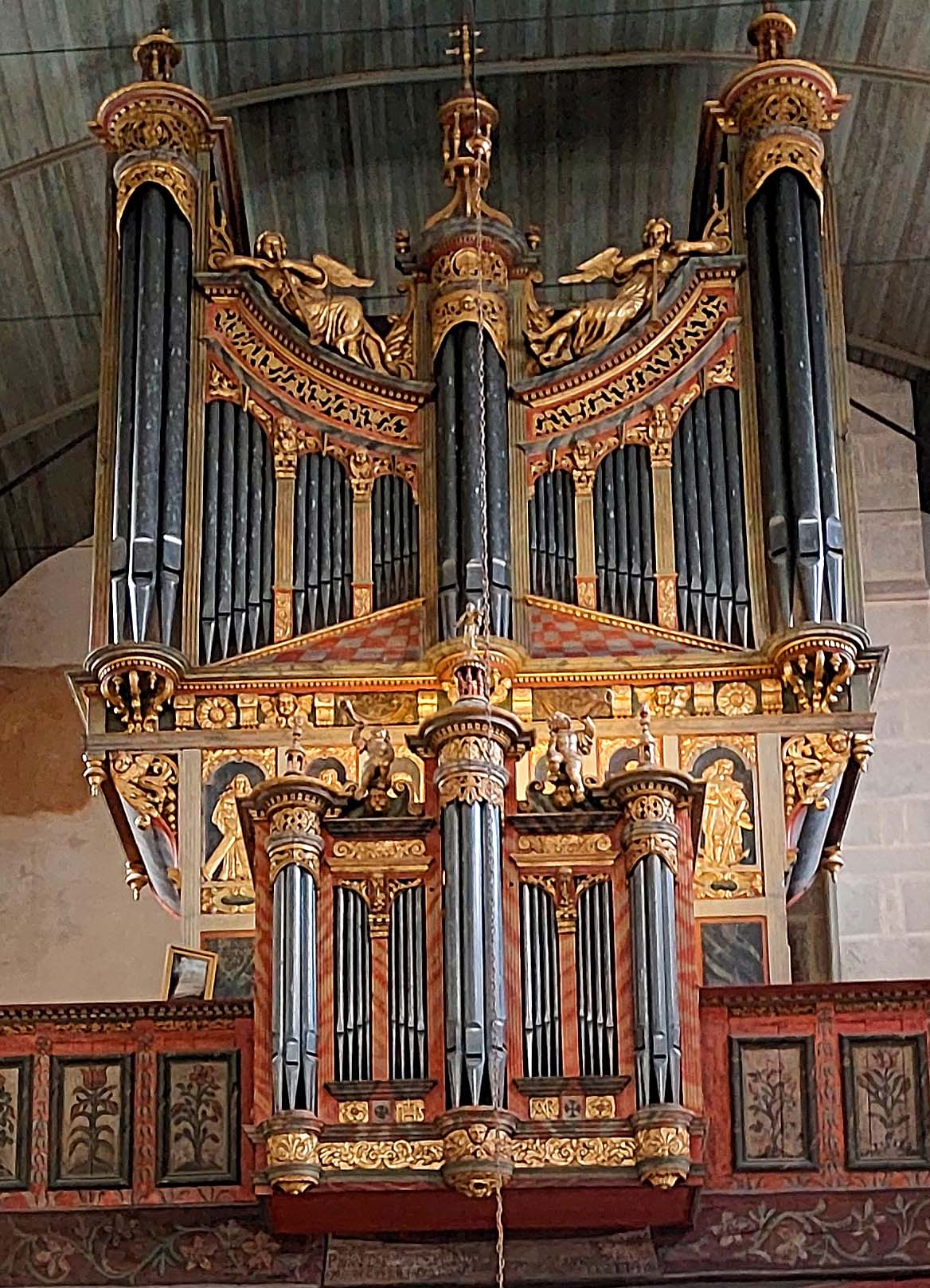 Die Prunkstücke von Saint-Thégonnec und Guimiliau lieferten sich damals mit ihren Pfarrhöfen (einem Triumphtor, einem Beinhaus, einer Kirche, einem Friedhof und eben dem Kalvarienberg) ⛪💒 einen erbitterten Konkurrenzkampf. Reich geworden durch den Tuchhandel rivalisierten insbesondere diese beiden Umfriedungen miteinander: Jeder wollte der Beste, Schönste und der Spitzenreiter sein. Das kommt uns Kulturinteressierten 😮heute zu Gute.