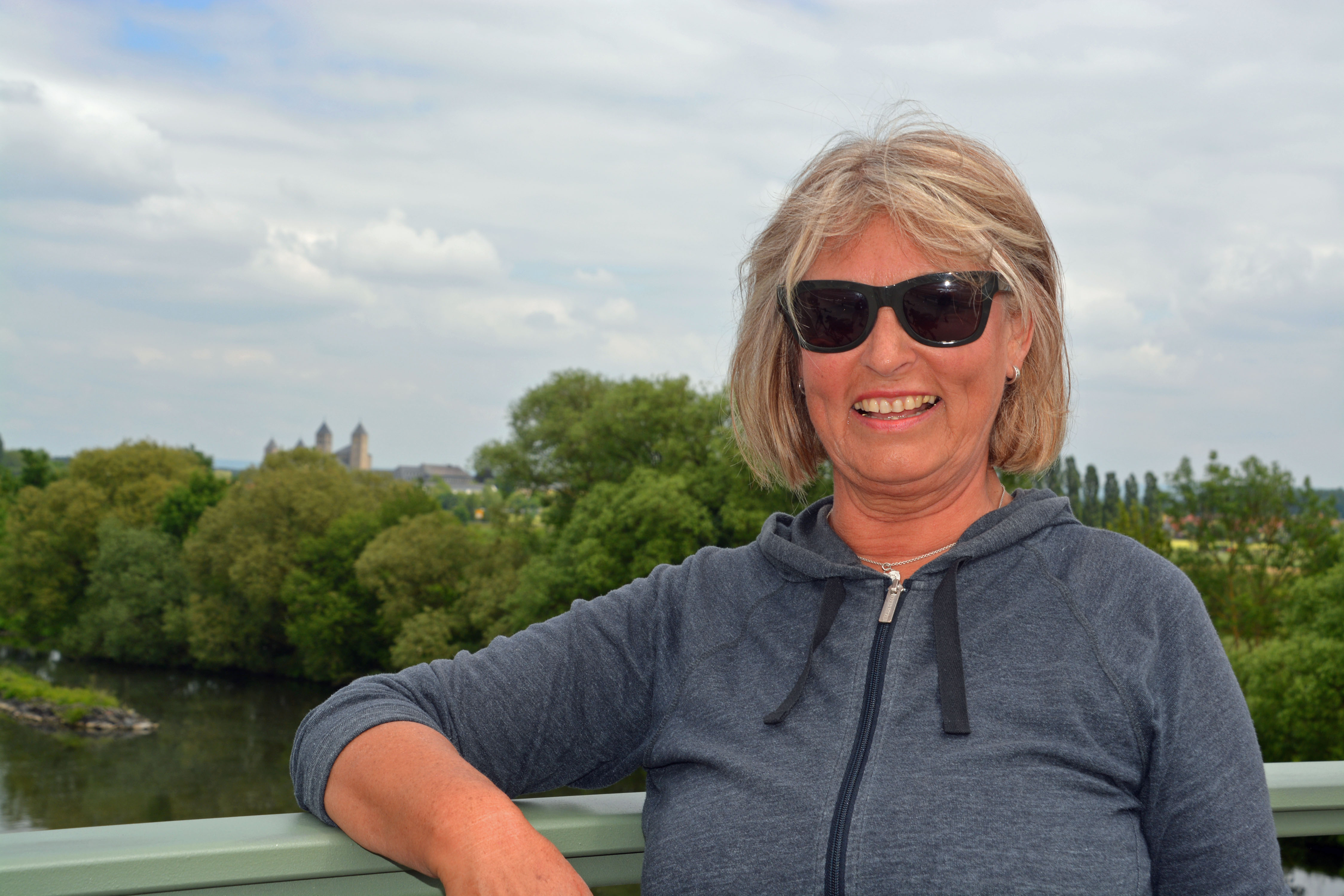 Wir treffen uns – na wo wohl – am Marktbrunnen. 12 Räder mit 12 Fahrerinnen und Fahrern treten zunächst etwas schwerfällig in die Pedalen. Der Einstieg in den Mainradweg ist nicht einfach zu finden, aber mit Radkarte, 24 Augen und gutem Verstand sind wir auf dem richtigen Weg.