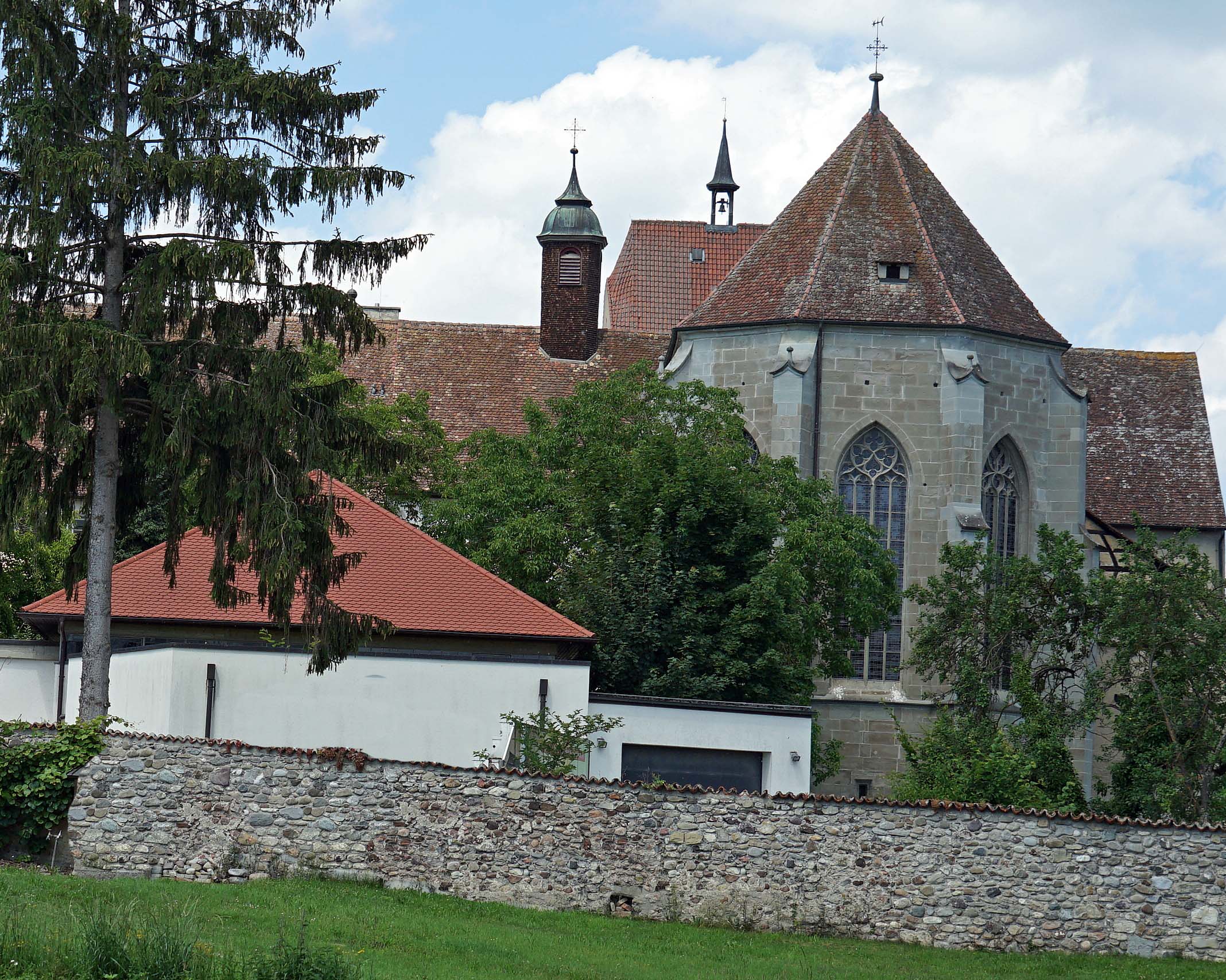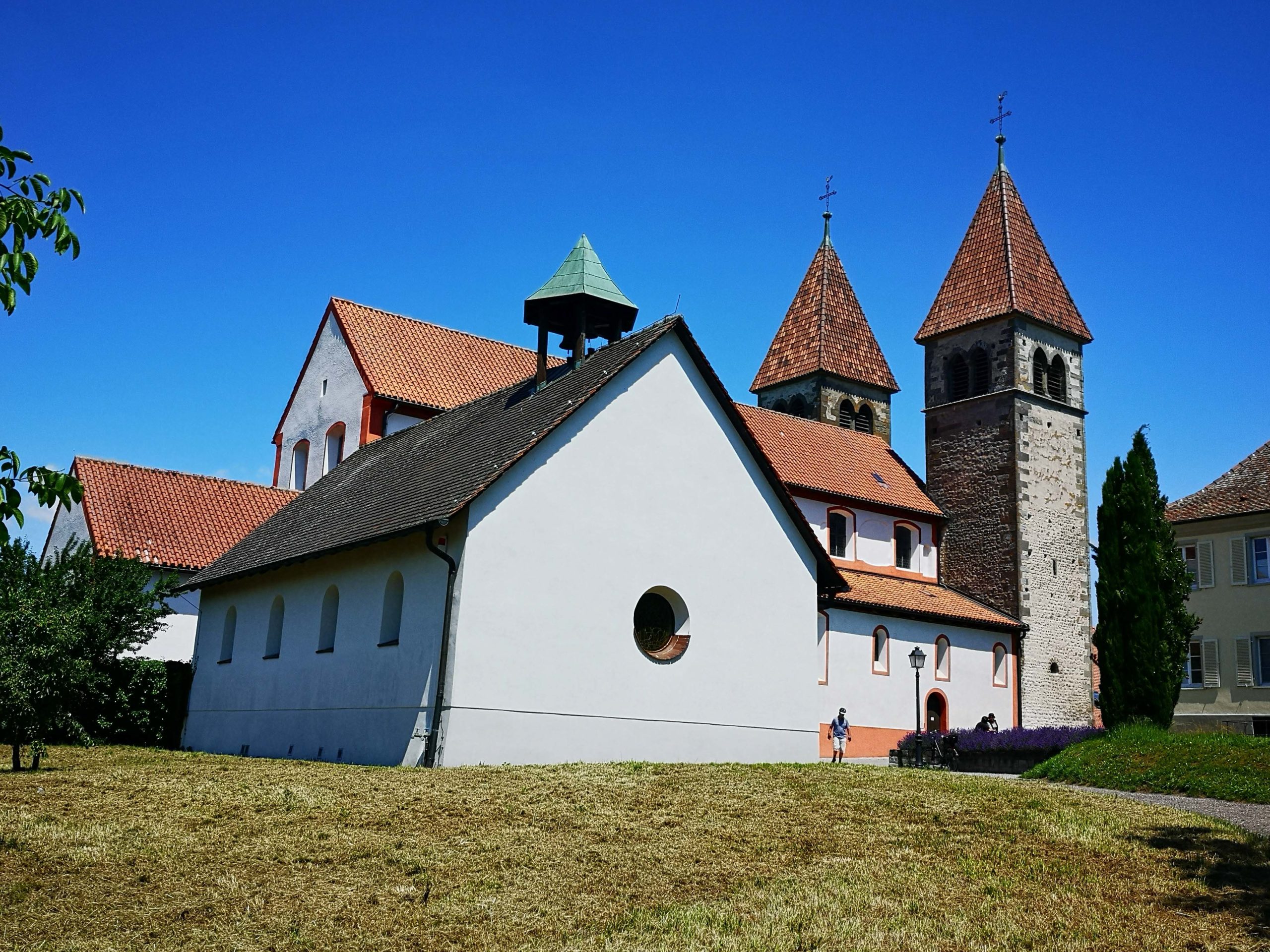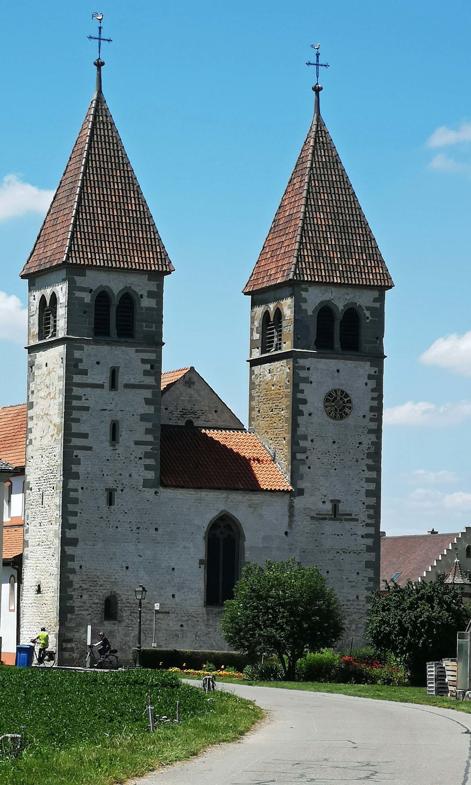 Auf der Weiterfahrt kommen wir an der zweiten der drei Welterbe-Kirchen vorbei, dem Münster St. Maria und Markus. Wir fahren durch Gemüse- und Blumengärtnereien, an Kräuterfeldern und sogar Rebhängen vorbei und entdecken noch Schloss Königsegg. Die Felder wirken auf mich wie Flickenteppiche. Ich empfinde die komplette Insel als sehr natürlich, authentisch und genieße die Ruhe und Beschaulichkeit.