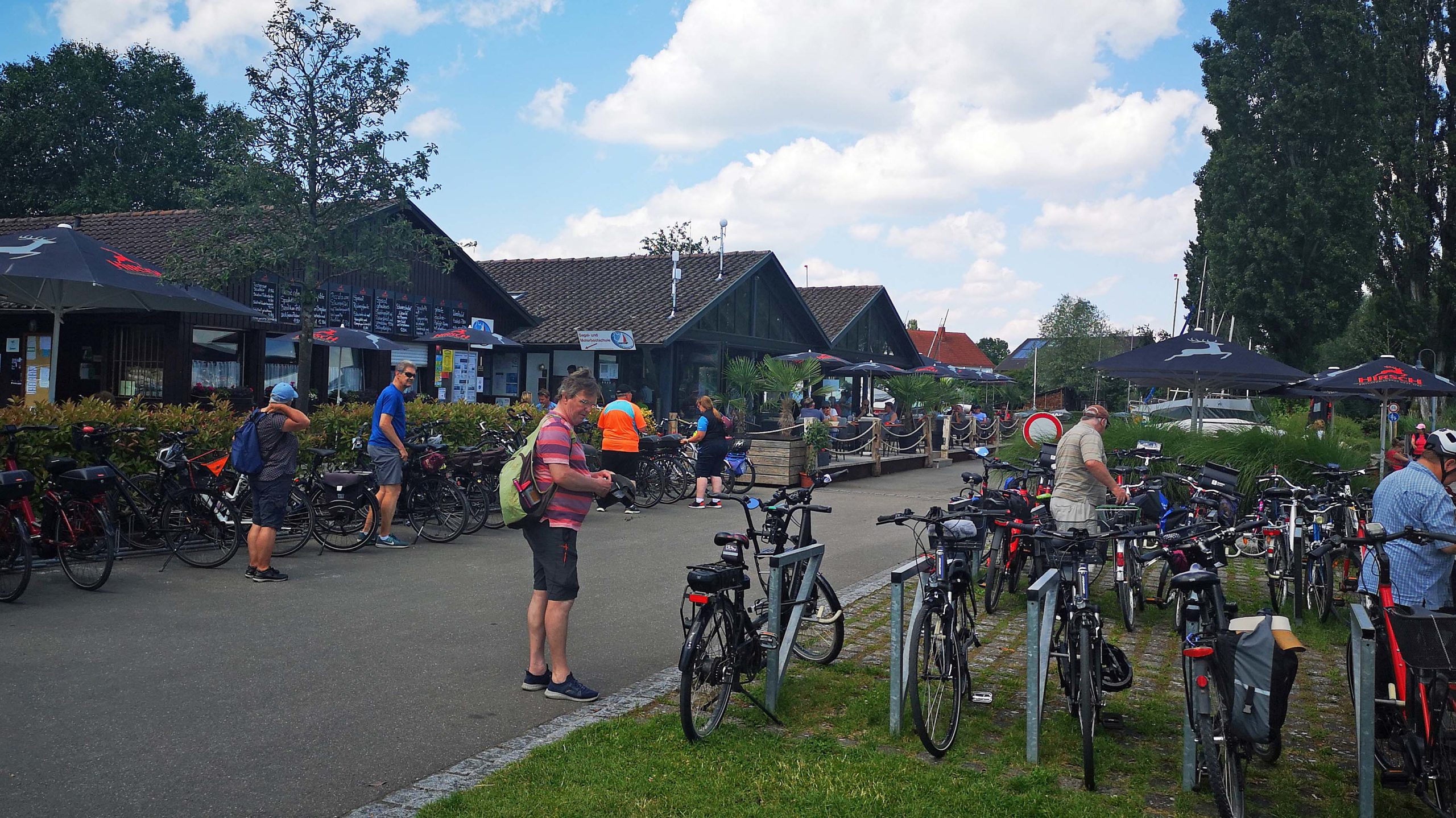 In Mittelzell am Yachthafen machen wir ein Trink- und Picknick-Päuschen. Klaus entdeckt brütende Blesshühner im seichtem Wasser unweit des Ufers. Das war für unsere Naturliebhaber das Highlight des Tages.