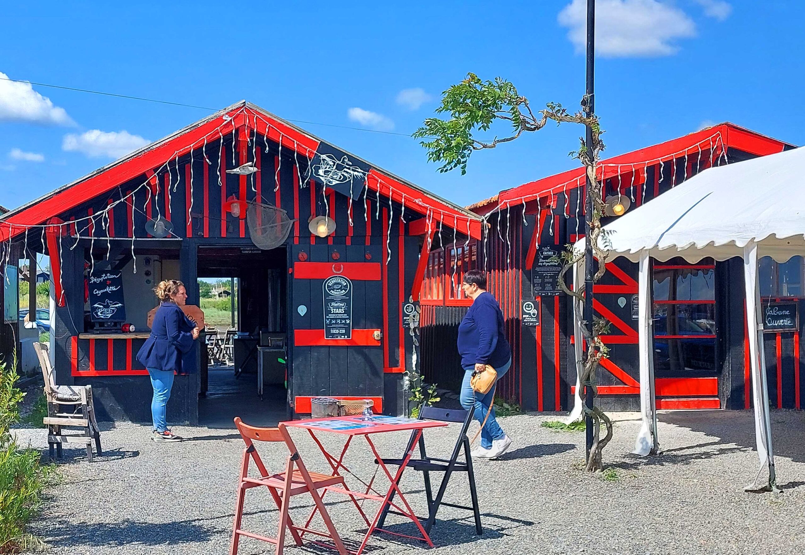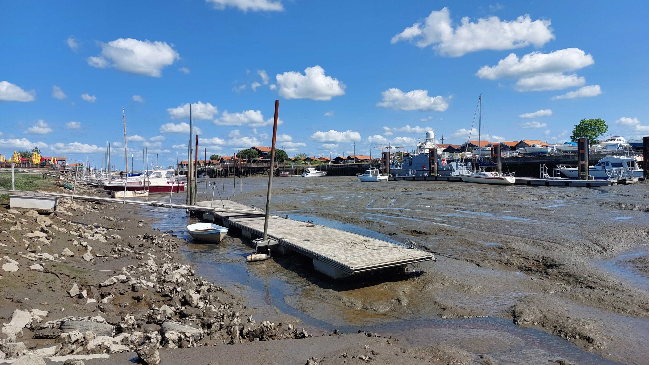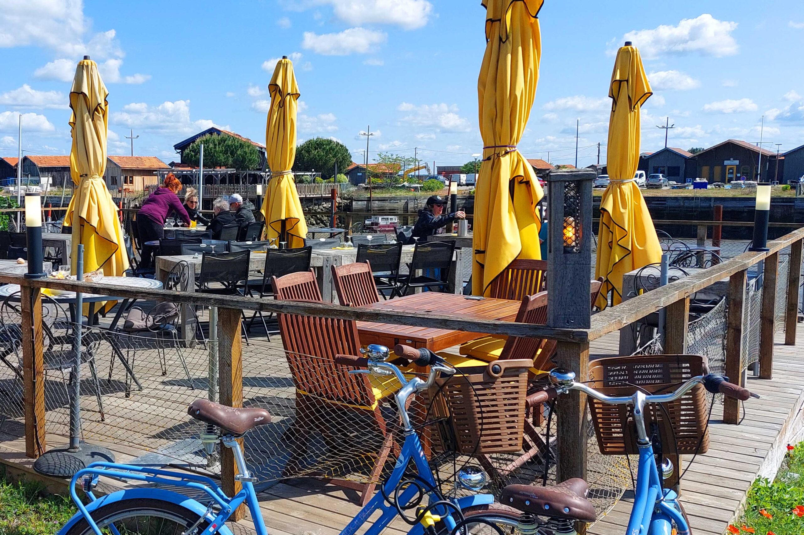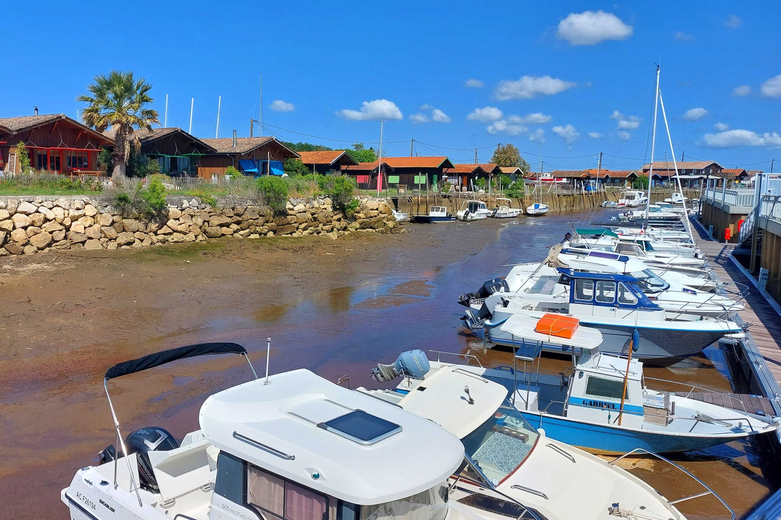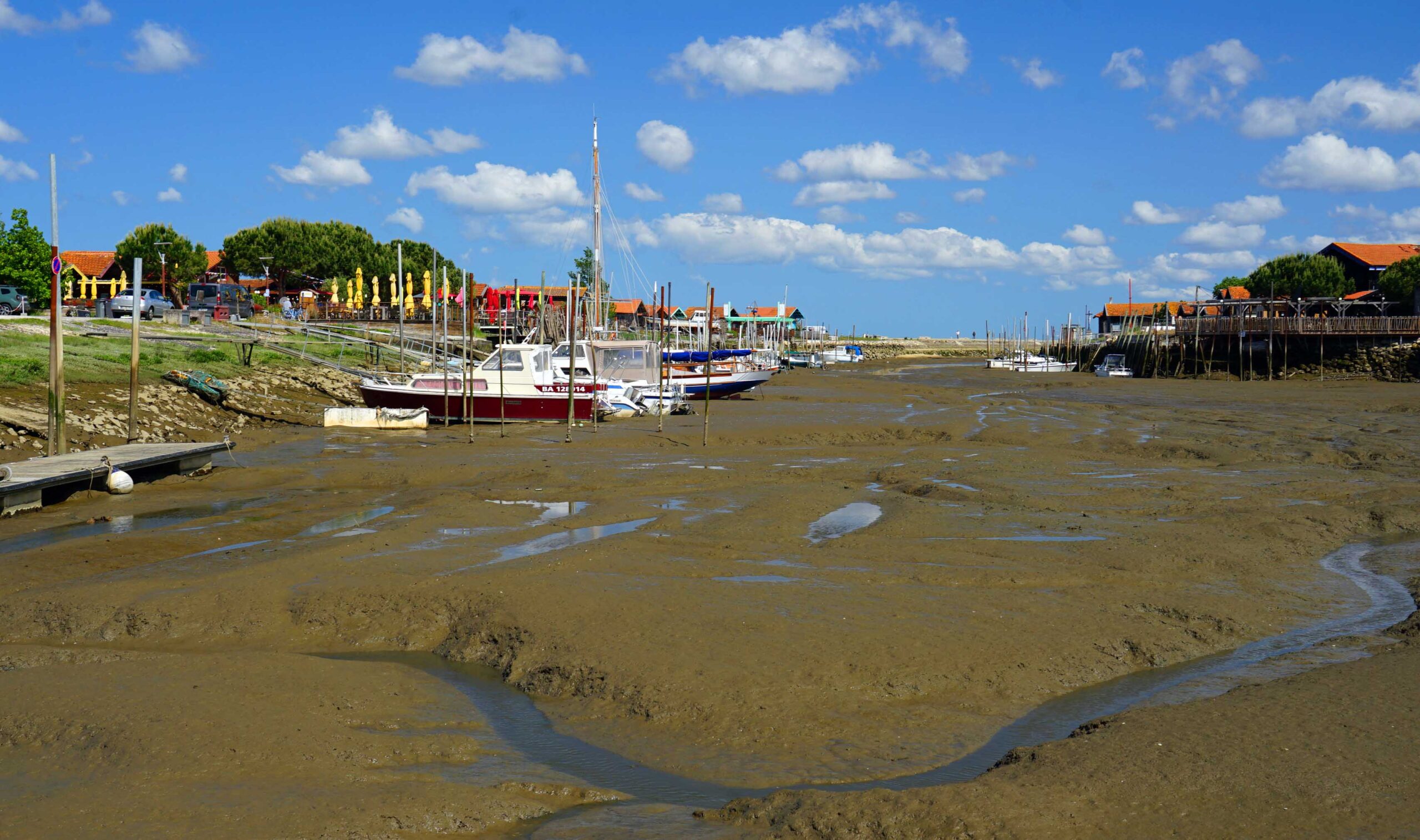 Hier zunächst einige Infos zum „Bassin d’Arcachon“. Es ist 155 km² groß und von Pinienwäldern, Salzwiesen, Heideland, Dünen und zahlreichen Fischerdörfern umgeben. Es wird durch die Halbinsel Cap Ferret vom Atlantik abgetrennt. Das Bassin ist nationales Naturschutzgebiet, das zahlreichen Vogelarten 🐦🦩🦤🦜 als Nist- und Brutplatz dient. Es füllt sich 2x täglich mit frischem Meerwasser. Rund um das kleine Binnenmeer arbeiten 375 Austernzüchter, die jährlich zwischen 8 und 10.000 Tonnen Austern 🦪🦪🦪 ernten. Das ist der Grund, weshalb sich der Hafen Larros in Gujan-Mestras zum Pilgerziel-und Hotspot für Gourmets gemausert hat. Gujan-Mestras ist die Stadt der sieben Häfen und lebt im Rhythmus der Gezeiten.
