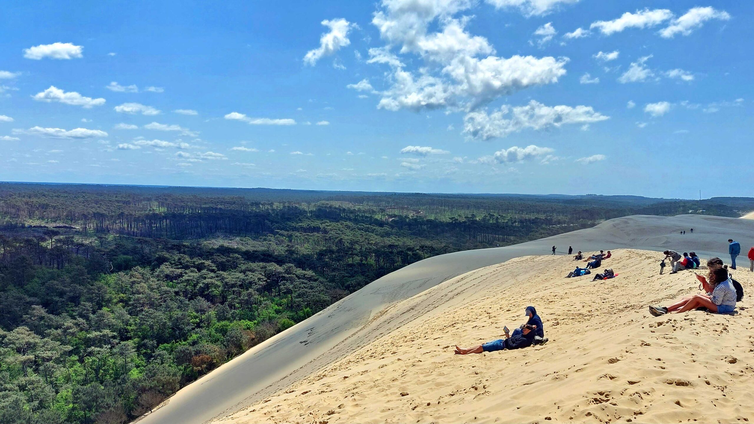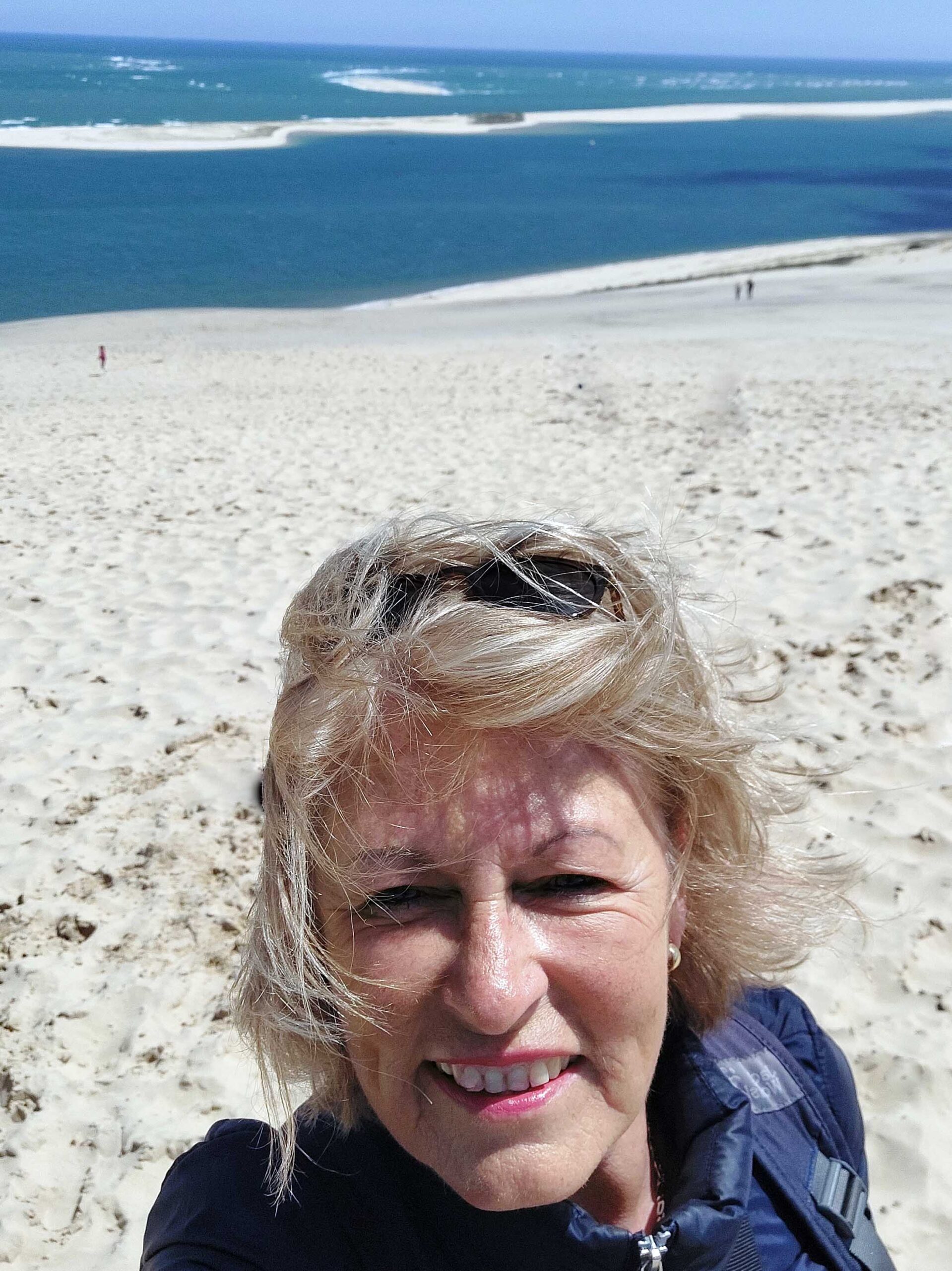 Die höchste Wanderdüne Europas ist schwer zu übersehen. Sie ist 2,7 km lang, über 500 Meter breit, 100 m hoch und besteht aus 60 m³ feinstem Sand. Eine Million Touristen stapfen jährlich durch den Sand des Naturschutzgebietes, genießen das Panorama, den Blick auf das Cap Ferret, das Meer und die weiten Kiefernwälder. Der Sandberg bewegt sich jedes Jahr zwischen einem und fünf Metern nach Osten ➡️, also frisst sich in den Kiefernwald. 🌲🌲🌲Leider ist dieses Jahr alles etwas anders: Die schweren Brände im Sommer 2022, zerstörten 7000 ha Kiefernwald und fünf große Campingplätze. 30.000 Menschen wurden evakuiert und das Gebiet gesperrt.