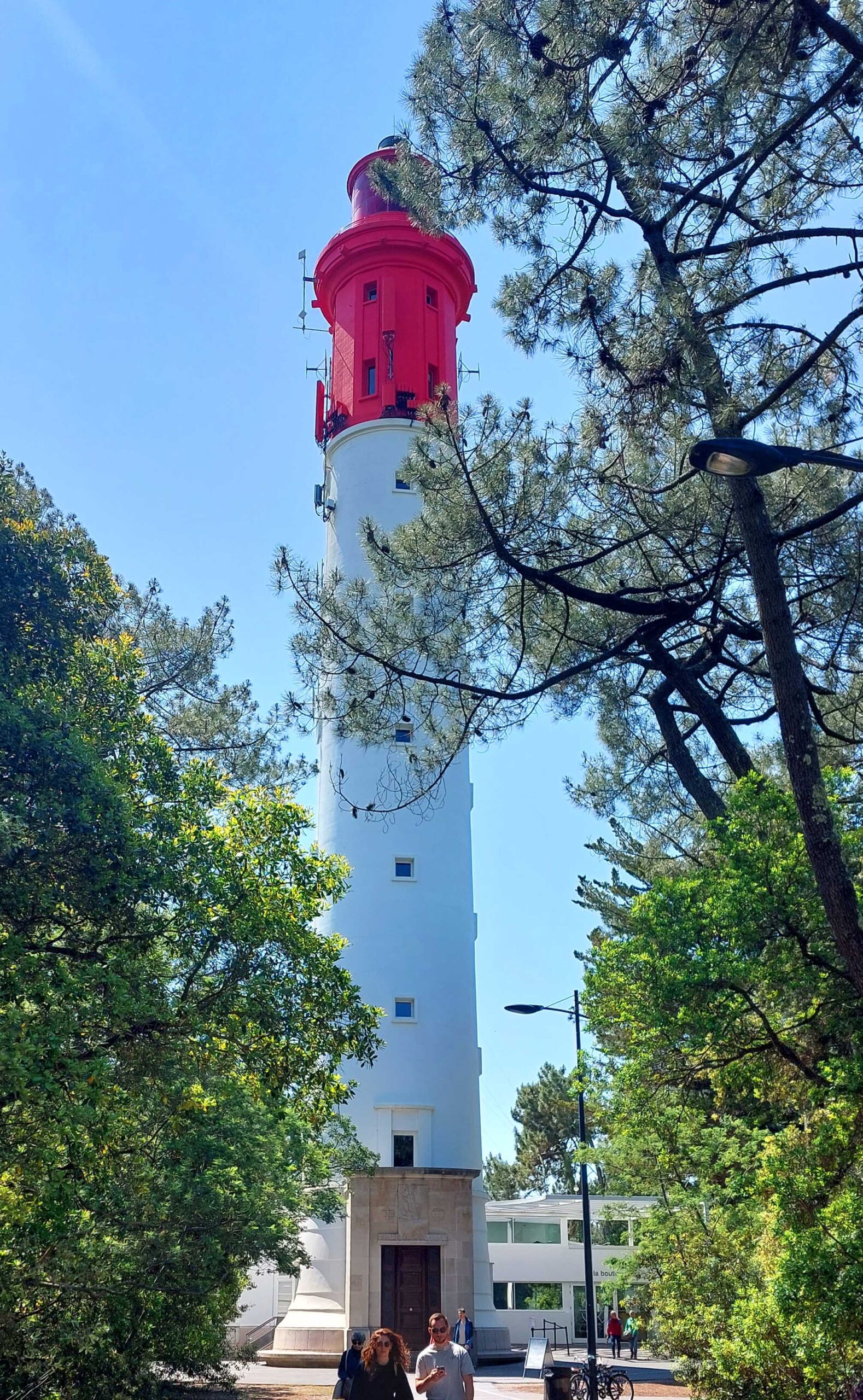 Das wiederum hat zur Folge, dass mein erstes Ziel, den Phare du Cap Ferret zu besteigen, voll in die Hosen 👖👖geht. Es ist zwei Stunden Mittagspause. 🙈 Ich verschiebe es also auf später. Das Highlight am Cap Ferret bietet in 53 Meter Höhe und nach 258 Stufen Aufstieg für 7 € gigantische Blicke 👁️👁️👁️über die Bucht, die Austernparks, die Dune du Pilat, den Atlantik und die Halbinsel. Also fahre ich weiter zur Pointe du Cap Ferret-Belvédère.