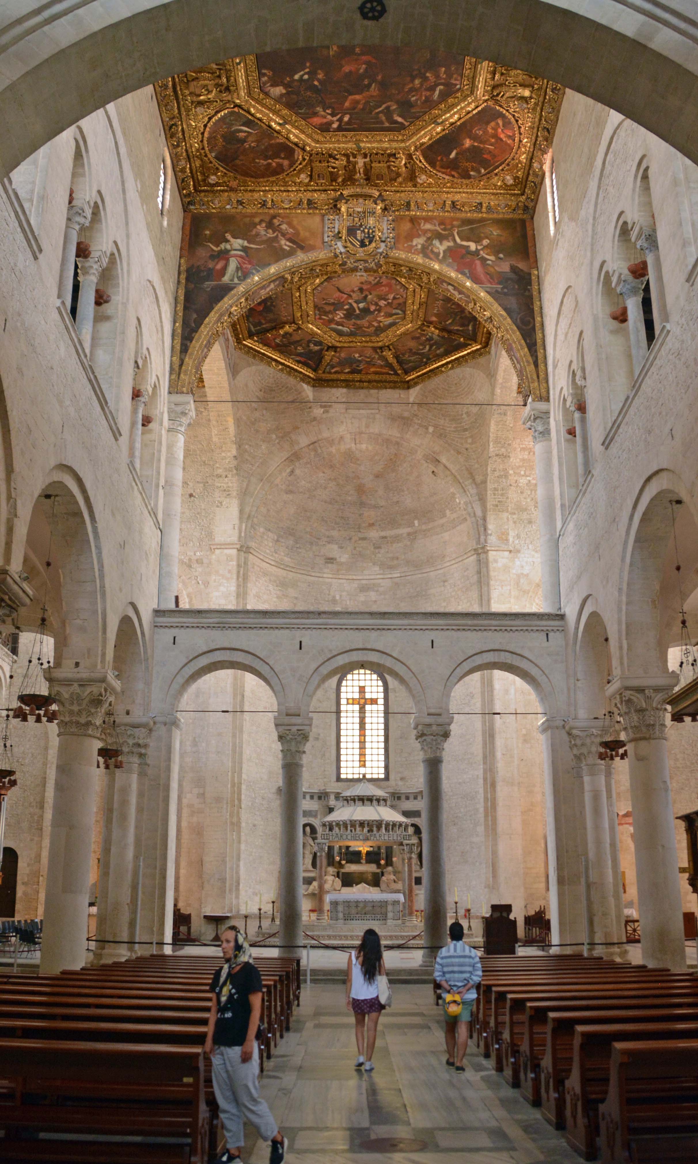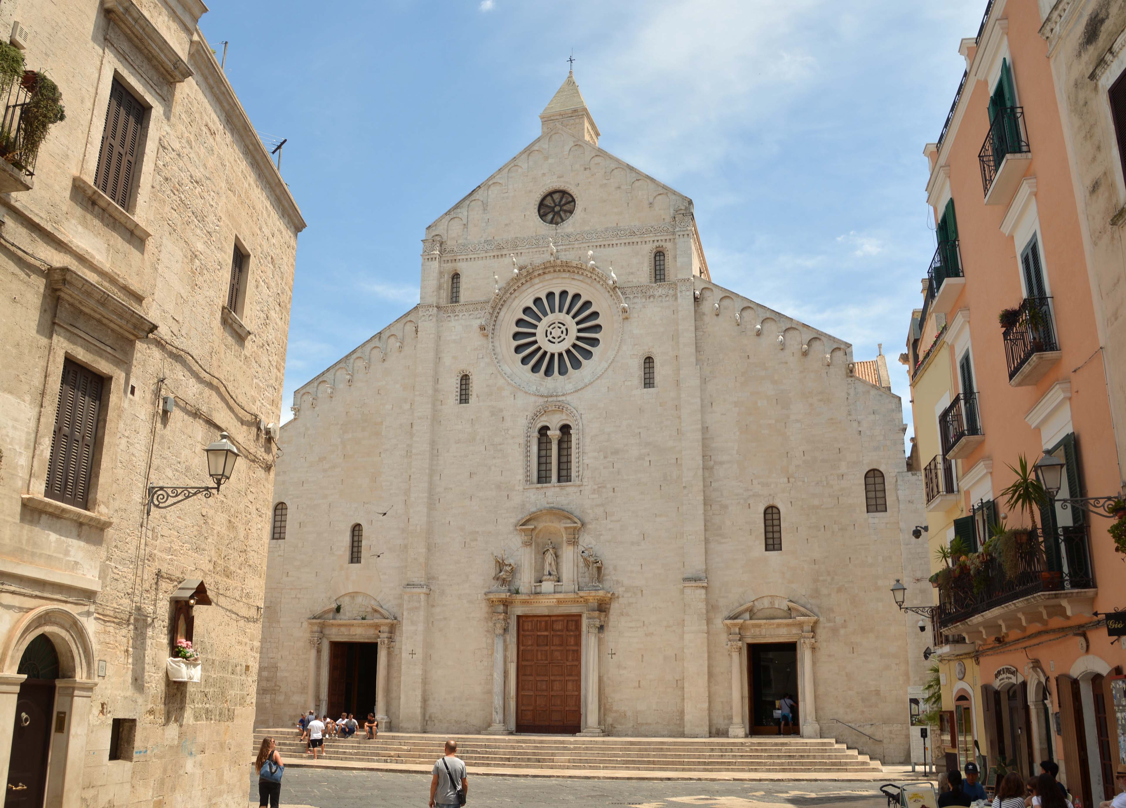Ruckzuck ist das Taxi da und sofort entwickelt sich mit Antonio, dem Fahrer, ein Gespräch. Er kann wenige Worte Deutsch, kein Englisch, ich ein wenig Italienisch und er spricht Slang-Italienisch. Irgendwie klappt die Verständigung und Antonio fährt mich direkt vor das Hauptportal der bedeutenden Pilgerstätte Basilica San Nicola (11 Jh.). Wir vereinbaren, dass er mich gegen 16 Uhr hier wieder abholt.