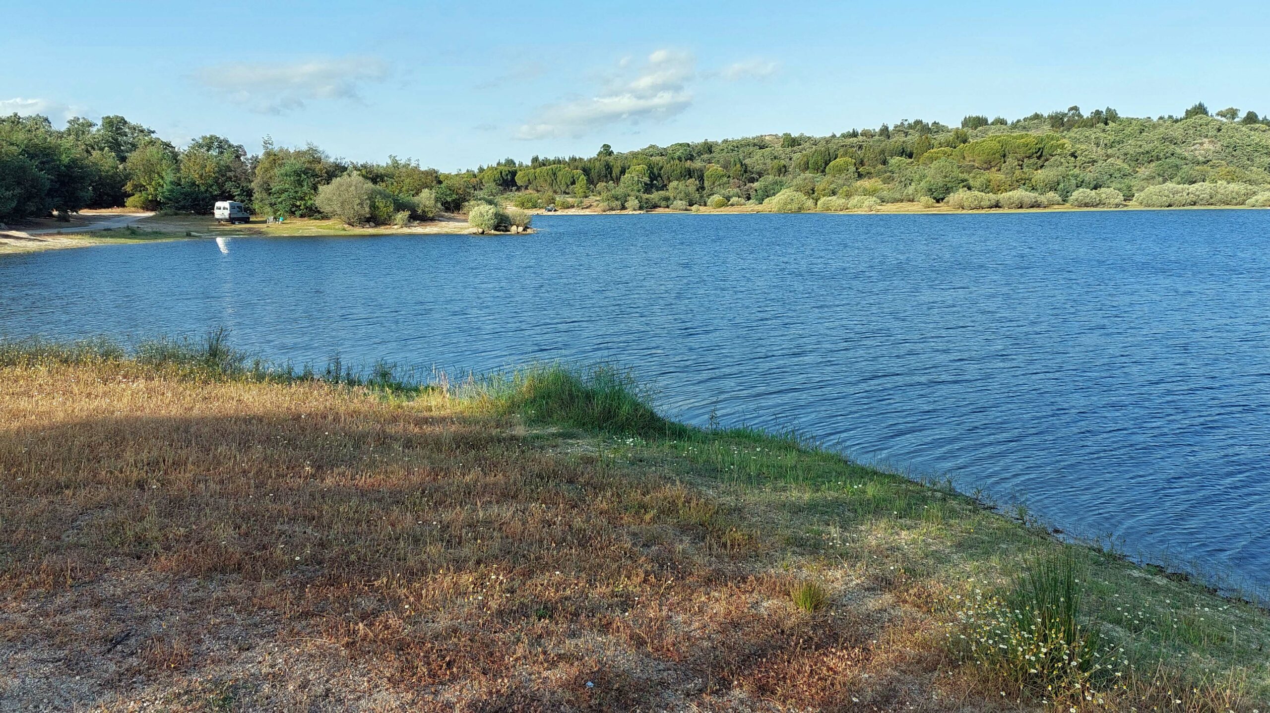 Auf dem Weg zu meinem Übernachtungsplatz komme ich am idyllischen Bergort Castelo de Vide vorbei. Den Campingplatz in der Nähe verfehle ich dank meiner falsch eingegebenen Koordinaten. Ich lande auf einem Stellplatz an einem kleinen Stausee im Nirwana. Natur pur und totenstill. Gott sei Dank bin ich nicht alleine, weitere acht Wohnmobile stehen vereinzelt um den See. Na dann, Gut’s Nächtle!!!!
