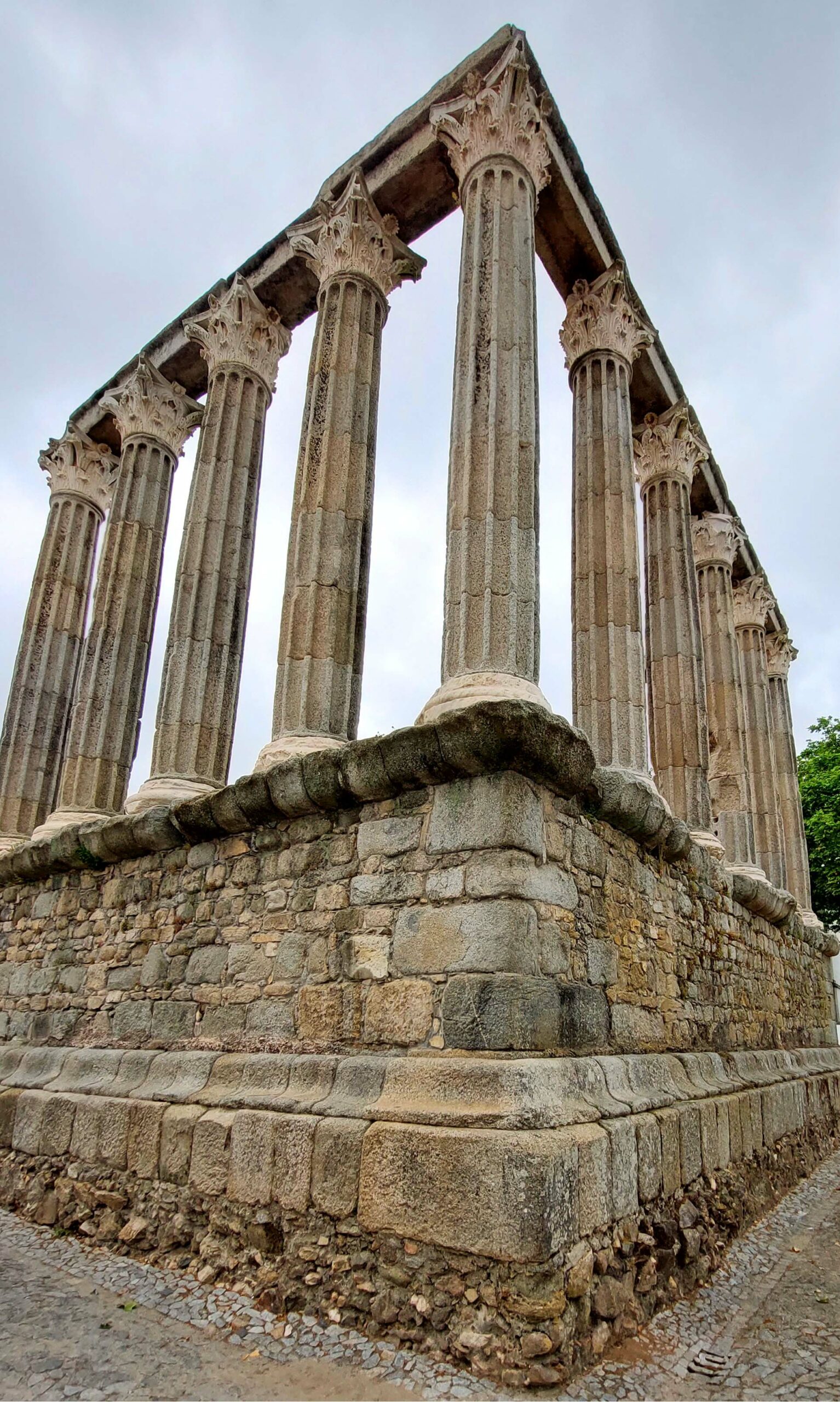 Ich komme an einen schönen Miradou und stehe wenig später vor dem 2000 Jahre alten majestätischen römischen Diana Tempel mit seinen 14 korinthischen Granitsäulen! Er ist eine der geschichtlich bedeutungsvollsten Ruinen Portugals und stammt aus der Epoche Kaiser Augustus. Im Laufe der Jahrhunderte wurde der Tempel geplündert, teilweise von den Westgoten verwüstet, mehrfach zugemauert, umgebaut und hatte im 14. Jh. seine profanste Verwendung als Schlachthaus! Letzterem Umstand ist es aber zu verdanken, dass der Diana-Tempel bis heute so gut erhalten blieb.