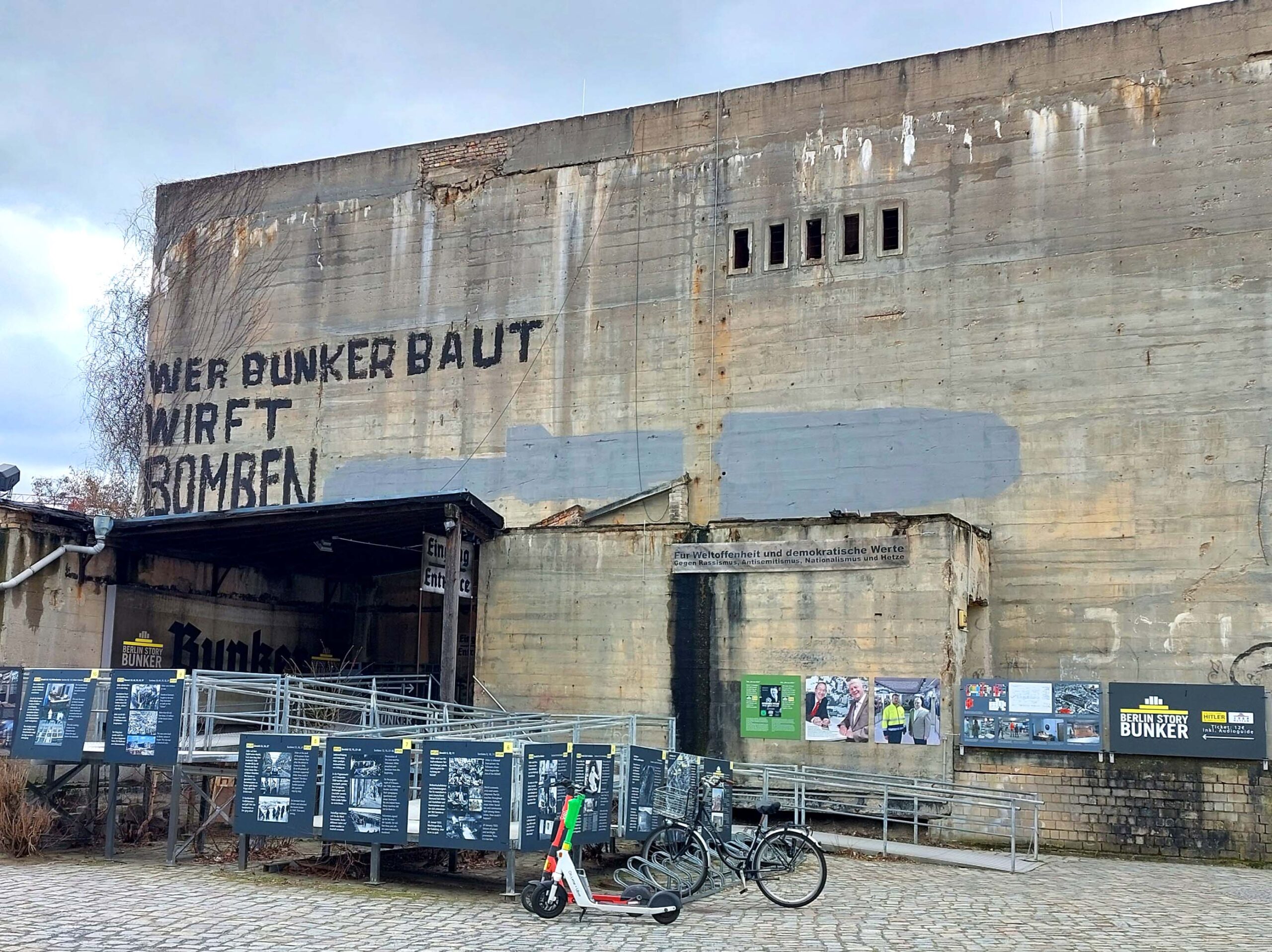 Ich entdecke den Anhalter Hochbunker, der als sogenannter „Führer-Bunker“ errichtet wurde. Er bot während der alliierten Bombenangriffe Platz für bis zu 3.500 Menschen und war über unterirdische Gänge mit dem Anhalter Bahnhof und dem S-Bahn-Tunnel verbunden. Seit 2014 ist er Museum.