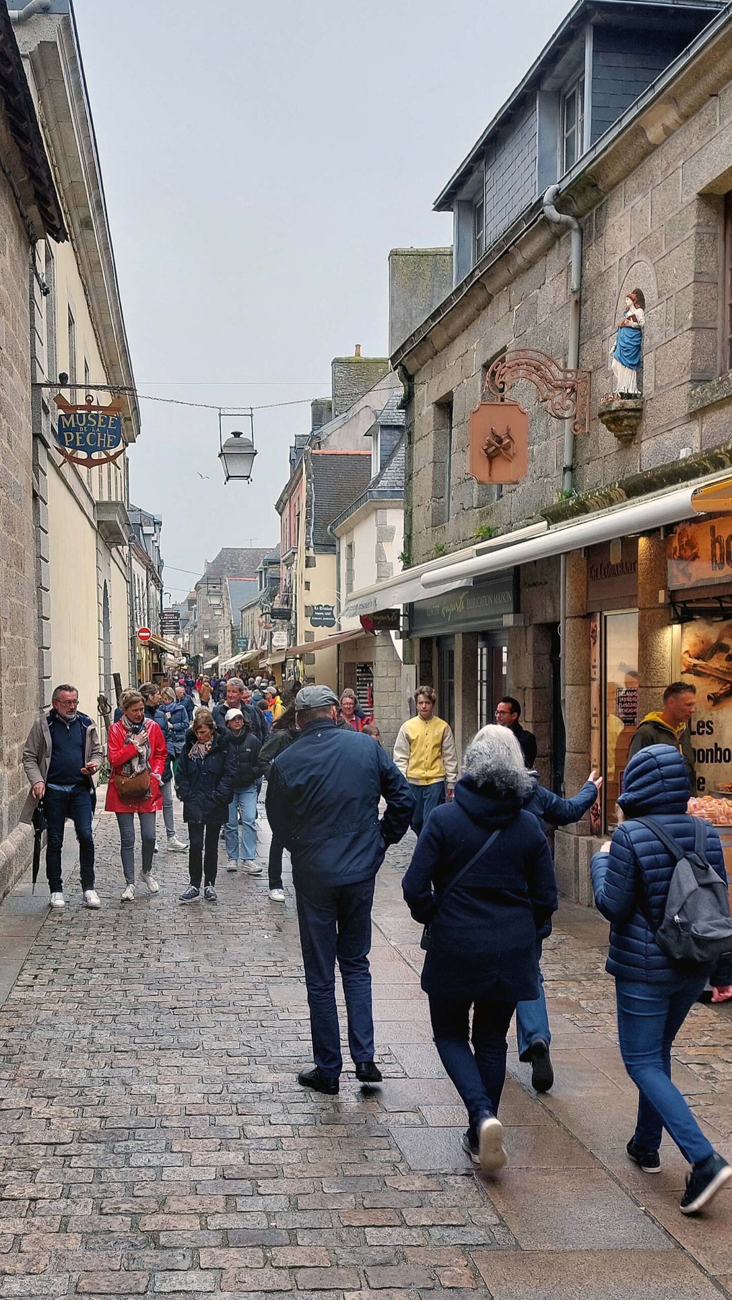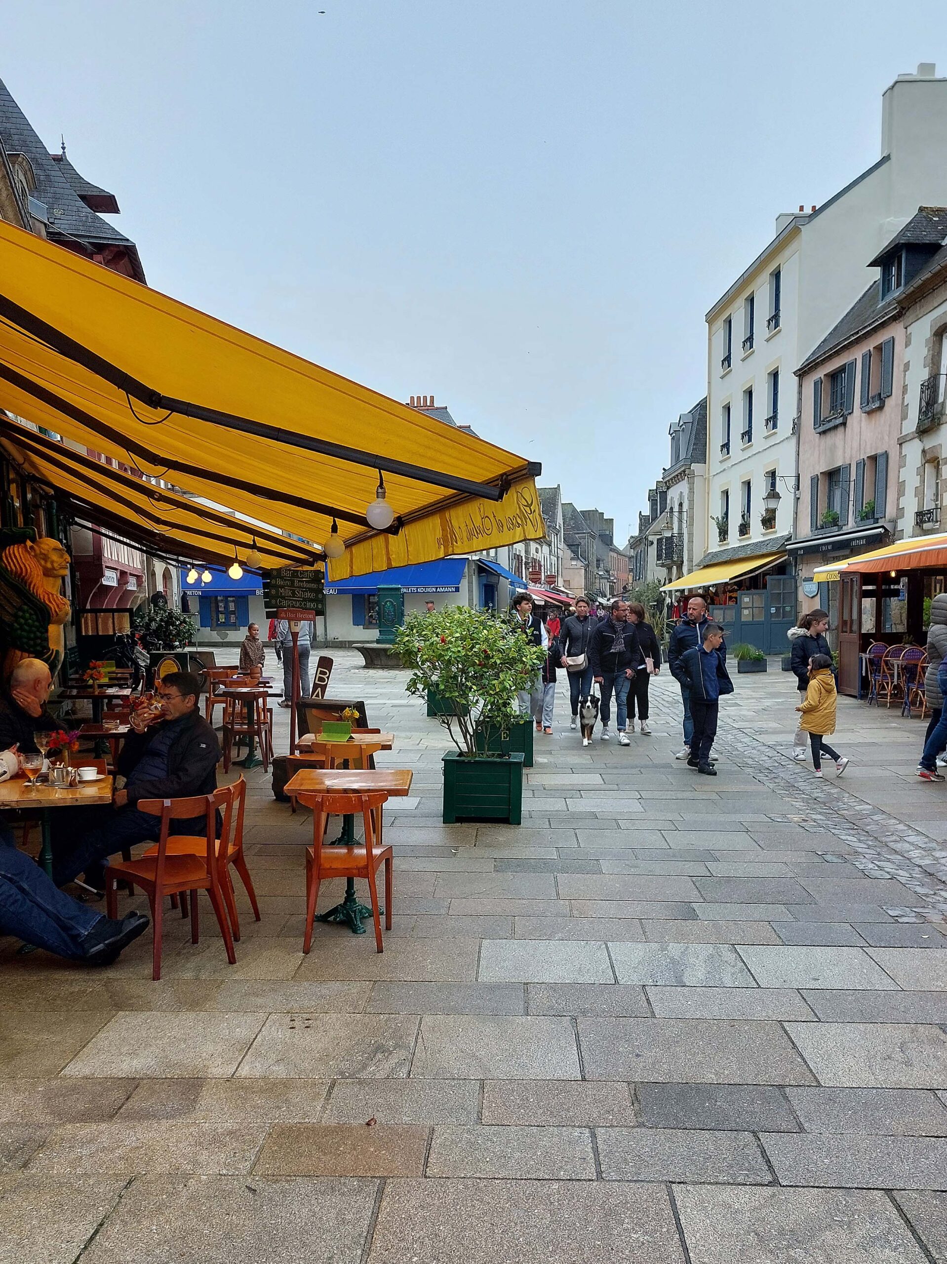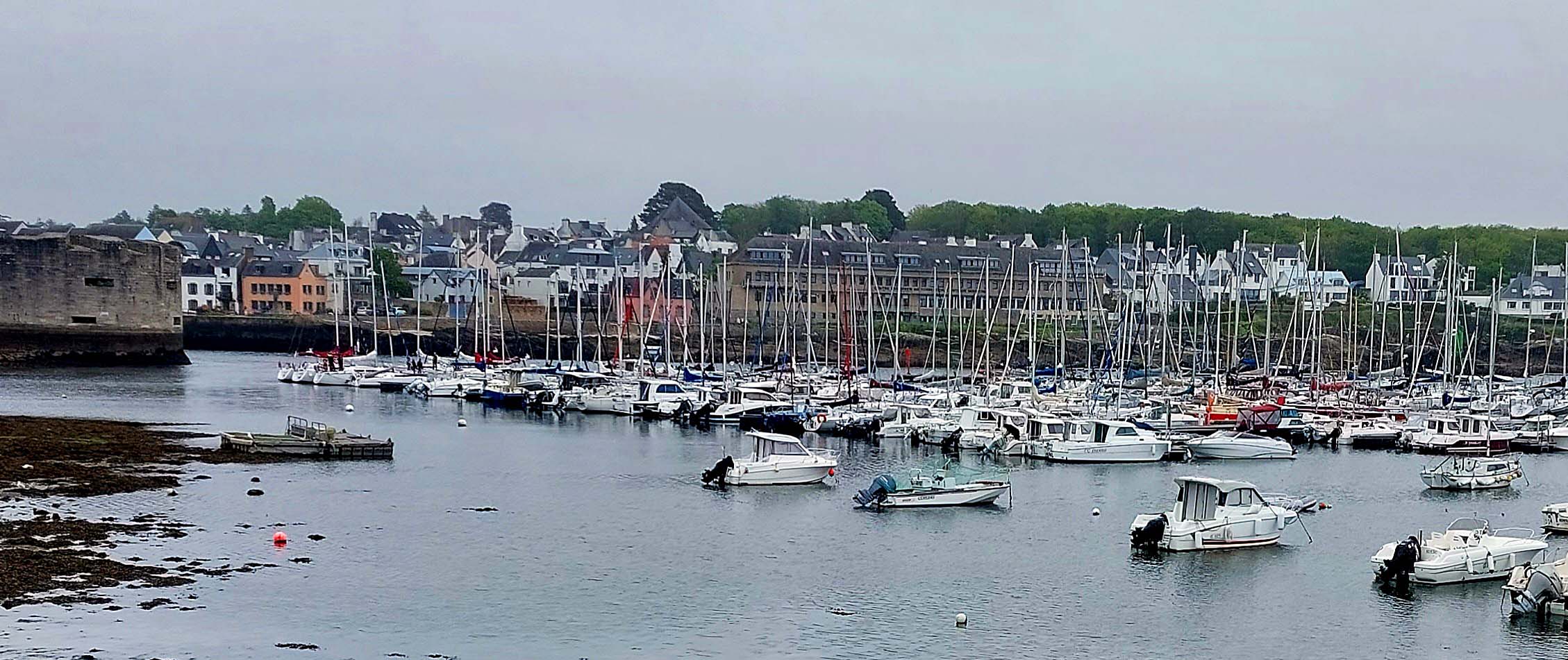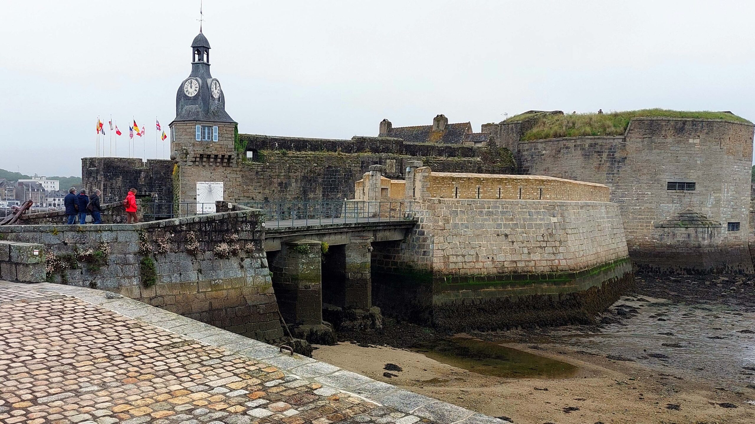 Ich starte nach Concarneau. Die Stadt ist ein kleines Juwel und von historischen Festungsmauern umgeben. Diese sind aus dem 14. Jahrhundert. Der große Baumeister Vauban vollendete sie im 17. Jahrhundert. Die Ville close ist von Wasser umgeben. Auf meinem Rundgang auf der Mauer bieten sich schöne Einblicke in die Sträßchen und Ausblicke auf Hafen und Yachthafen. Es war noch Markt, und….. es hört auf zu regnen!
