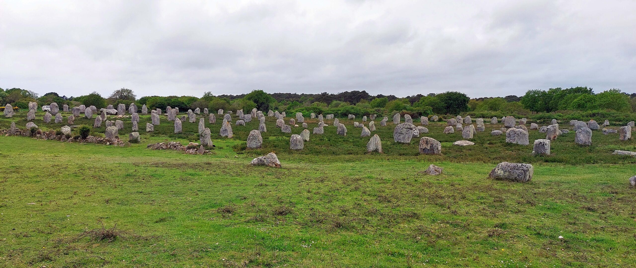 Es geht weiter nach Carnac, wo ich erneut die bis zu 7000 Jahre alten Hinkelsteinreihen besichtigen möchte. Sie sind Zeugnis der europäischen Vorgeschichte. Auch hier ist es regenfrei. Es soll der weltweit größte megalithische Komplex dieser Art sein. Die Steinreihen ziehen sich über fast 4 Kilometer hin. Menhire, die wie Pilze aus dem Boden sprießen. Und zwischendurch eine kleine Schafherde. Hier ist recht gut was los und ich bin um den gesamten Komplex herumgelaufen.