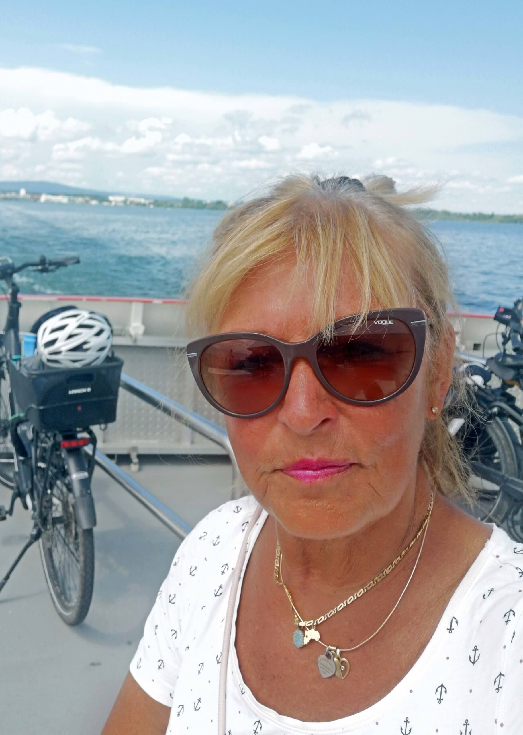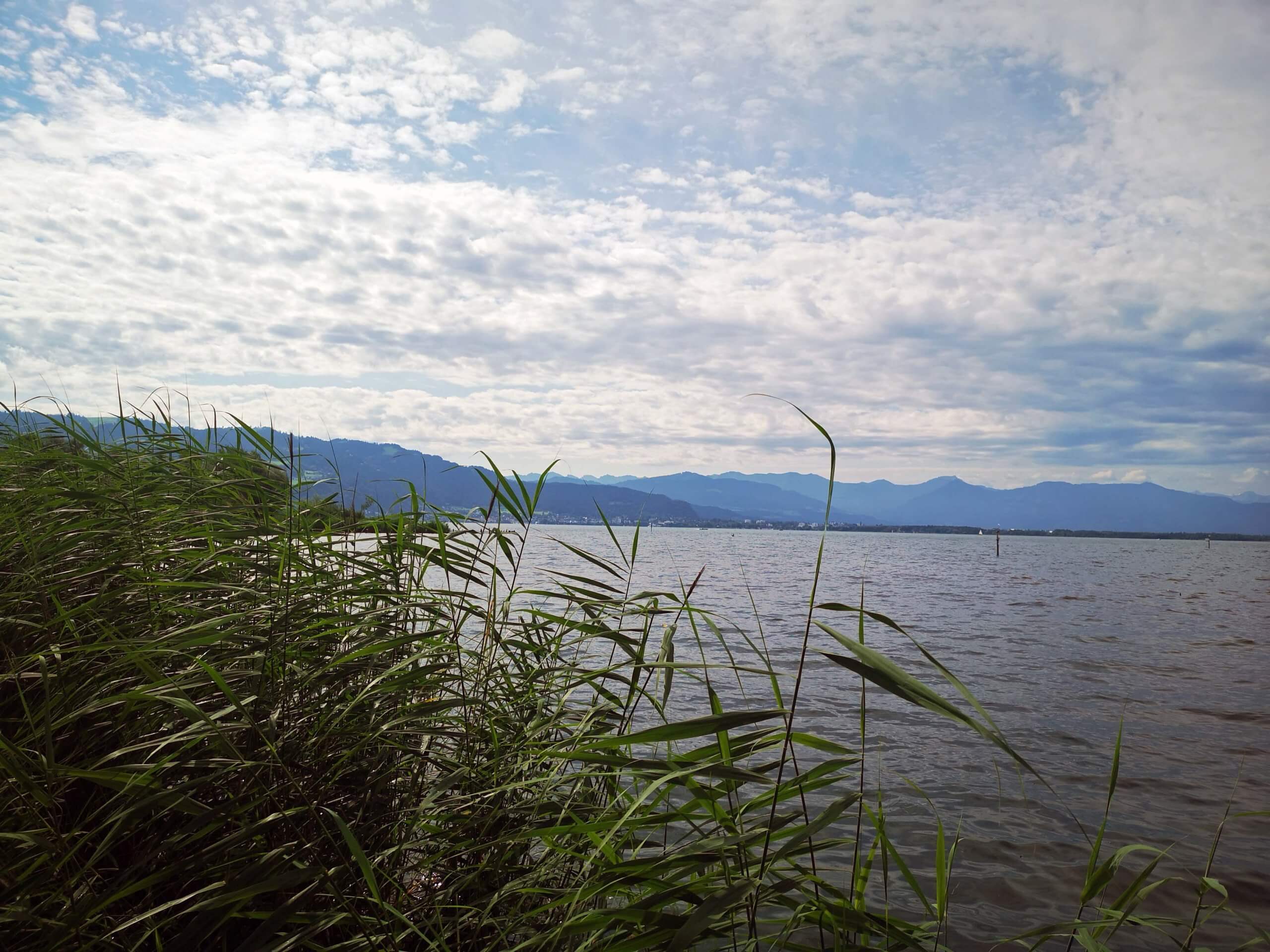 Jetzt starte ich erstmal mit meinem Rad ins 35 Kilometer entfernte Friedrichshafen. Ich fahre über Wasserburg, Nonnenhorn, Kressbronn, Langenargen und Eriskirch. Noch ist es bewölkt, aber die Sonne lässt sich nicht vertreiben.
