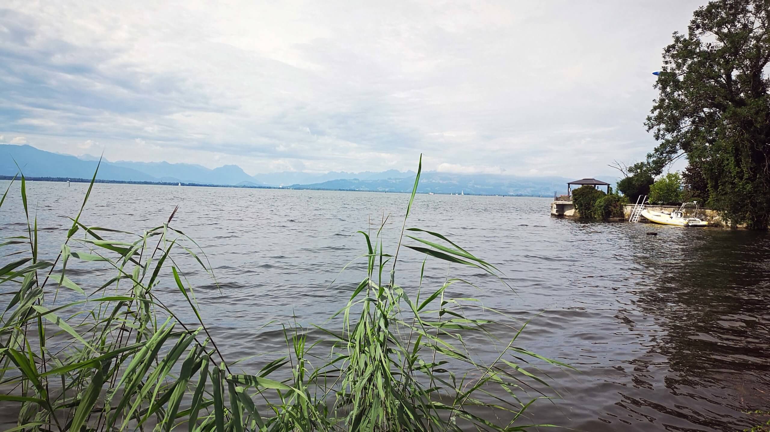 Ich starte zu einem Stadtbummel, picknicke am See und fahre für den stolzen Preis von 21 Euronen mit der Bodensee-Schifffahrt zurück nach Lindau. Am Konstanzer Horizont ziehen dunkle Wolken auf. Es sieht wieder mal nach Gewitter und Starkregen aus. Damit kenne ich mich mittlerweile ziemlich gut aus!!!! Leider.