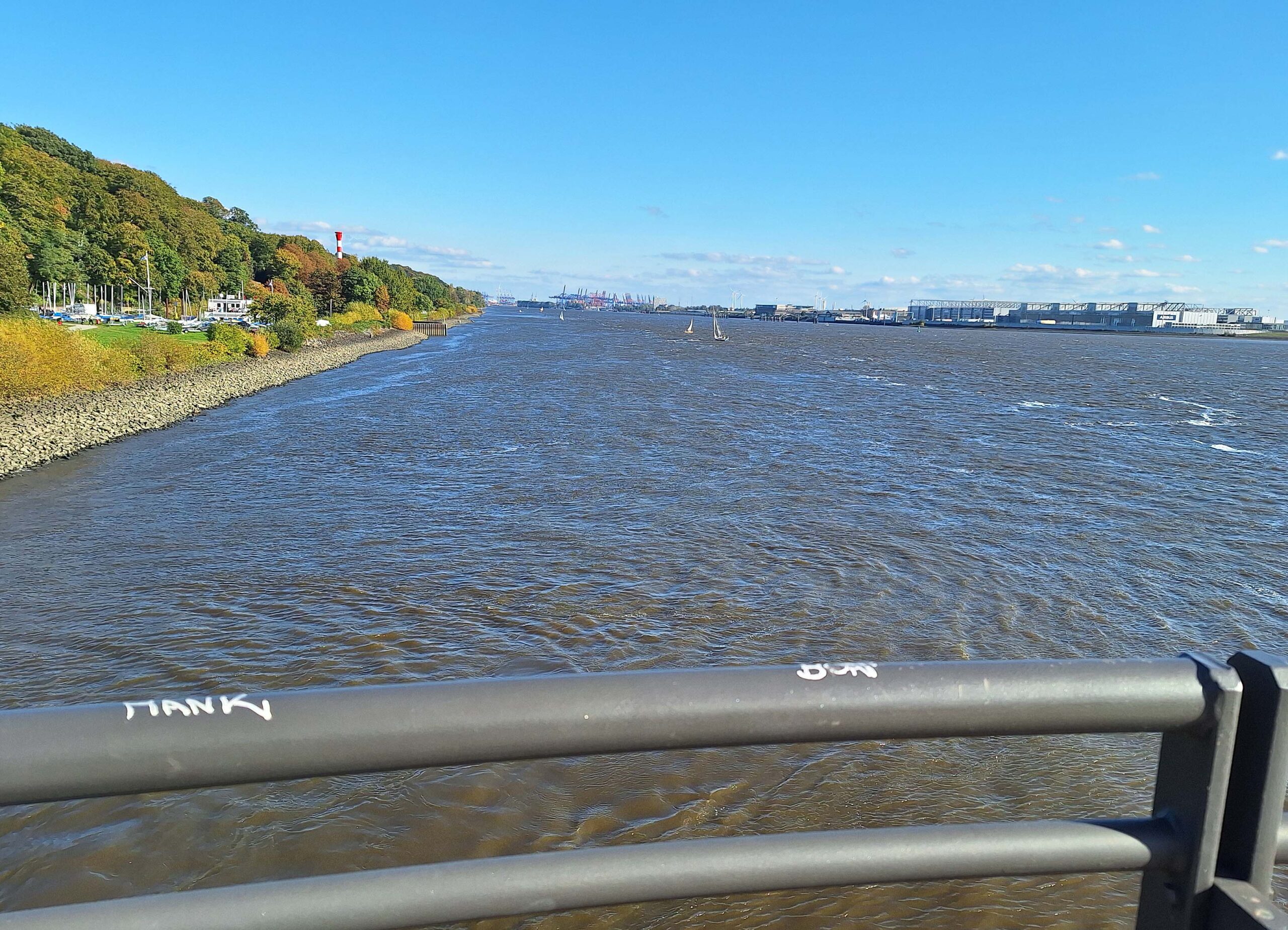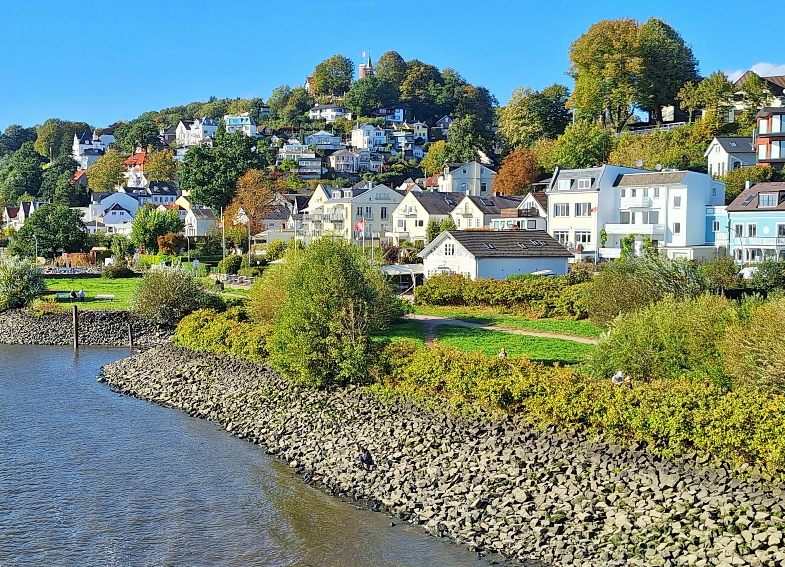 Mein letzter Tag in Hamburg steht ganz im Zeichen „Entschleunigen & Chillen“. ⛱️ Karen und ich werden einen sonnigen Tag in den Hamburger Vororten Wedel und Blankenese genießen. An dieser Stelle ist die Elbe unglaubliche zweieinhalb Kilometer breit!