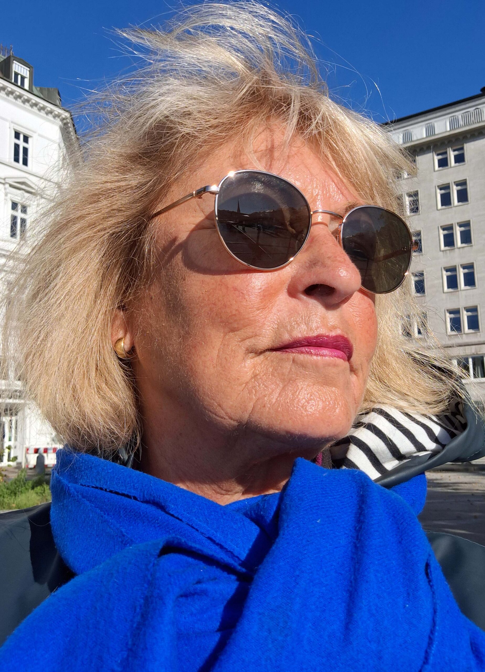 Aufgrund einer neu eingerichteten Baustelle 🚧 verspätet sie sich ein paar Minuten. Ich nutze die Zeit, chille in der Sonne und genieße den Blick auf die Binnenalster. Hätte hier noch stundenlang weiterträumen können. Aber Karen weckt mich und los geht’s.