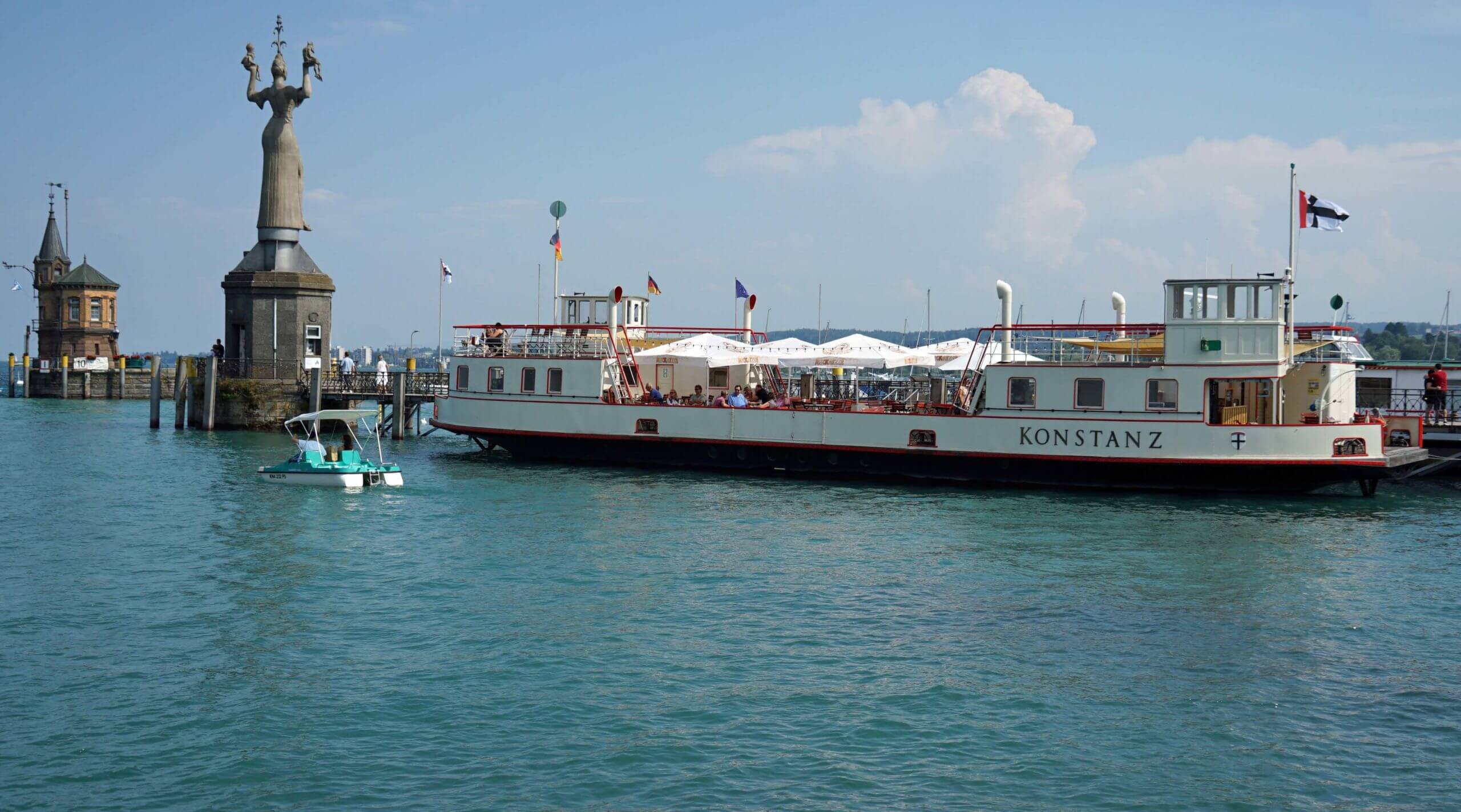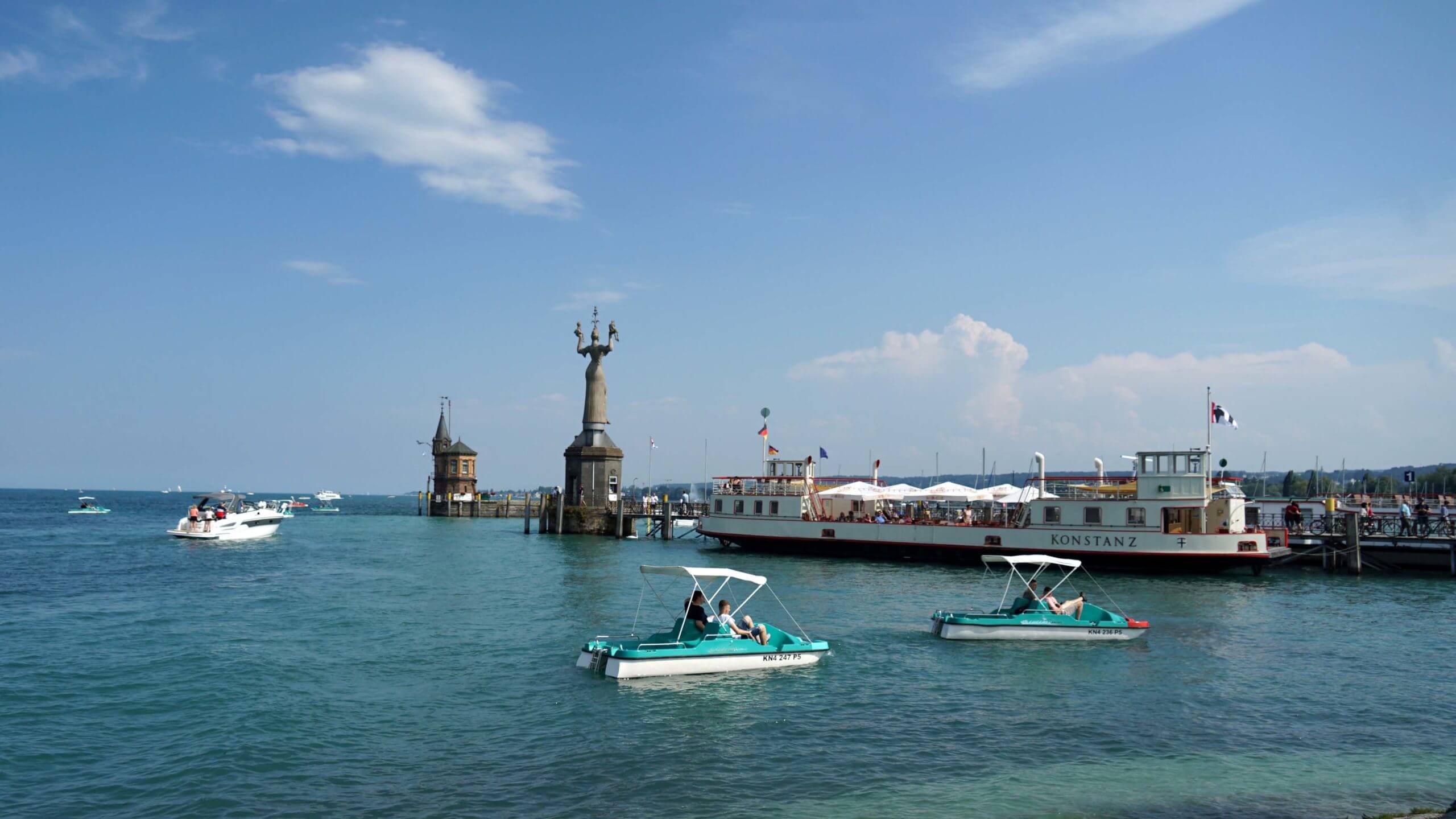Aber am frühen Nachmittag habe ich schon wieder Hummeln im Hintern, denn wider Erwarten ist die Sonne da. Ich radle nach Konstanz und erledige dort einige Dinge. Dieses Mal schaue ich mir den Rheintorturm, das ehemalige Stadttor und Gefängnis, an der mittelalterlichen Brücke genauer an. Auf dem Weg zum Hafen begegne ich allerlei Straßenkünstlern. Ich versuche meine Cousine zu erreichen, denn heute ist ein perfekter Tag, um sich vor meiner Abreise nochmal zu treffen. Ich schlendere noch ein bisschen an der Uferpromenade entlang und stehe am historischen Zollhaus, dem Konzilgebäude.