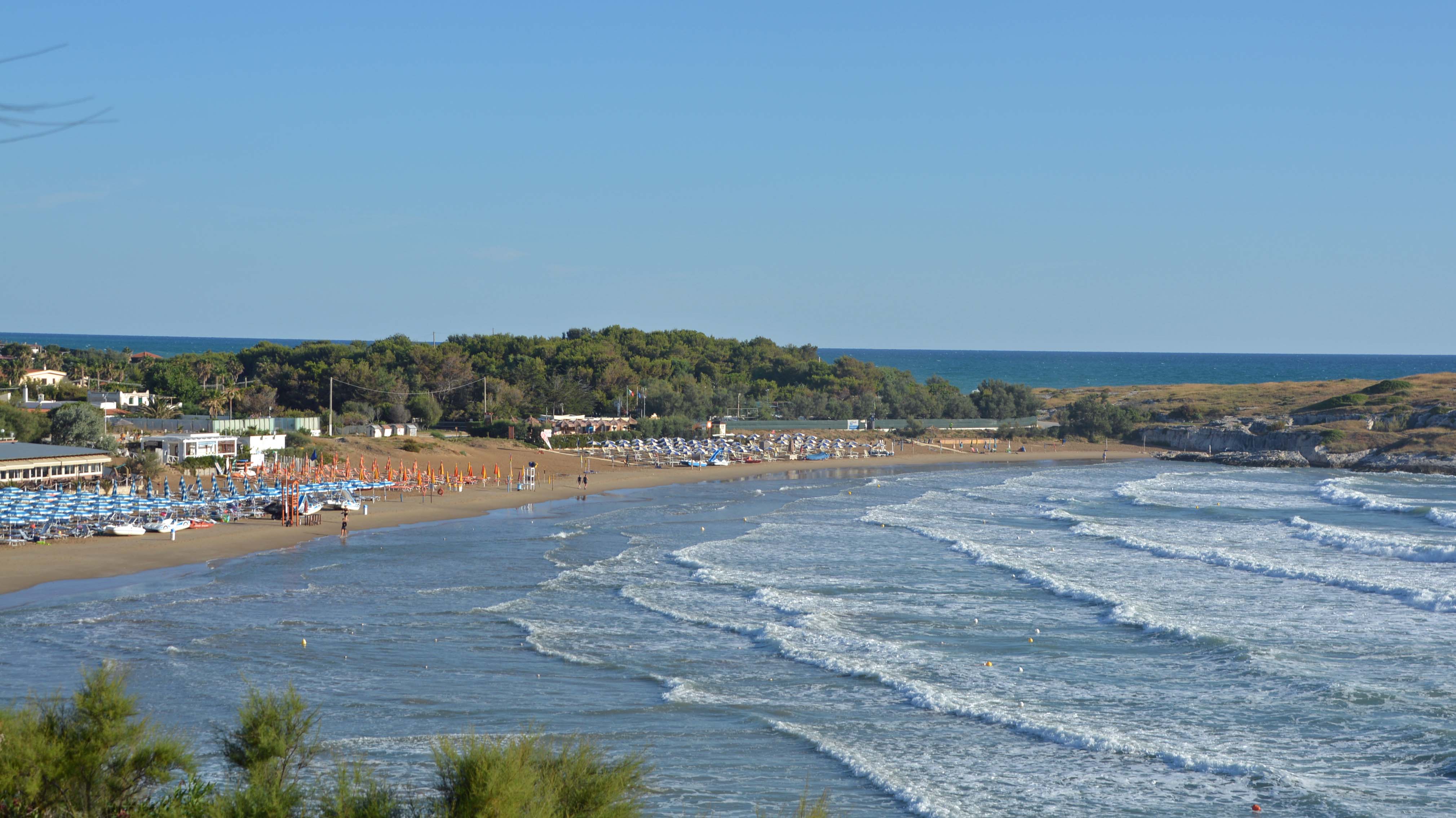 Nach einer herrlich entspannten Nacht werde ich vom Meeresrauschen geweckt, frühstücke gemütlich auf der Womo-Terrasse hoch überm Meer und genieße die Stille, Sonne, Wellen und den weiten Blick auf die herrliche Sandbucht. Noch ist nichts los in den Bagni und Lidi. Bin so fasziniert und möchte noch lange sitzen bleiben. Ein neugieriger Camper-Nachbar aus Kroatien unterbricht die Ruhe. ‚Wie, und diesen Camper fahren sie ganz allein?‘ Er empfiehlt mir, mal mit dem Rad nach Vieste zu fahren, sei ganz leicht.