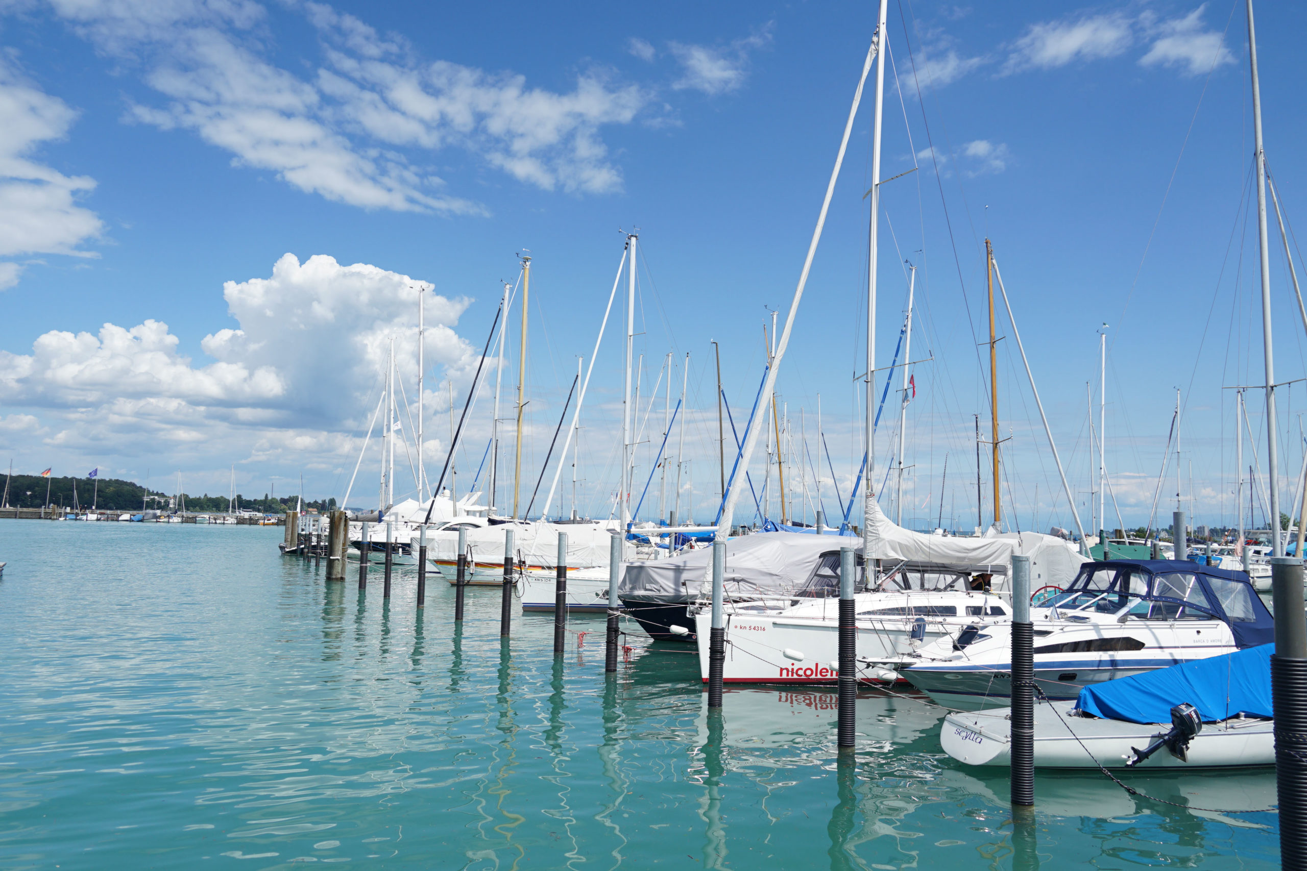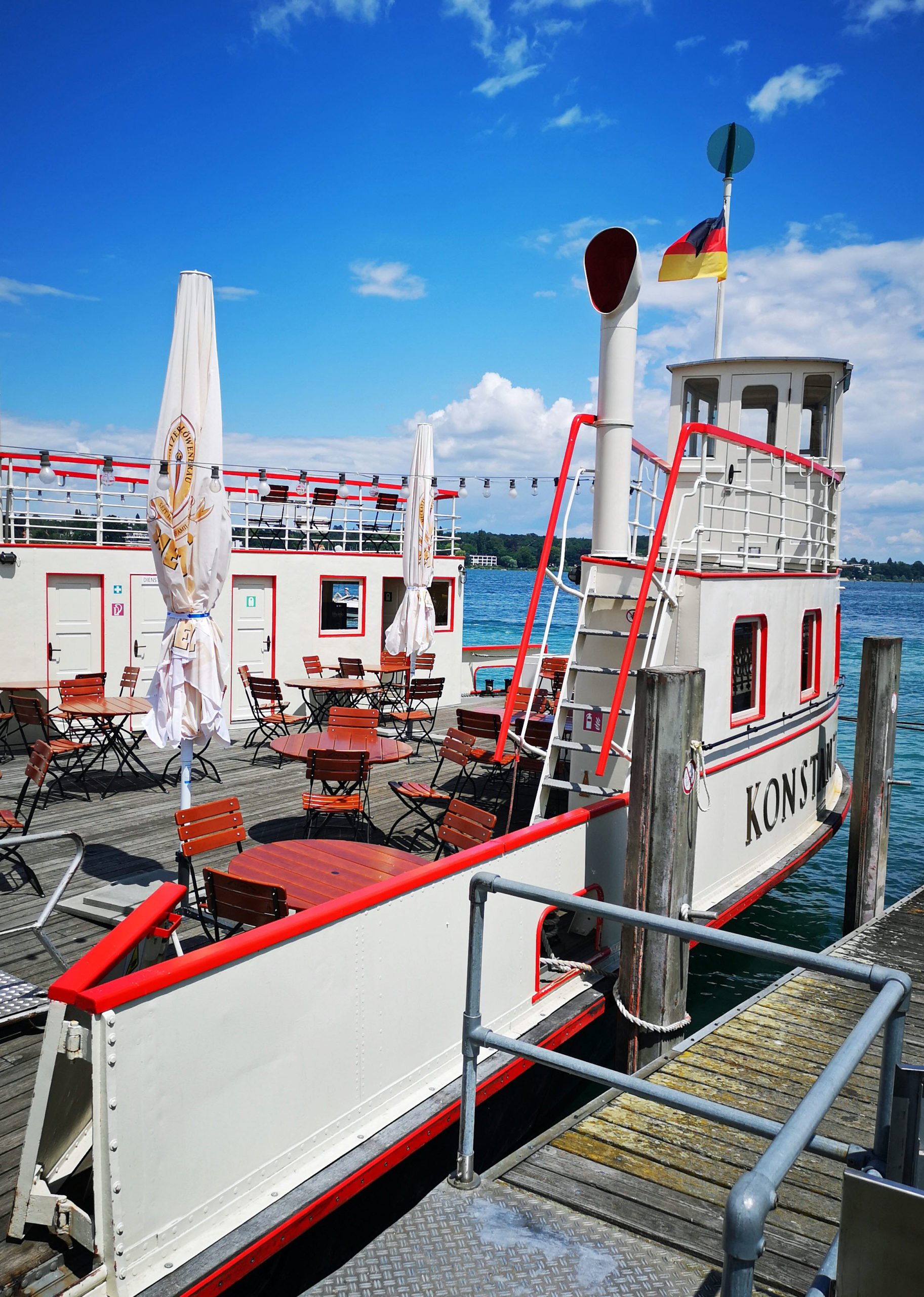 Zunächst hole ich mir Auskünfte bei der Bodenseeschifffahrt für eine einfache Tour nach Schaffhausen. Danach flaniere ich lange an der Seepromenade am Hafen auf und ab. Ich genieße die Promenade mit ihren zahlreichen Restaurants und bin immer wieder von den atemberaubenden See- und Alpenausblicken auf und über das „Schwäbische Meer“ begeistert. Ich lasse mich für einen kleinen Lunch mit Wein in einem Biergarten nieder, genieße die Sonne und chille vor mich hin. Mit Corona im Hinterkopf ein komplett anderes Gefühl.
