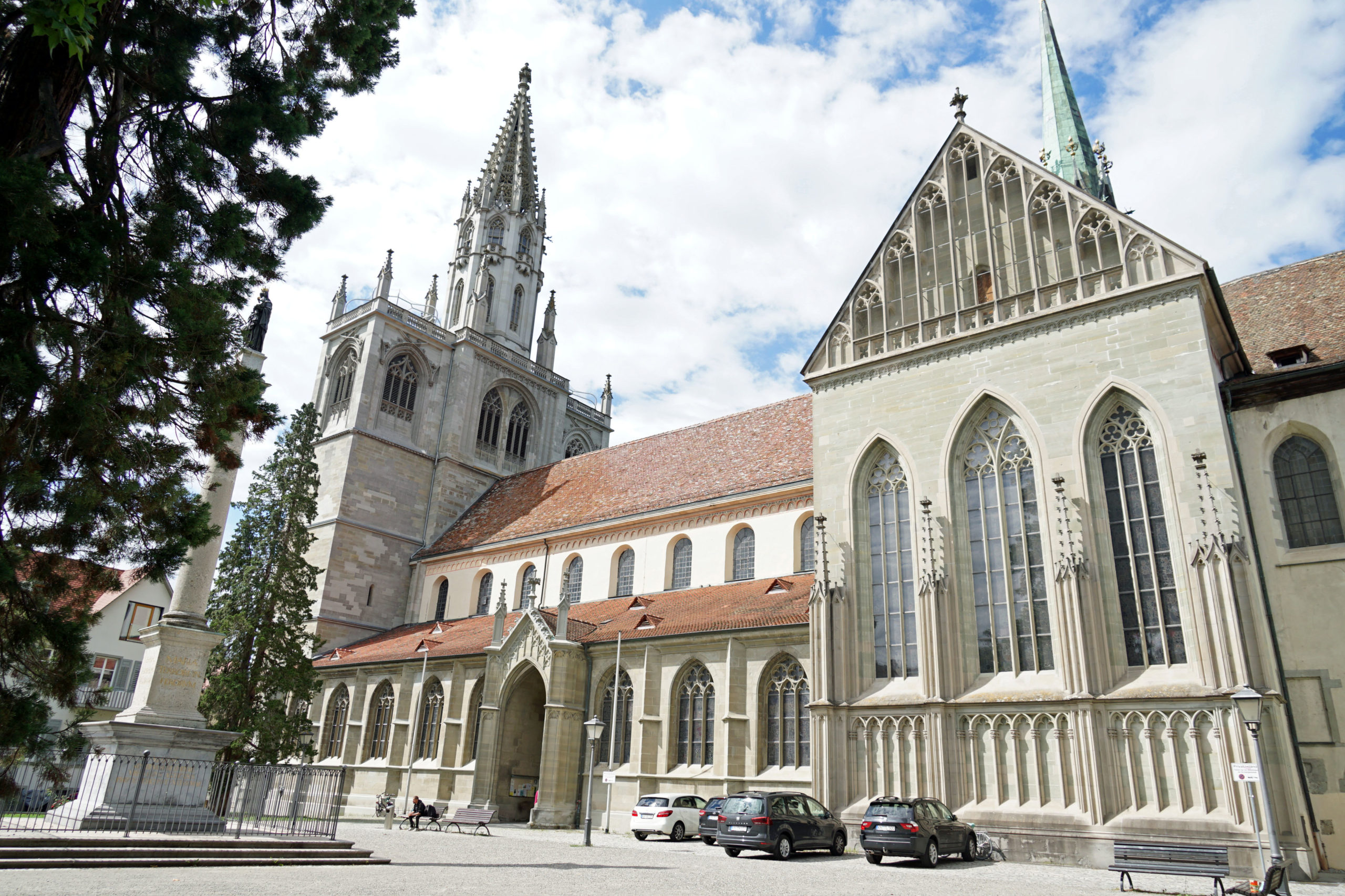 Jetzt nehme ich mir Zeit für die historische Altstadt. Sie liegt südlich des Rheins und damit auf der Schweitzer Seite. Ich laufe durch den gut erhaltenen mittelalterlichen Stadtteil Niederburg, wo sich das romanische Konstanzer Münster’ Unserer lieben Frau‘ befindet. Es ist unschwer an seiner gotischen Turmspitze zu erkennen. Der Turm hat eine Höhe von fast 80 Metern und kann bestiegen werden. In der größten romanischen Kirche Süddeutschlands (600 n.Chr.) fand von 1414 bis 1418 das Konzil statt und somit die einzige Wahl des Papstes, die es je in Deutschland gab. Ganz in der Nähe stehen die St. Stephanskirche und die Dreifaltigkeitskirche.
