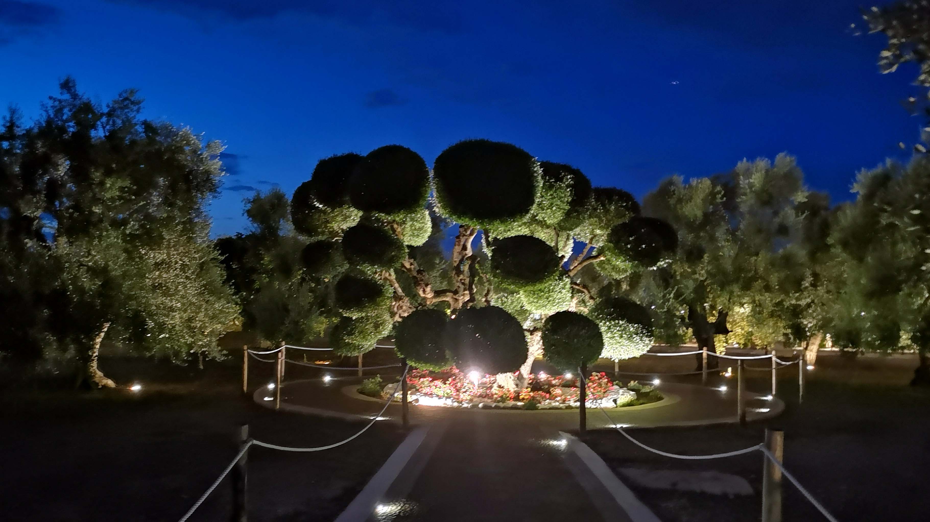 Beschwingt gehe ich ‚nach Hause‘ und bin erstaunt über die Beleuchtung des Olivenhains. Die Geburtstagsparty ist in vollem Gang und das Schlafen wahrscheinlich unmöglich. Ich nutze ein funktionierendes W-Lan und blogge.