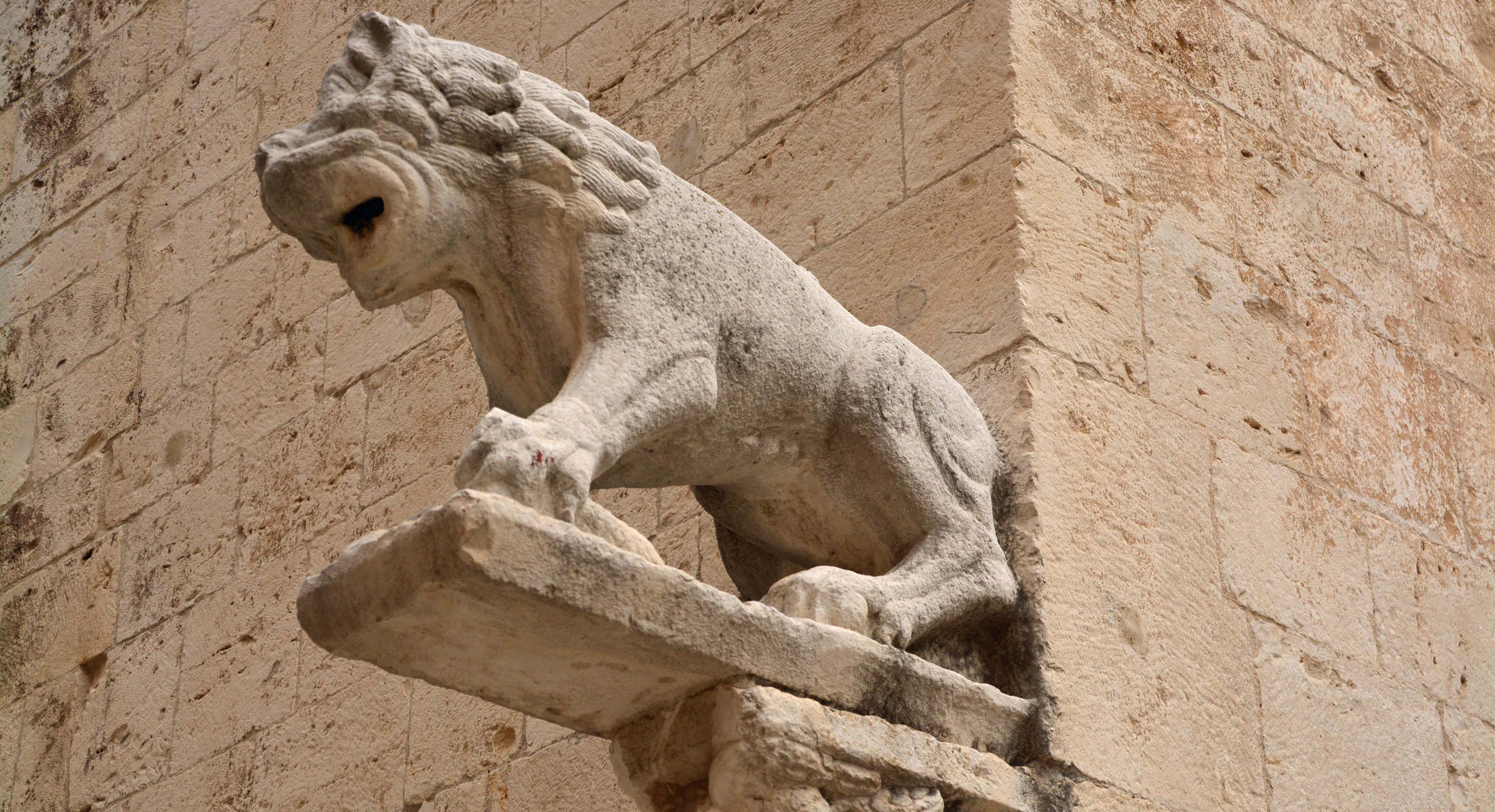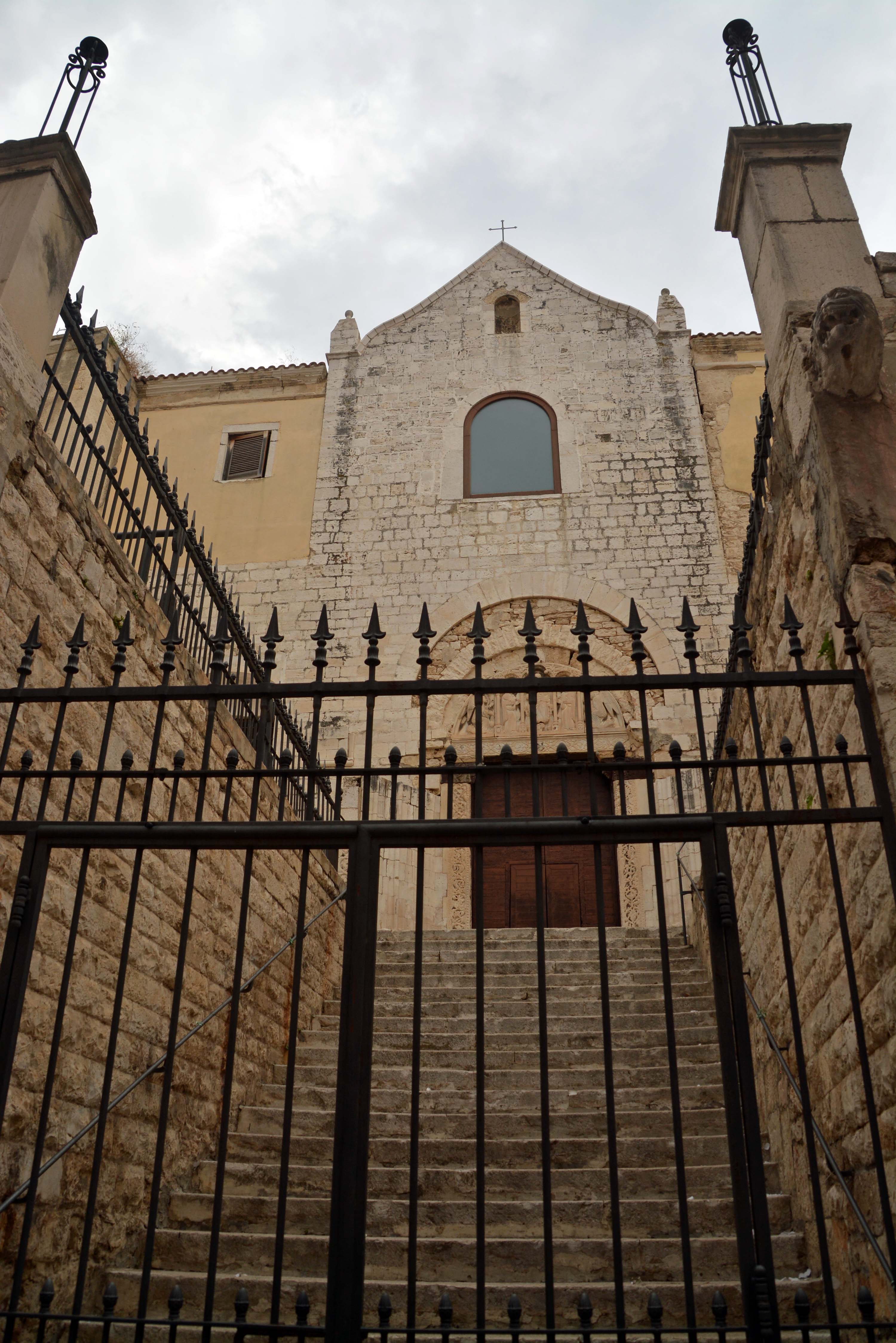 Dann fahre ich in drückender Schwüle nach Barletta. Instinktiv suche ich nach einer Parkmöglichkeit am Lungomare und werde fündig. Die Parkwächter bedeuten mir, dass ich Fiete II doch lieber auf der Area Soster Camper abstellen soll. Einer von ihnen begleitet mich auf dem Beifahrersitz und zeigt mir den Weg. Hier löhne ich 6 Euronen, dafür steht das Womo sicher und bewacht. Ich ziehe los in Richtung Strand und Lidis und bemerke über dem Meer einen immer dunkler werdenden Himmel. Ohjeh, denke ich, das sieht schon wieder nach Ungewitter aus und ich hoffe, das wird für den Streifzug durch die Stadt noch warten. Ich entdecke das imposante Kastell, den 1140 begonnenen Duomo S. Maria Maggiore (natürlich geschlossen, es ist Siesta) und den Koloss von Barletta vor der Chiesa del Santo Sepolcro, der einzigen erhaltenen spätantiken monumentalen Bronzestatue.