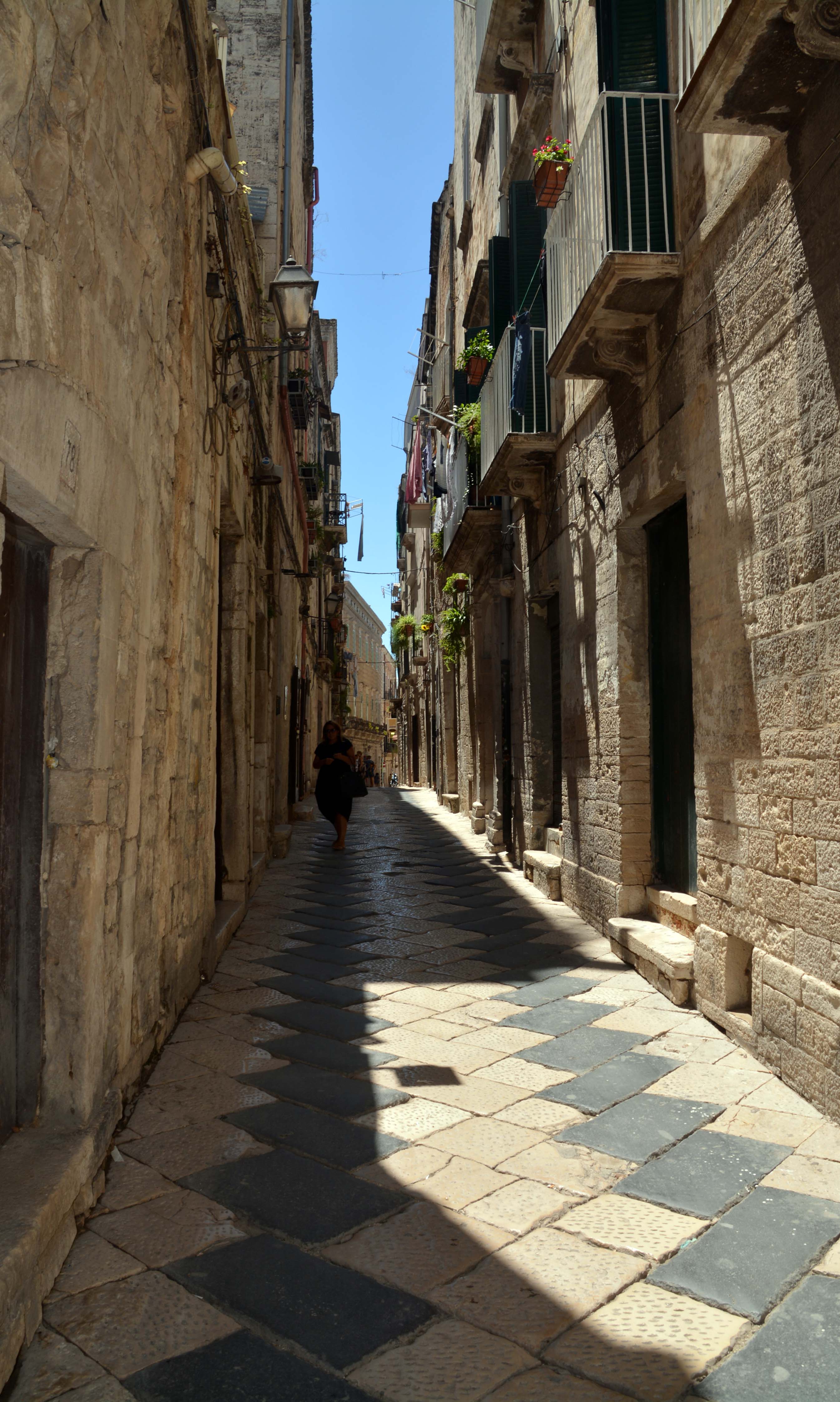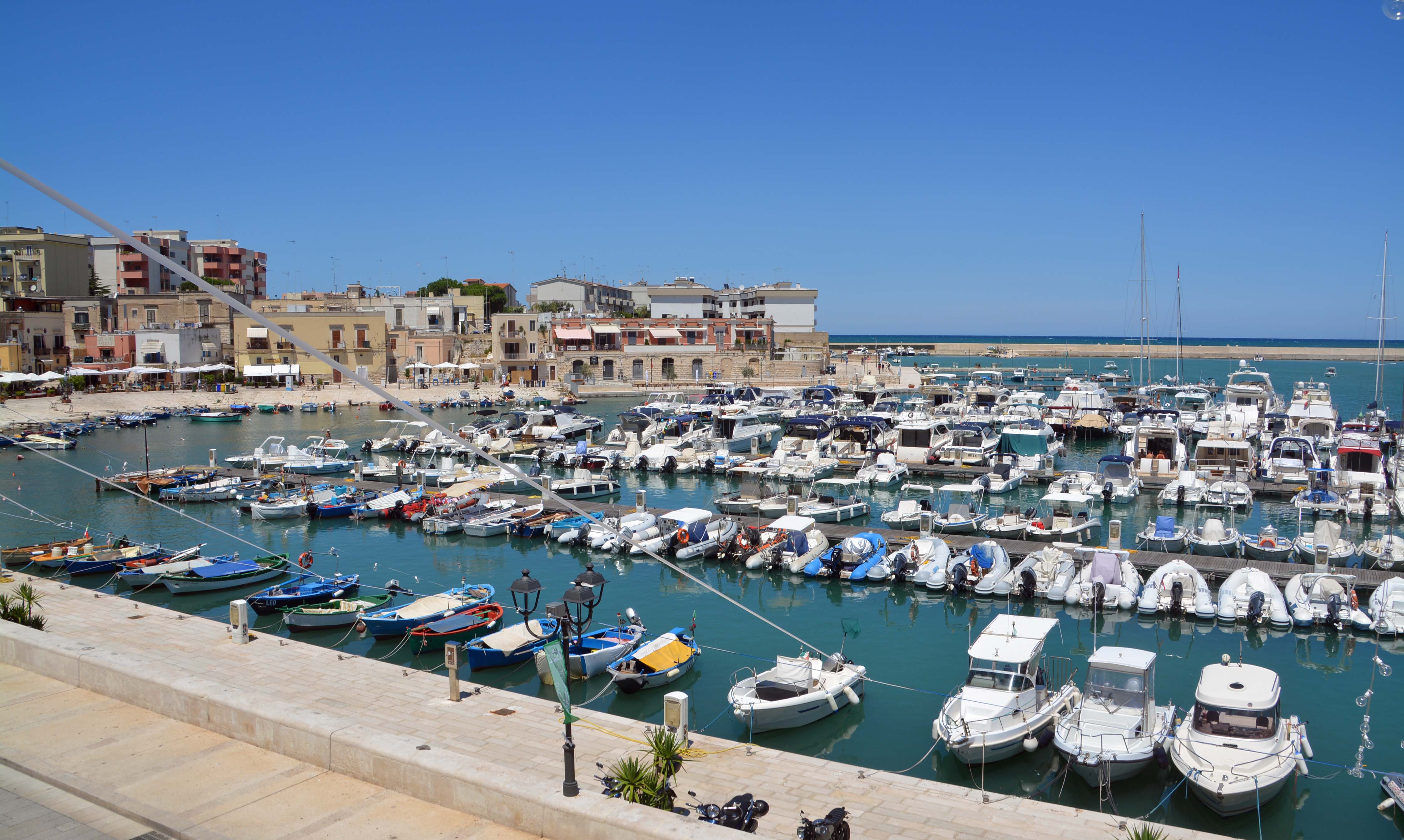 Es ist Highnoon und ich starte nach Biscèglie, einer größeren Stadt mit einem centro storico. Das Highlight des Ortes ist die Cattedrale SS Pietro e Paolo, das Castell, der beschauliche Hafen, der Corso Vittoria Emanuele II und zahlreiche Kirchen. Leider bin ich – wie meist – wieder in der Siesta-Zeit unterwegs, heißt, alle Kirchen haben geschlossen, dafür ist es menschenleer auf den Gassen. Ich gehe in eine Bar, esse wunderbares Eis, eine lockerer Süßspeise, typisch für die Region, und trinke einen cafè doppio. Das alles kostet mich schlappe 4,60 €! Für den Rückweg benutze ich Google-Maps. Passt.