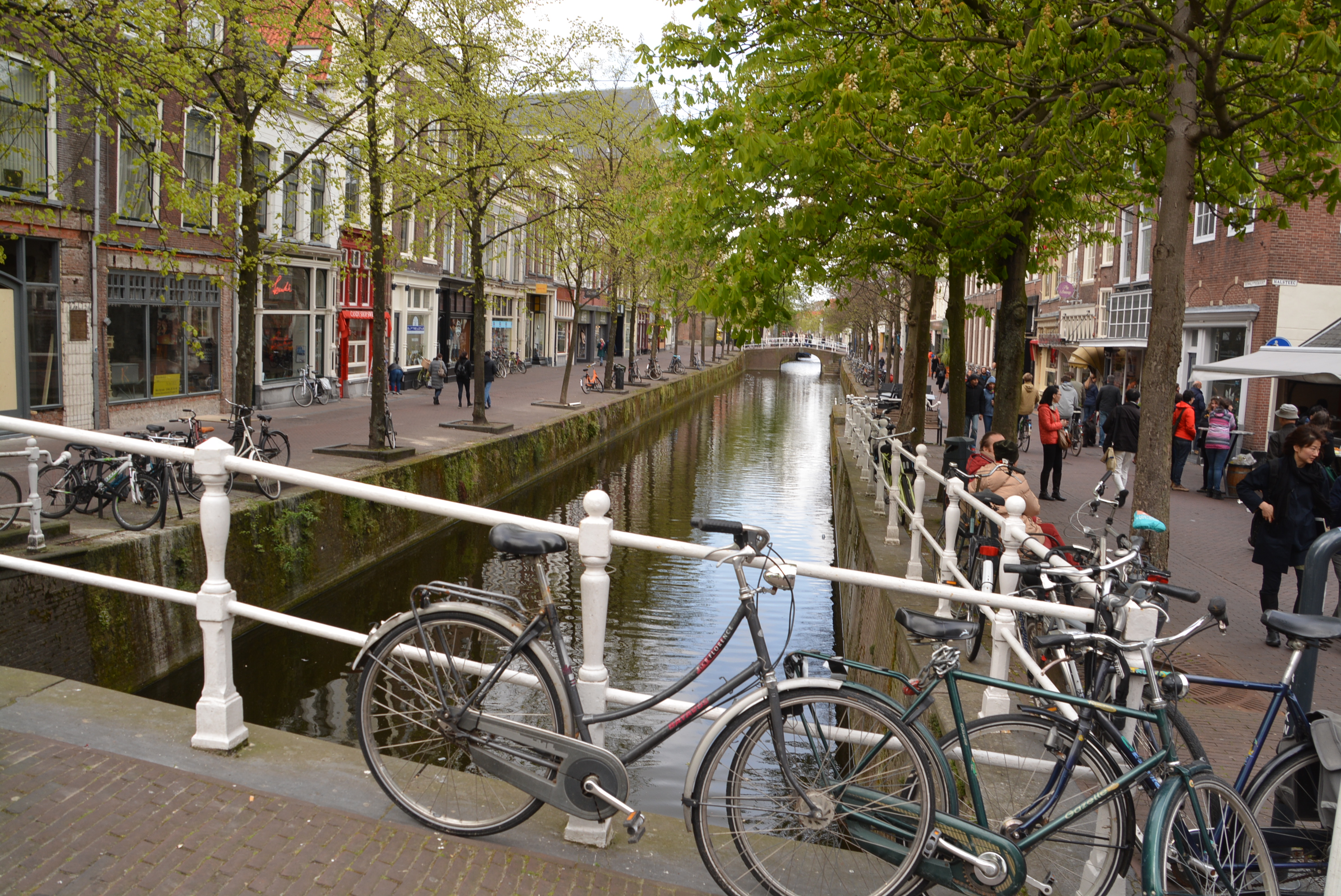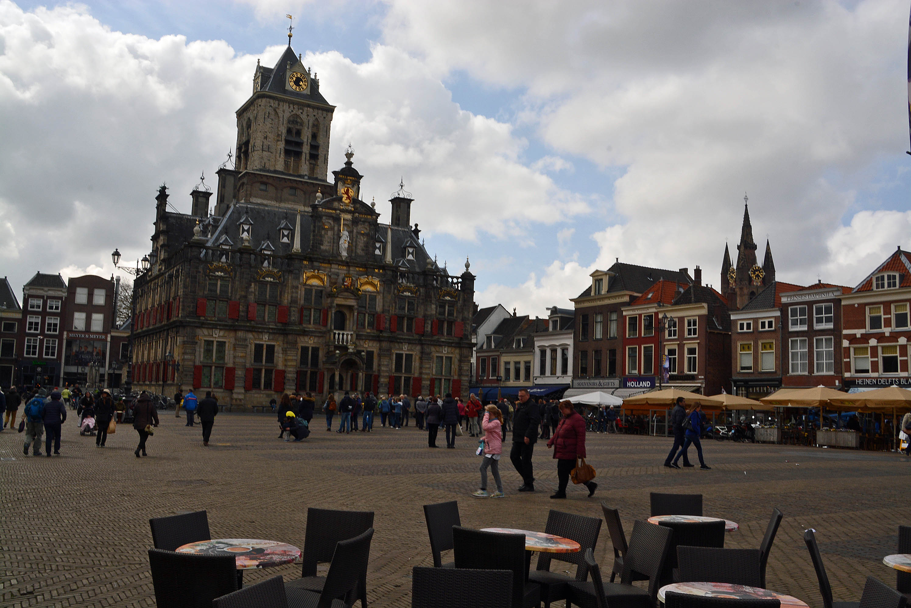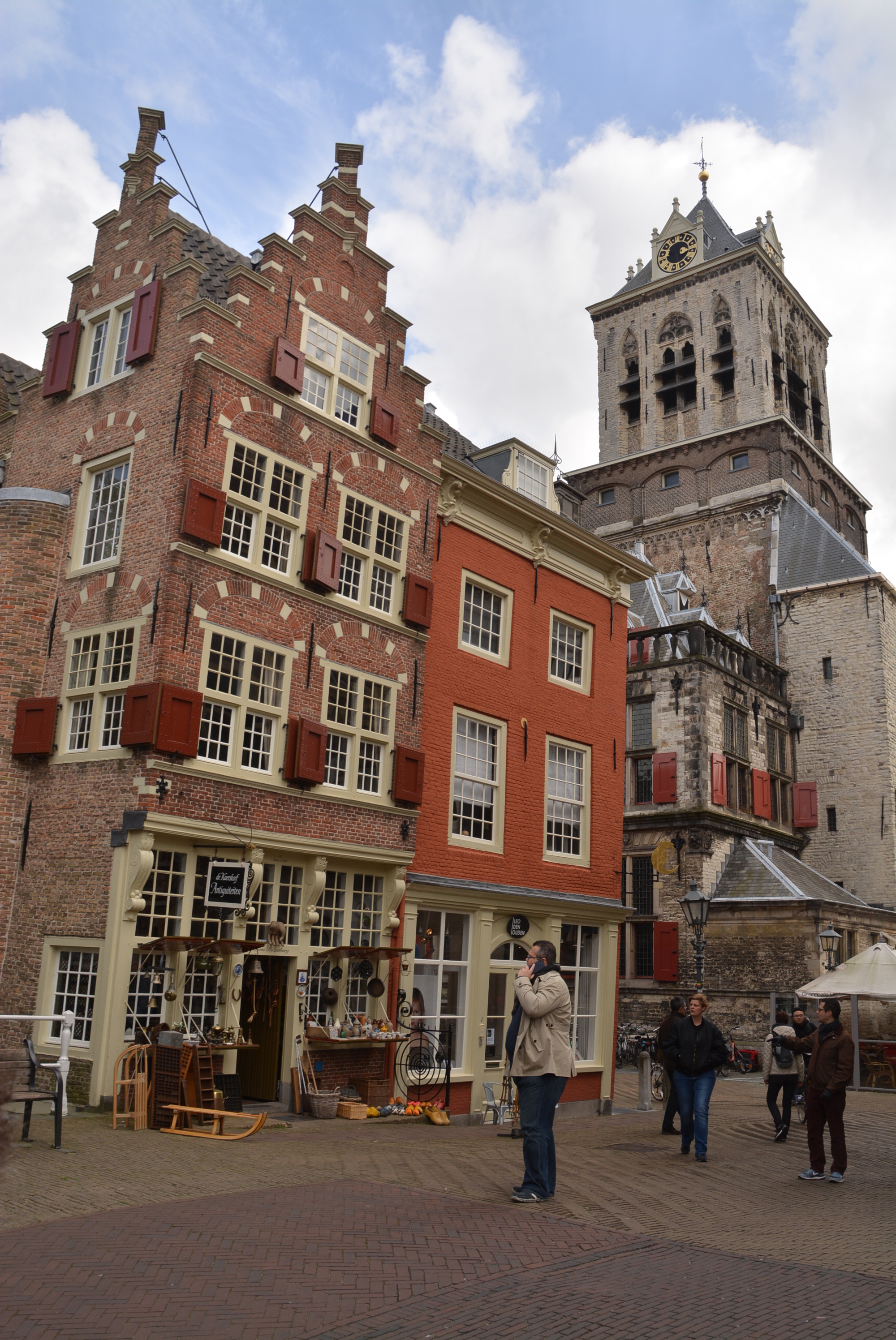Wir kommen auf den riesengroßen Marktplatz, umrahmt von wunderschönen Herrenhäusern und dem ersten Käseladen, den wir in Holland entdecken. Außer Gummikäs‘ gibts dort nichts! Das im Renaissancestil erbaute Alte Stadhuis aus dem 15. Jahrhundert thront beeindruckend gegenüber der Grabkirche. Wir schlendern an zahlreichen Grachten entlang. Vor den Häusern parken hunderte von Fahrrädern. Unser Ziel ist das ‚Oostpoort‘, das um 1400 entstanden ist und als einziges der ehemals fünf Stadttore noch erhalten ist. Auf dem Rückweg müssen wir uns erneut auf Temperatur bringen. Am ‚Beesten Markt‘, einem großen Platz mit vielen Restaurants und Cafés, finden wir etwas Passendes. Die zahlreichen Stühle im Freien, die nicht mit Heizstrahlern erwärmt werden, sind menschenleer.