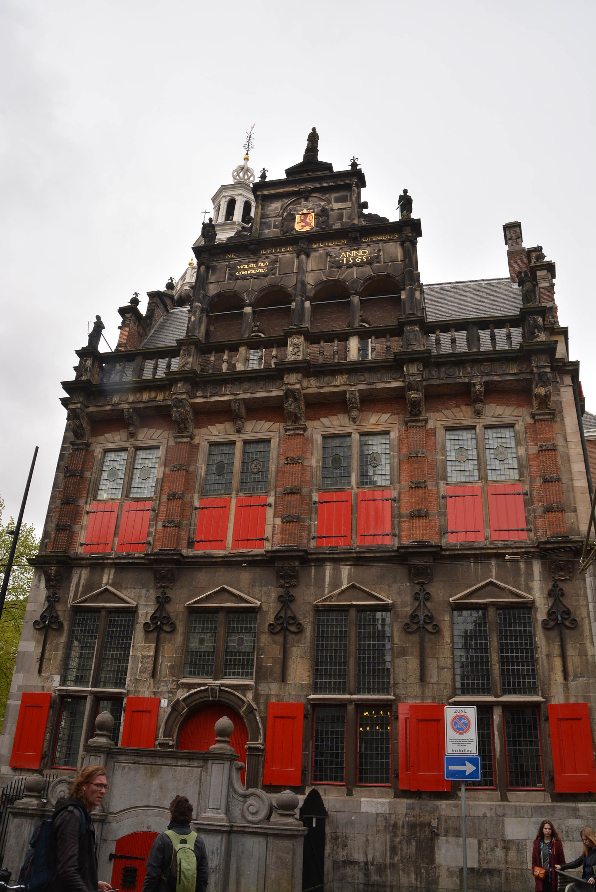 Wir wühlen uns durch die ‚Straats‘ und ‚Laans‘ dieser Welt, laufen an Grachten entlang, am ältesten Einkaufszentrum der Niederlande, der überdachten Passage, an der Groote Kerk (leider geschlossen) und am alten Stadthuis aus dem 16. Jahrhundert mit dem Wahrzeichen Den Haags, dem Storch. Interessant aber ist ein lateinisches Sprichwort am Gebäude, das übersetzt folgendes bedeutet: Wer sich an anderen ein Beispiel nimmt, lässt nach‘. Wir landen auf dem Groote Markt, einem der wichtigsten Hauptplätze der Stadt mit vielen Kneipen und Cafés. Hier ruhen wir aus, trinken Kaffee, essen Toast und suchen auf der Karte das ‚Königshaus‘. Wir finden später nur das Gebäude der königlichen Pferdekutschen und den angrenzenden Botanischen Garten. Wir laufen noch durch die ‚Lange Voorhout‘,(natürlich verwende ich diesen Begriff hundertprozentig in der deutschen Sprache und spreche ihn meist sehr laut aus, was Klaus sehr unangenehm ist!!) eine der Prachtstraßen Den Haags.