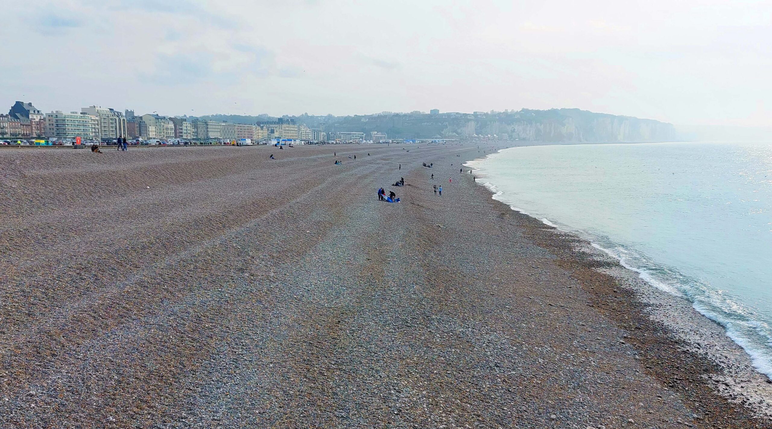 Und dann liegt er vor mir, der Plage de Dieppe, der an der zwei Kilometer langen lebhaften Promenade liegt. Die Gebäude hier stammen aus der „Belle Époque. Der Strand besteht aus Kieselsteinen, die zusammen mit dem Meerwasser ein eindrucksvolles „klackern“ ergeben.