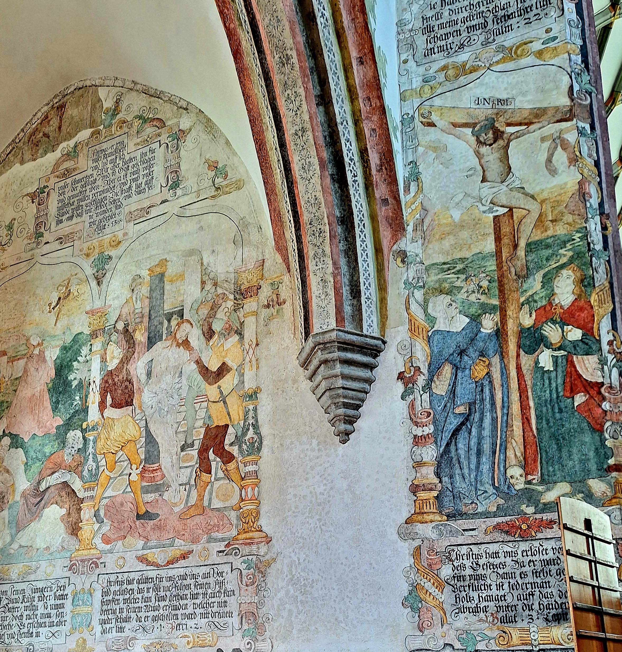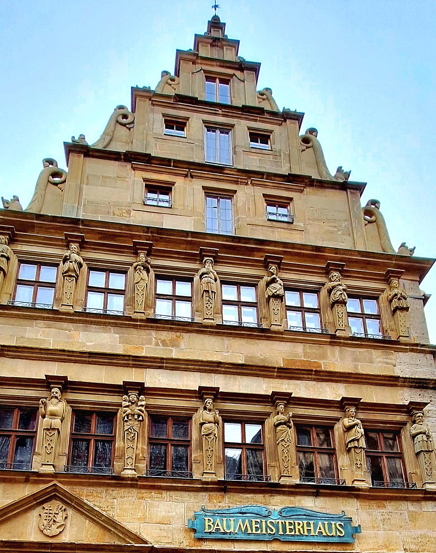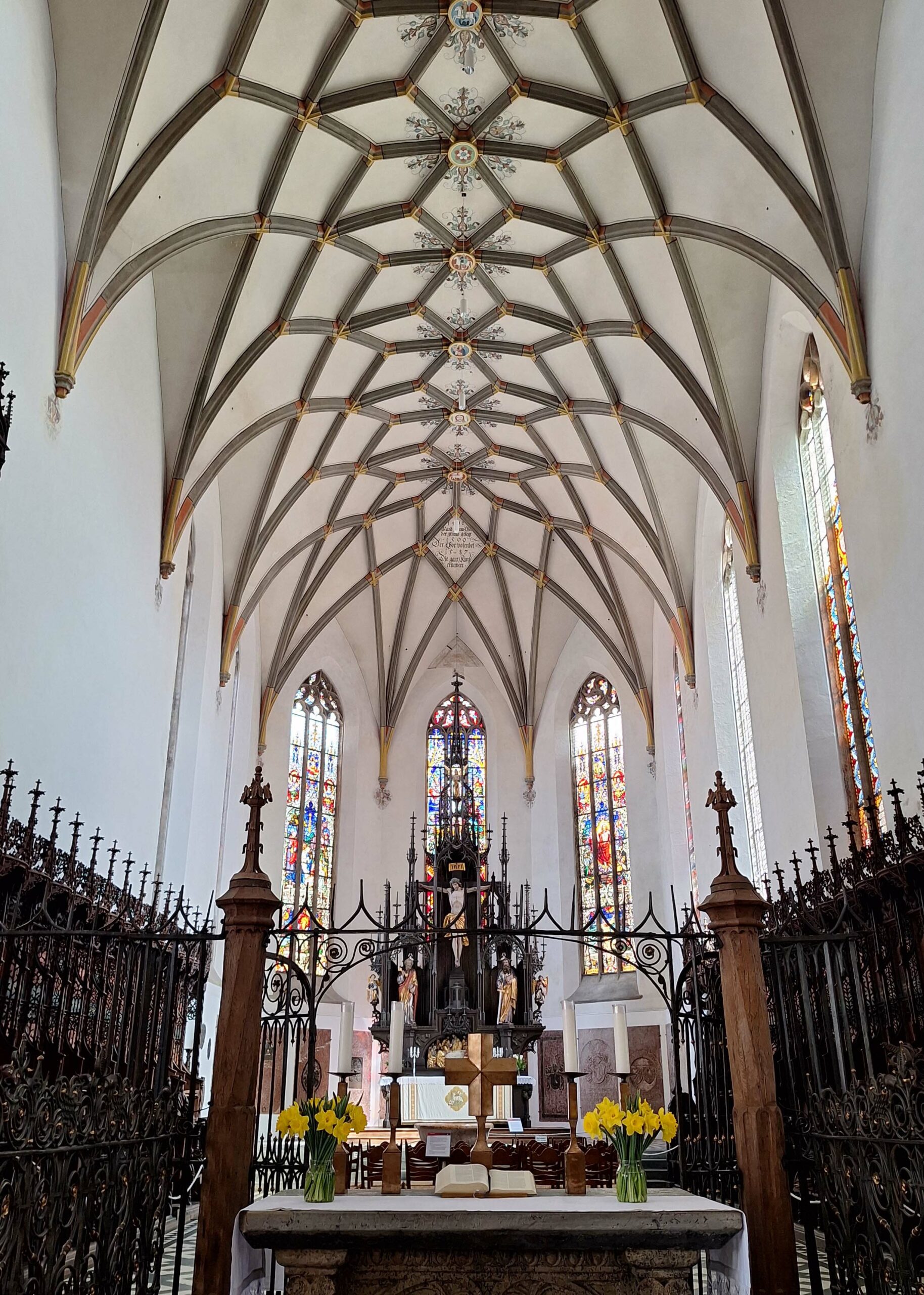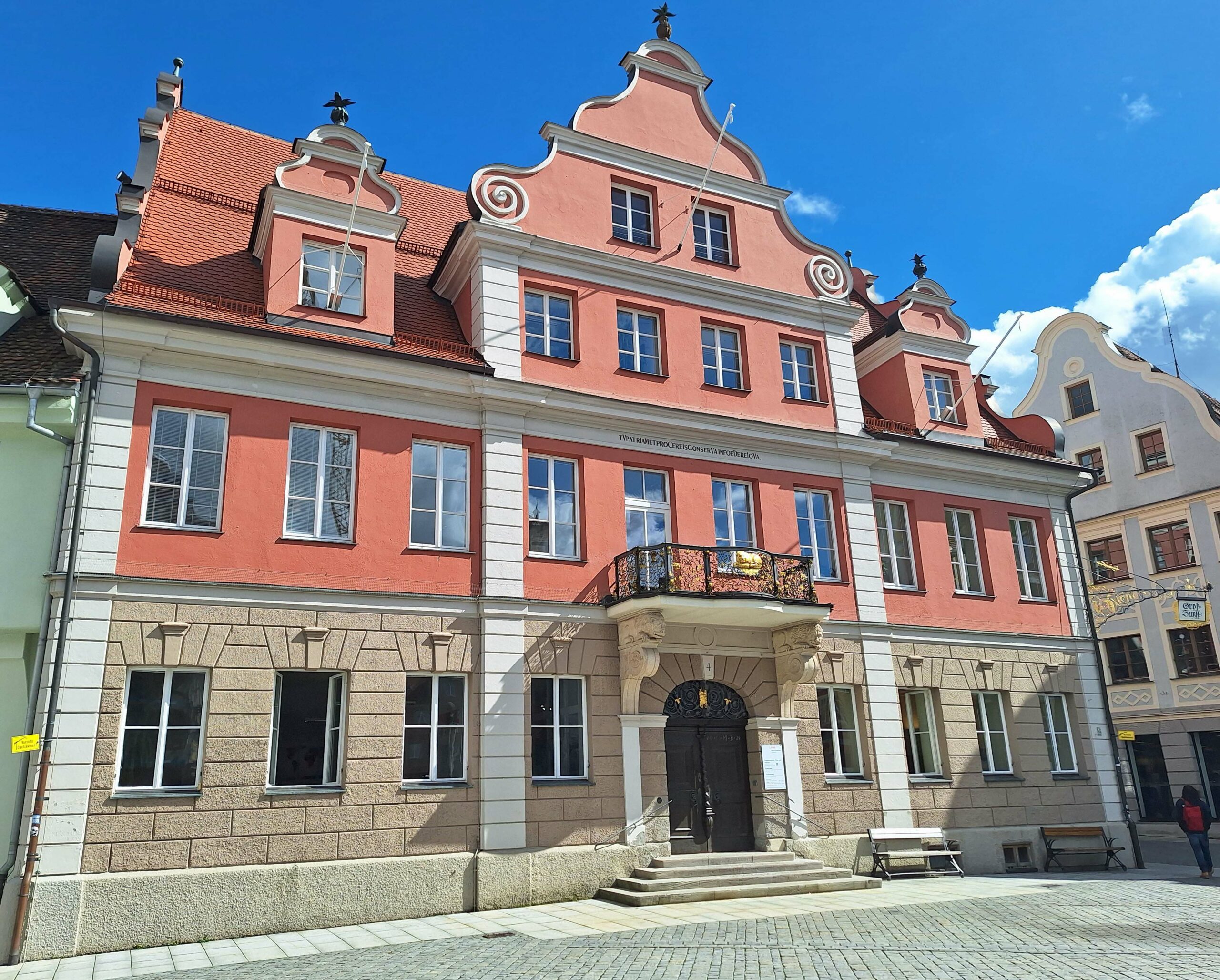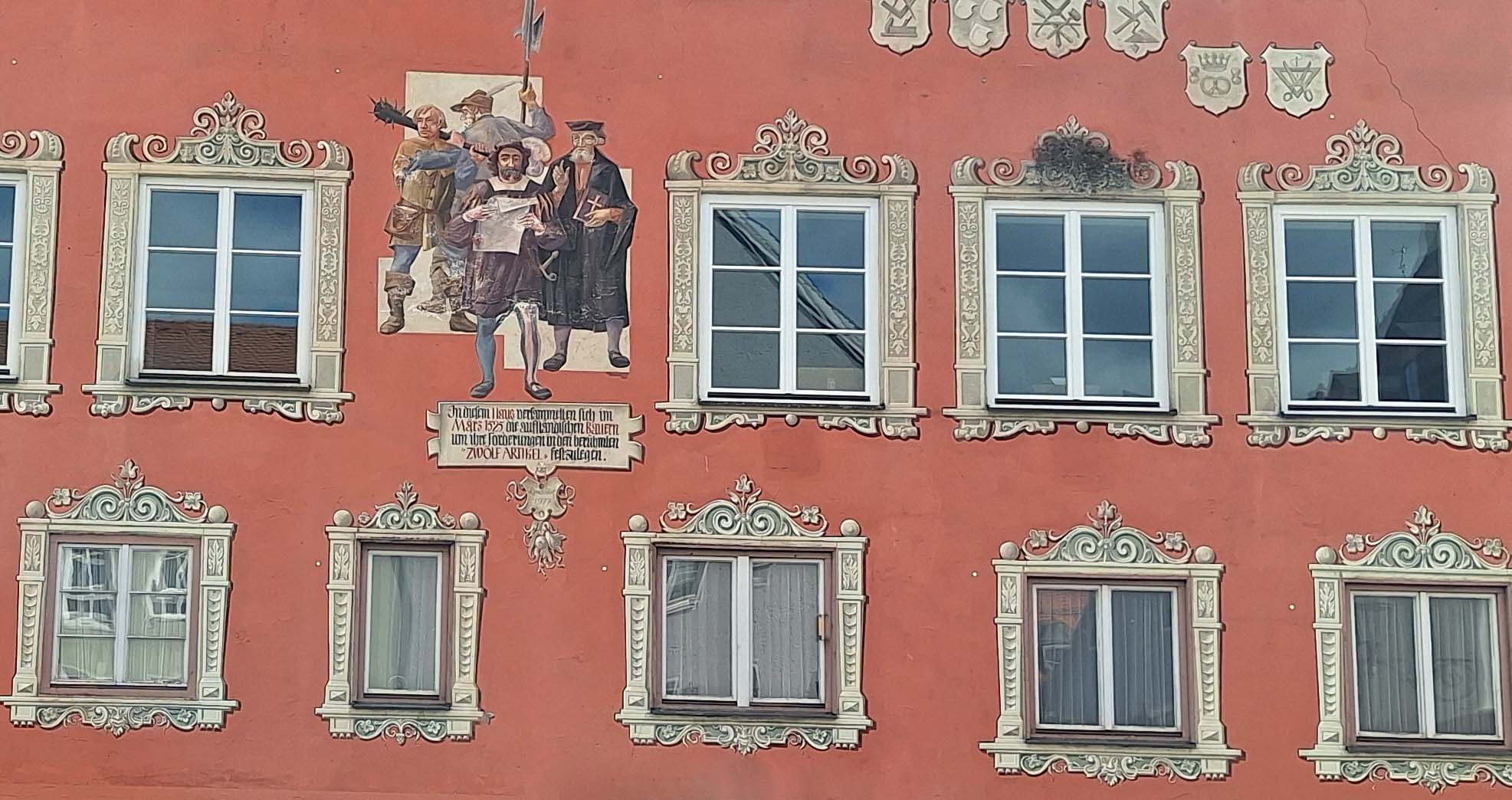 Im Herzen der Stadt stehen das weiße Rathaus (16. Jh.) mit seinen Giebeln, wunderschöne farbige Patrizierhäuser und das Steuerhaus (15. Jh.), ein Verwaltungsgebäude mit Laubengang und aufgemalten Fenstern. Nix zu gugge… wird nämlich gerade umfangreich renoviert. 😒