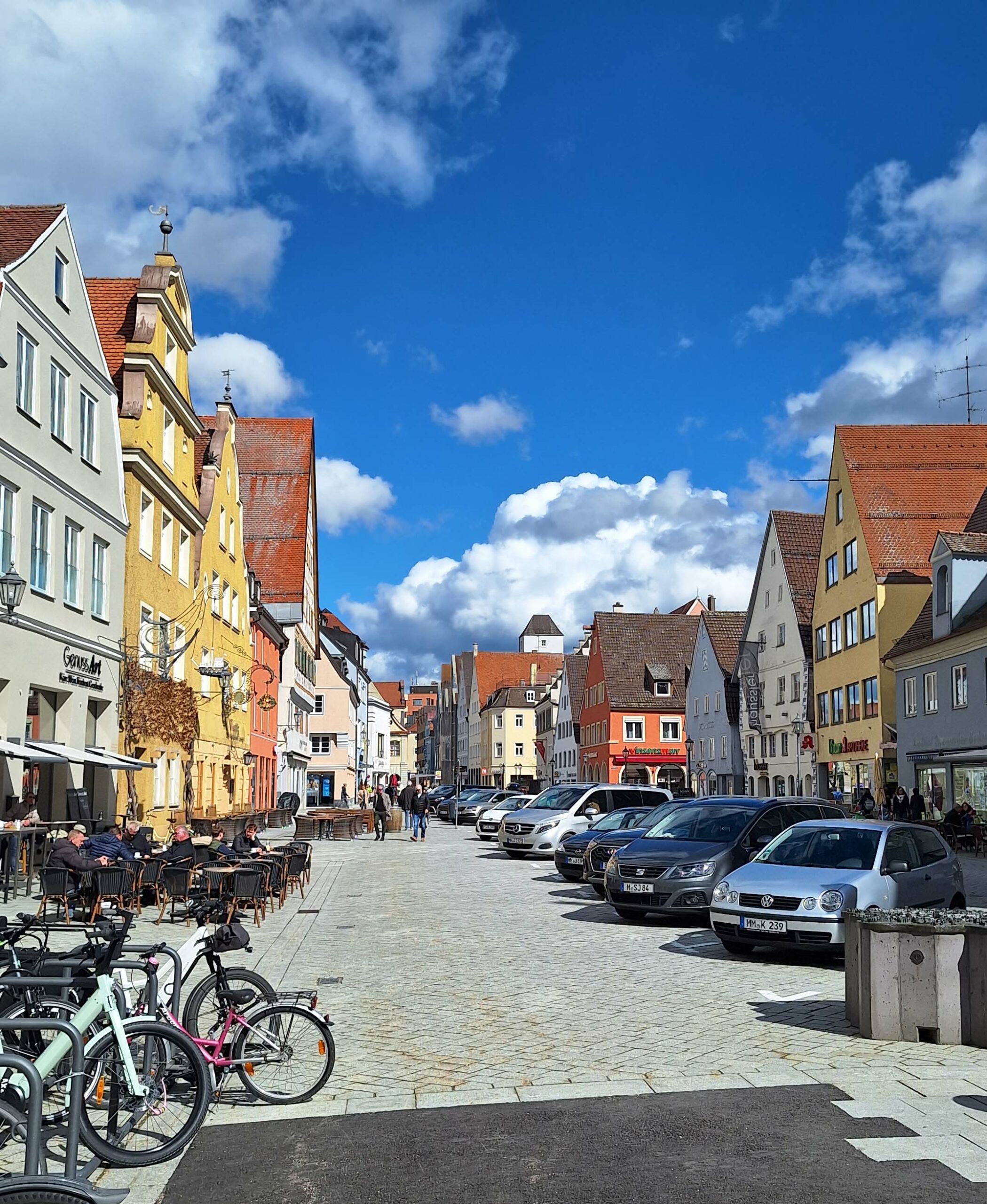 Ich habe mir als Zwischenstopp auf dem Nachhauseweg die frühere Reichsstadt Memmingen im schwäbischen Allgäu ausgesucht. Bin gespannt auf die Stadt der Tore, Türme & Giebel – einer der Werbeslogans der Kleinstadt. Ich finde einen kostenlosen Parkplatz für Fiete und laufe gerade mal 800 Meter zum Zentrum.