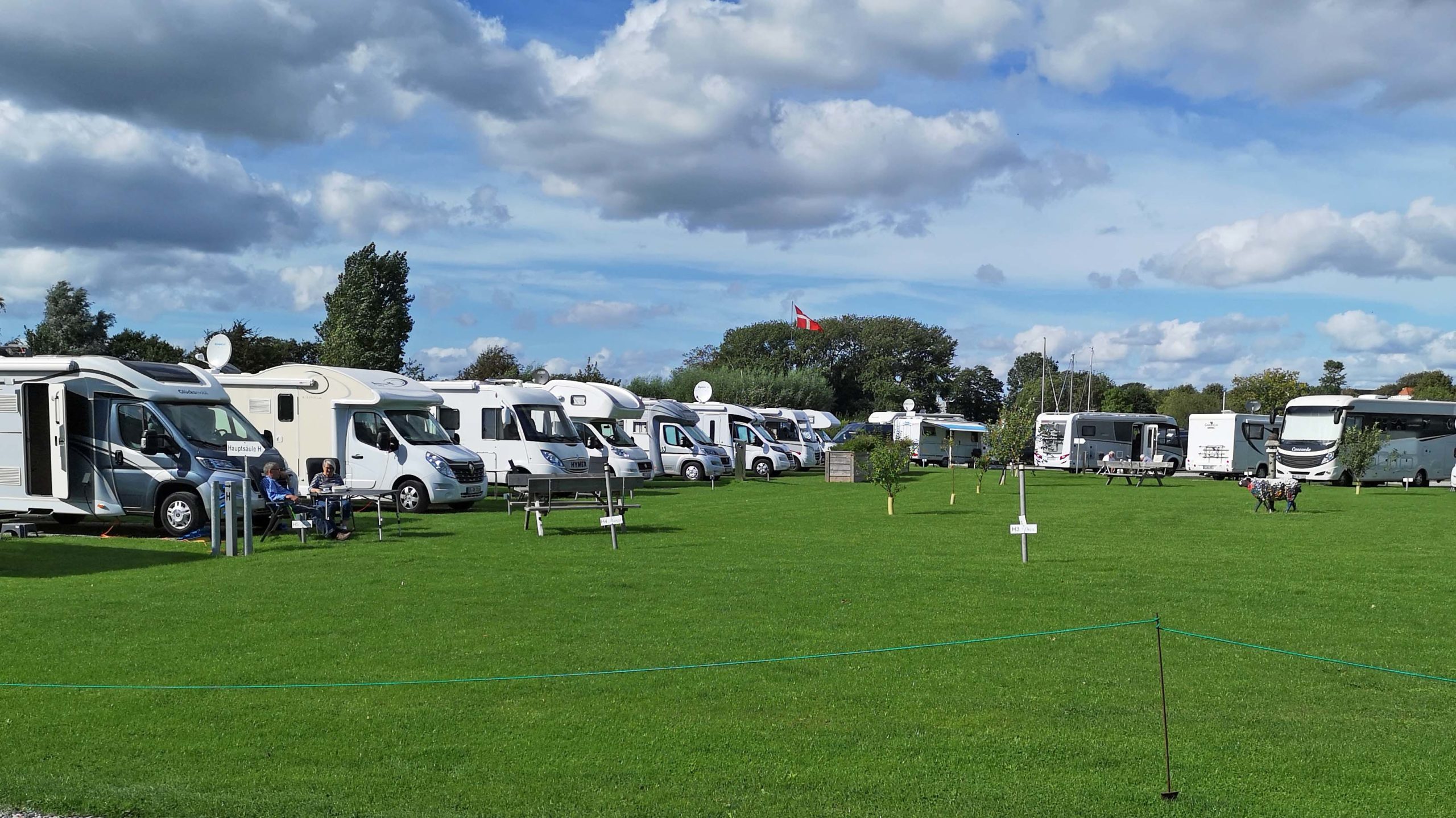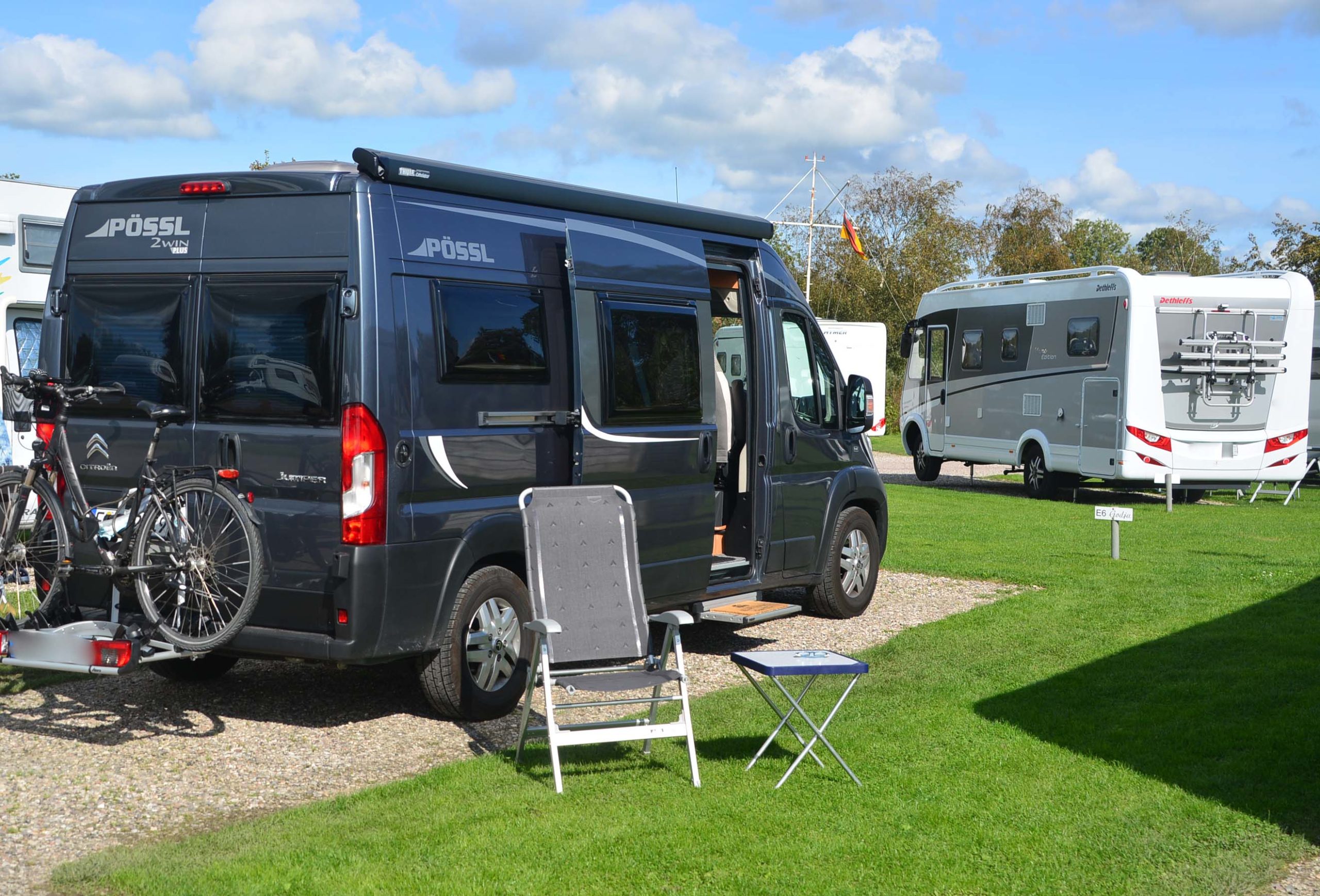 Das Reizklima reizt mich nicht mehr und ich stehe vollkommen fit und ausgeschlafen schon um ½ 8 auf. Das Wetter ist brauchbar: Sonne und Wolken, aber kühl. Ich zahle und kaufe die Sturmbänder von Thule für die Markise.