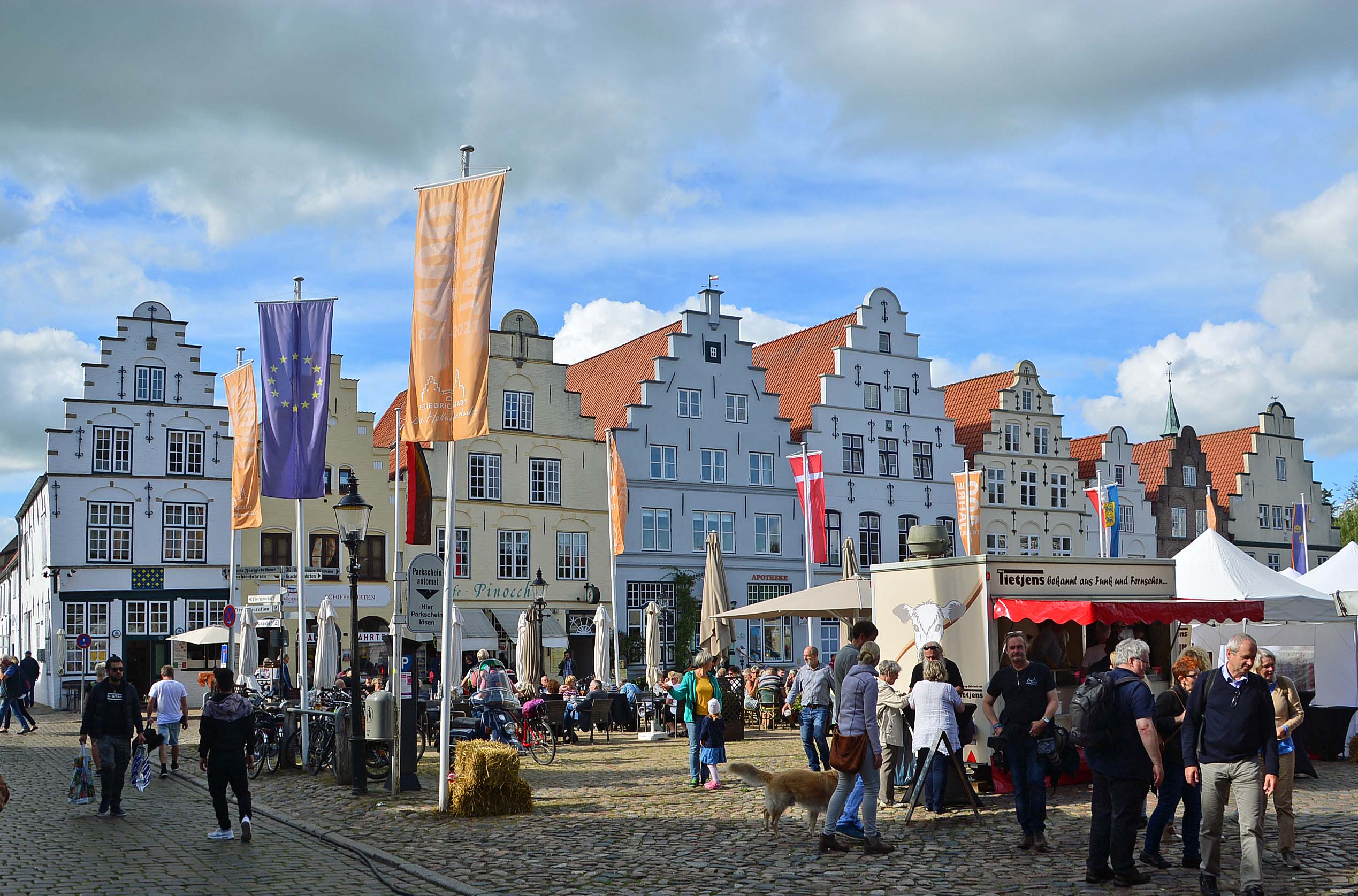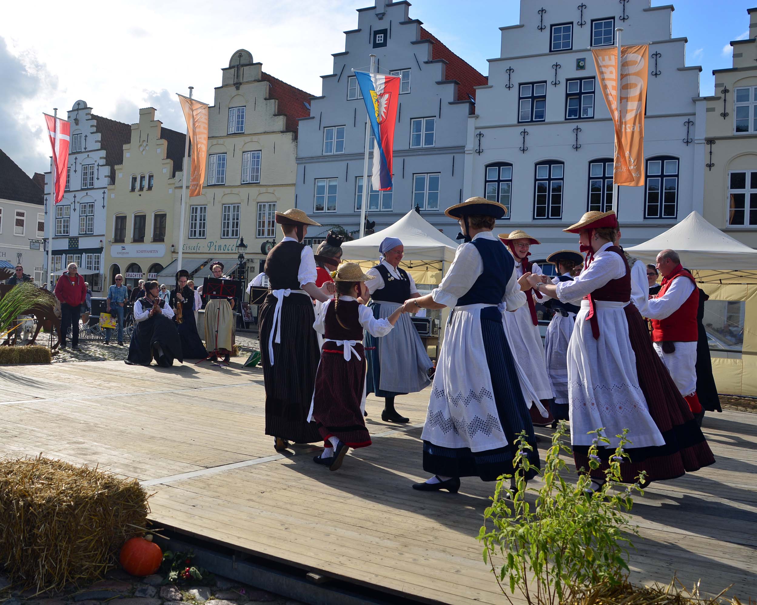 Ich übernachte auf dem Friedrichstädter WOMO-TOPP-Stellplatz ‚Am Halbmond‘. Toller Platz mit allem Schnick-Schnack und zentrumsnah. Ich chille zunächst in der Sonne und mache mich dann auf den Weg in die Altstadt zum „Herbstzauber & Keramiktage-Markt“. Ich kaufe Kaffee in einer alten Rösterei und verschiedene Mitbringsel auf dem Markt. Es gibt umjubelte Tänze in Friesentrachten.