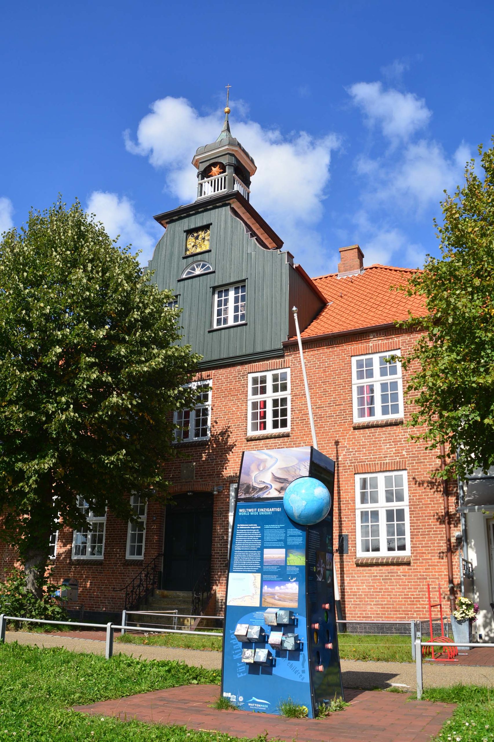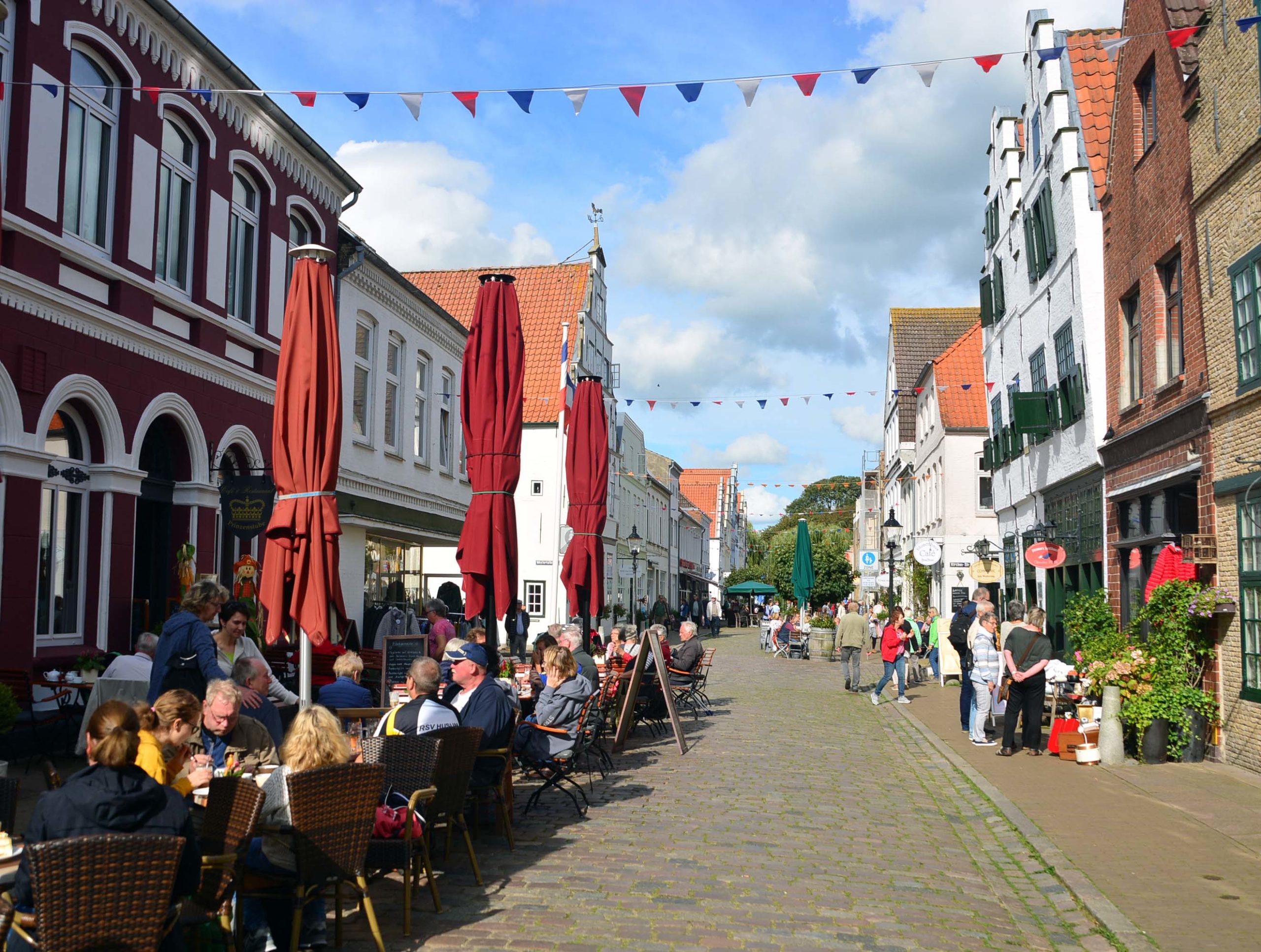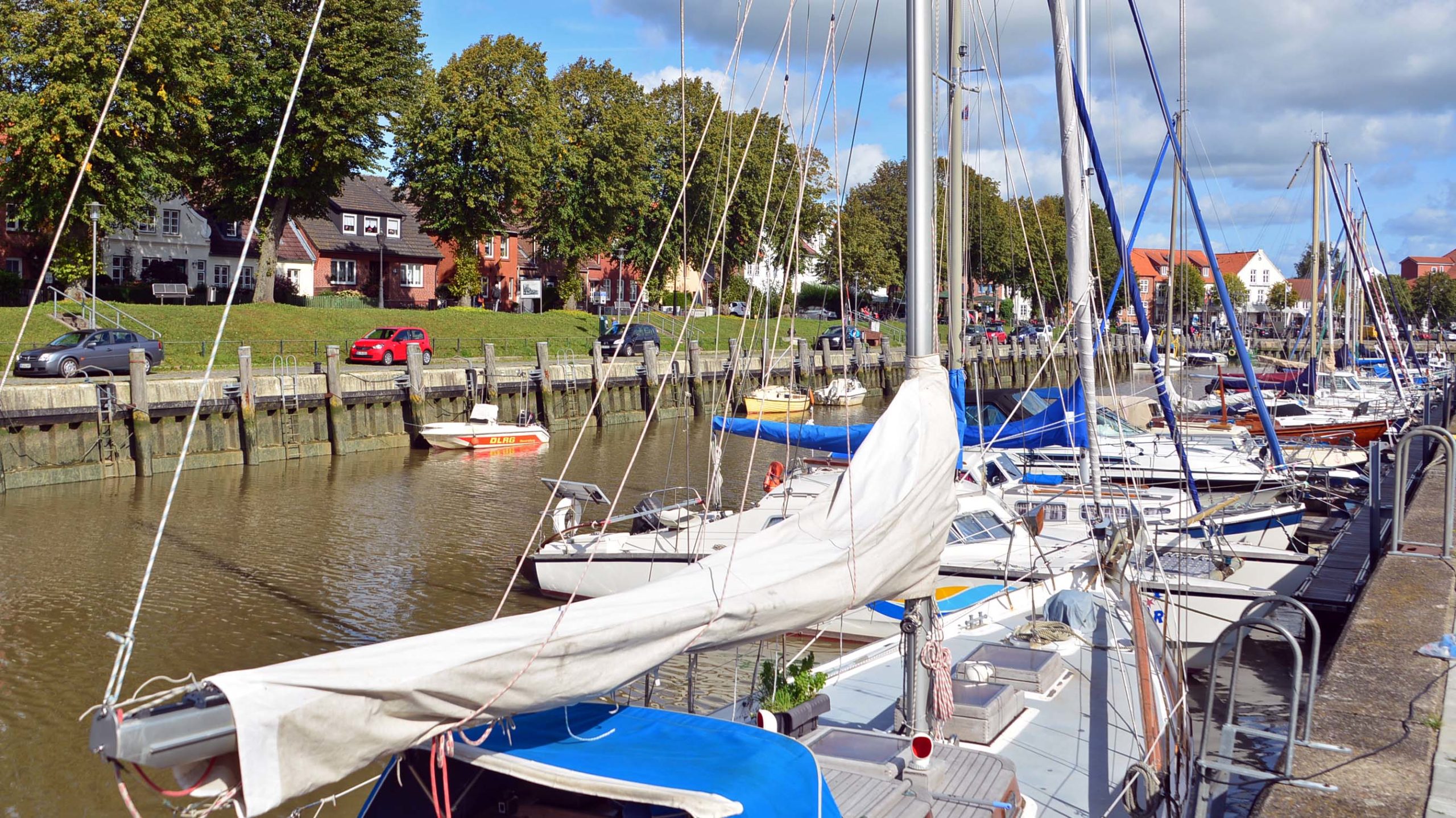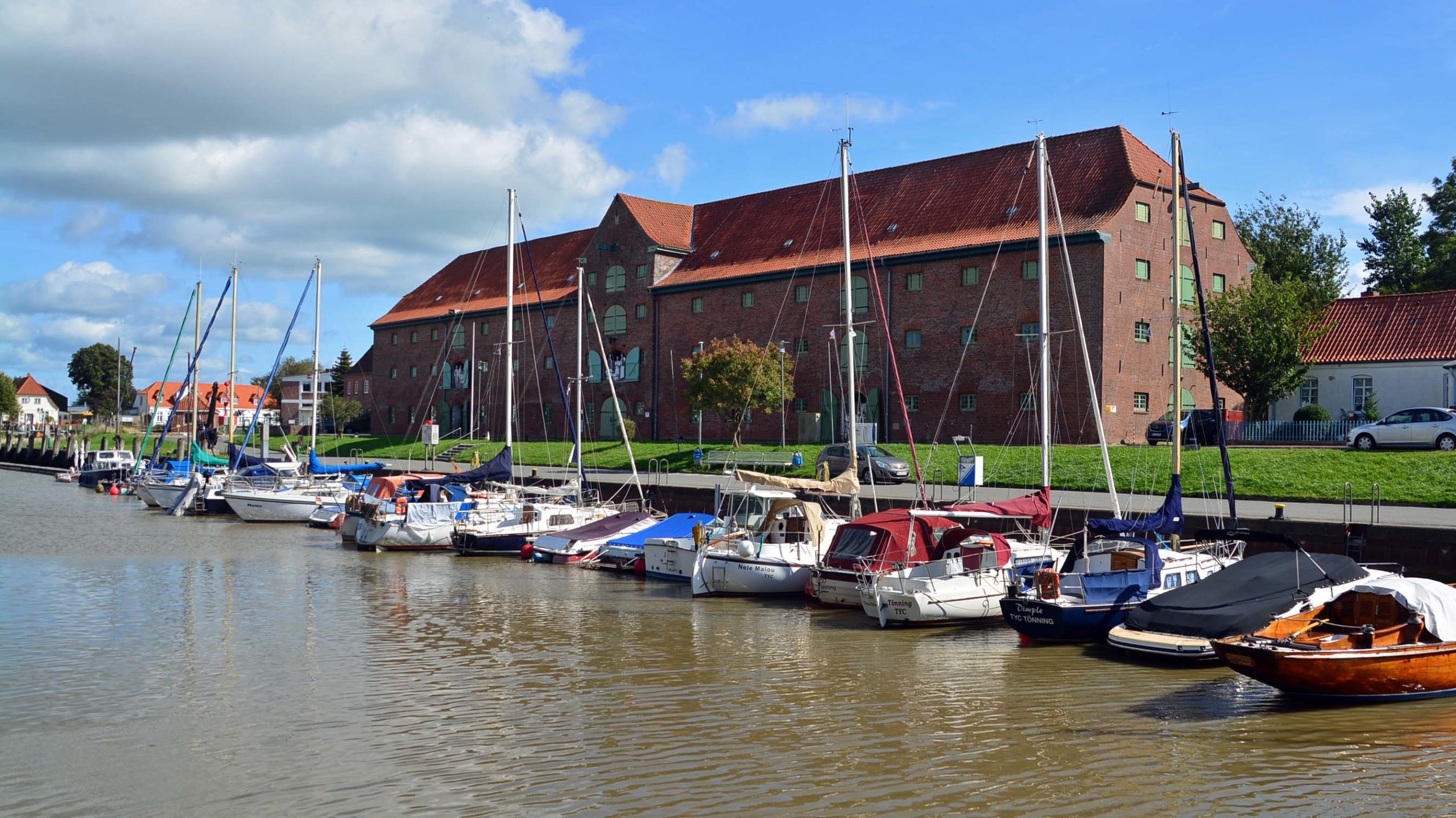 In Tönning parke ich auf dem riesigen Marktplatz neben der St. Laurentiuskirche (1180) und erkunde von hier aus die Hafenmeile. Ich schreite über die weiße hölzerne Ziehbrücke, laufe zum historischen Packhaus (1783), einem langgestreckten Speichergebäude aus rotem Backstein und zum Schifferhaus mit dem kleinen Türmchen von 1625.