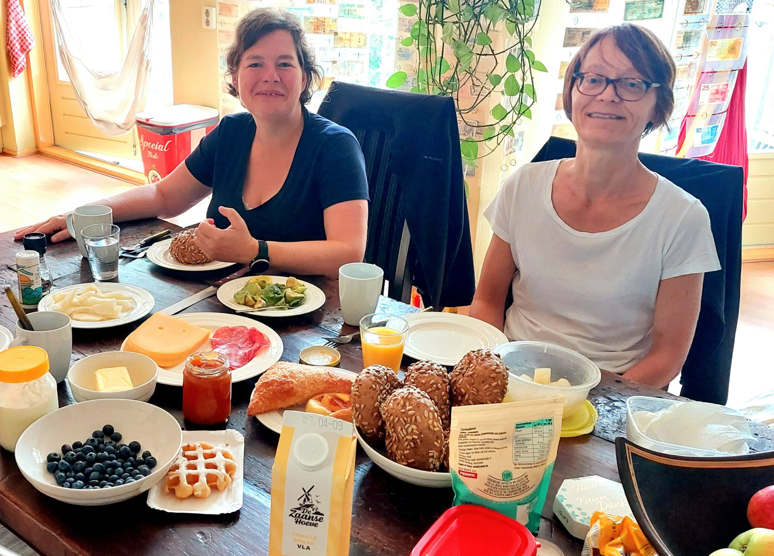 Der Tisch ist reich gedeckt und Birgit hat frische Brötchen besorgt.