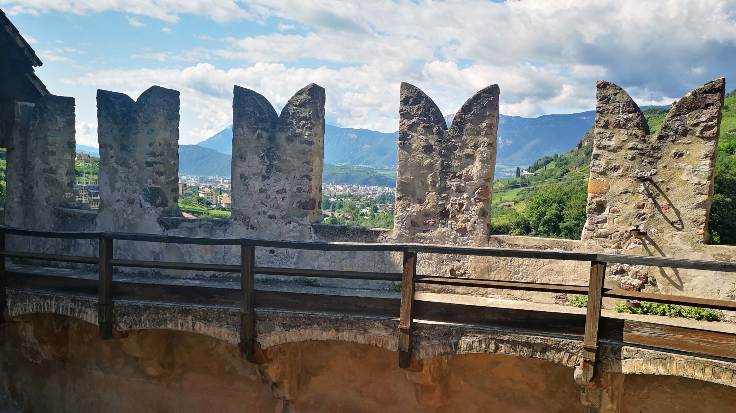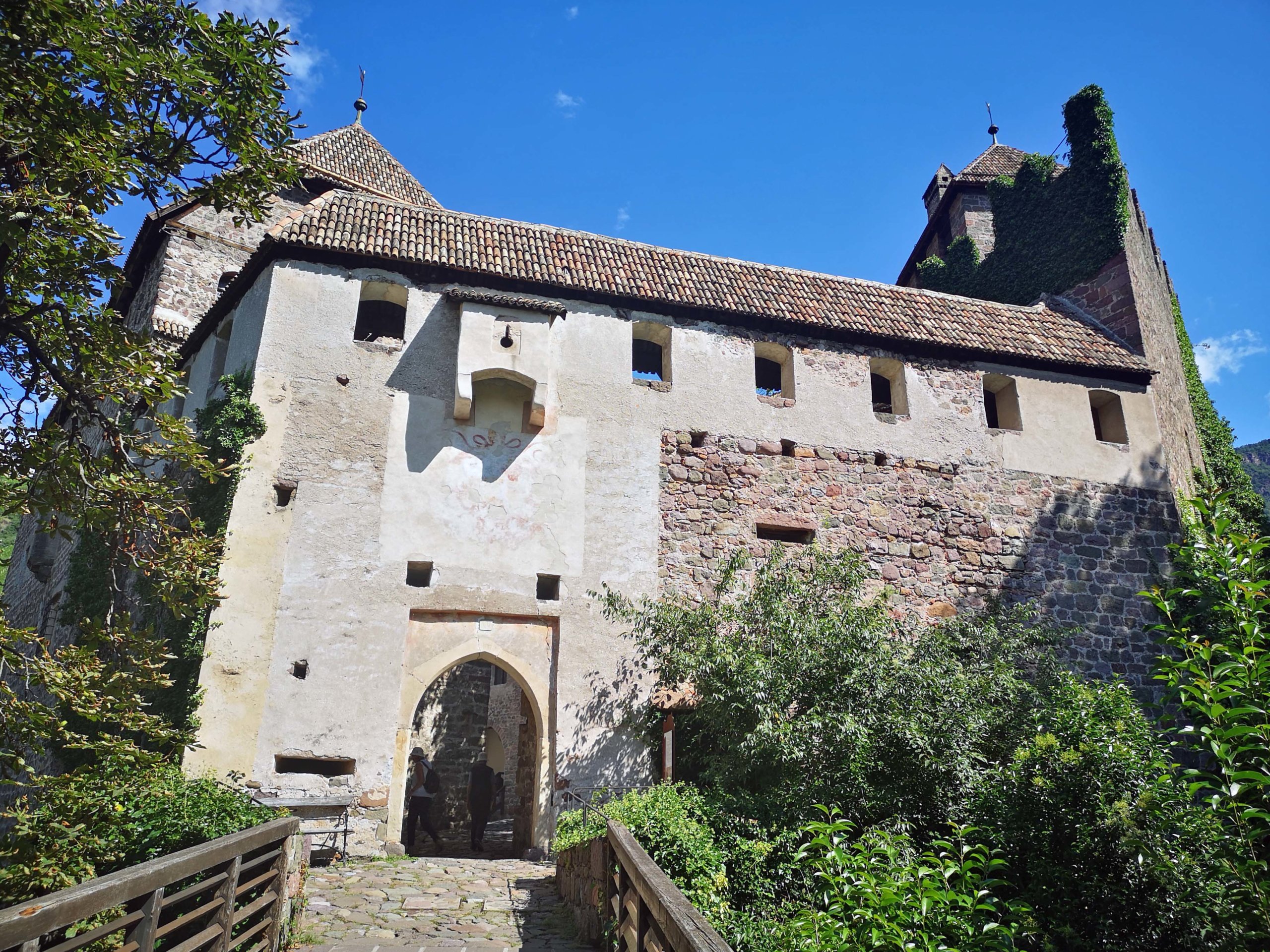 Zuerst erklimmen wir den steilen Weg zur Burg, den schon Kaiser Franz-Josef entlangschritt. Es ist sonnig und warm. Die Gemäuer der ‚Bilderburg‘ bergen prächtige Fresken mit Szenen aus dem Leben bei Hofe. Sie erzählen von der Jagd, von Ritterturnieren, Edeldamen und vom mittelalterlichen Alltag. Für ein ‚Taschengeld‘ bekommen wir extrem gut erhaltene Fresken zu sehen. Wir sind  beeindruckt. Und der Blick ins Tal auf Bozen ist fantastisch. Nach soviel Kultur geht’s jetzt ins Eisacktal.