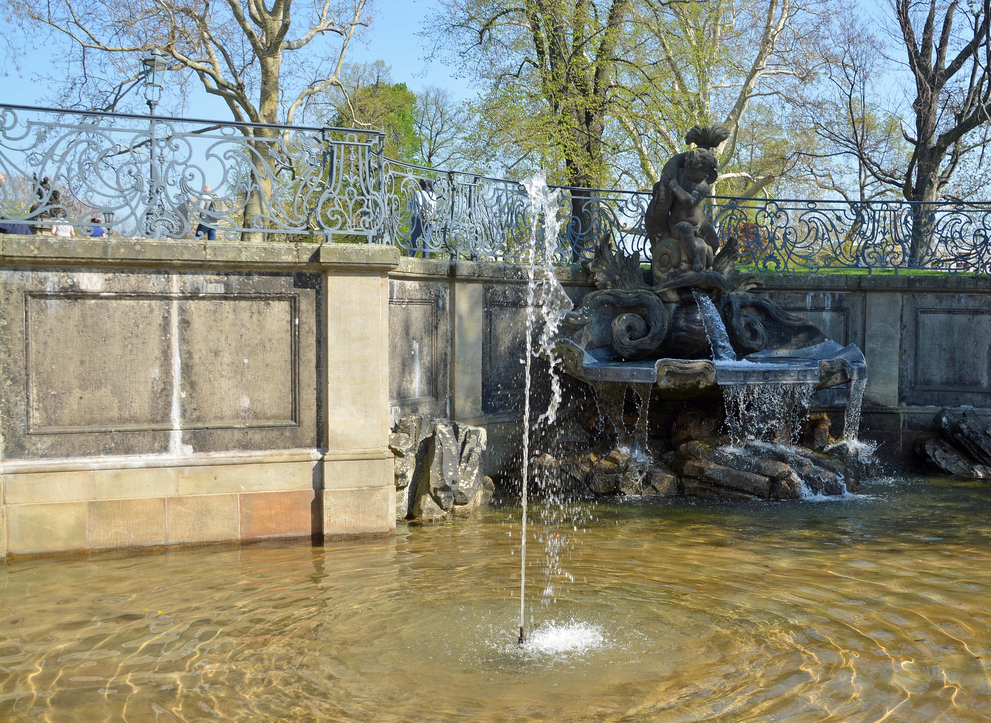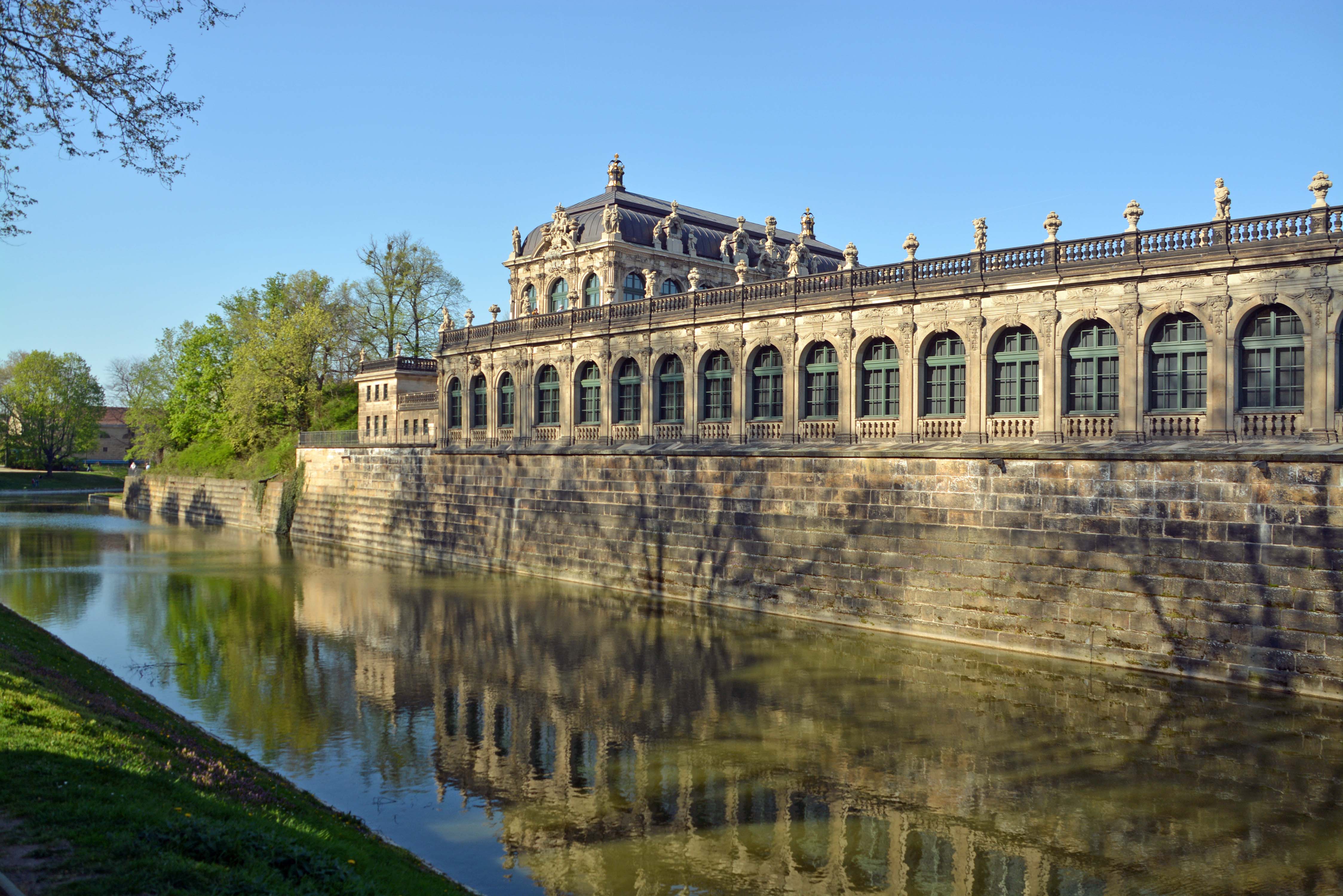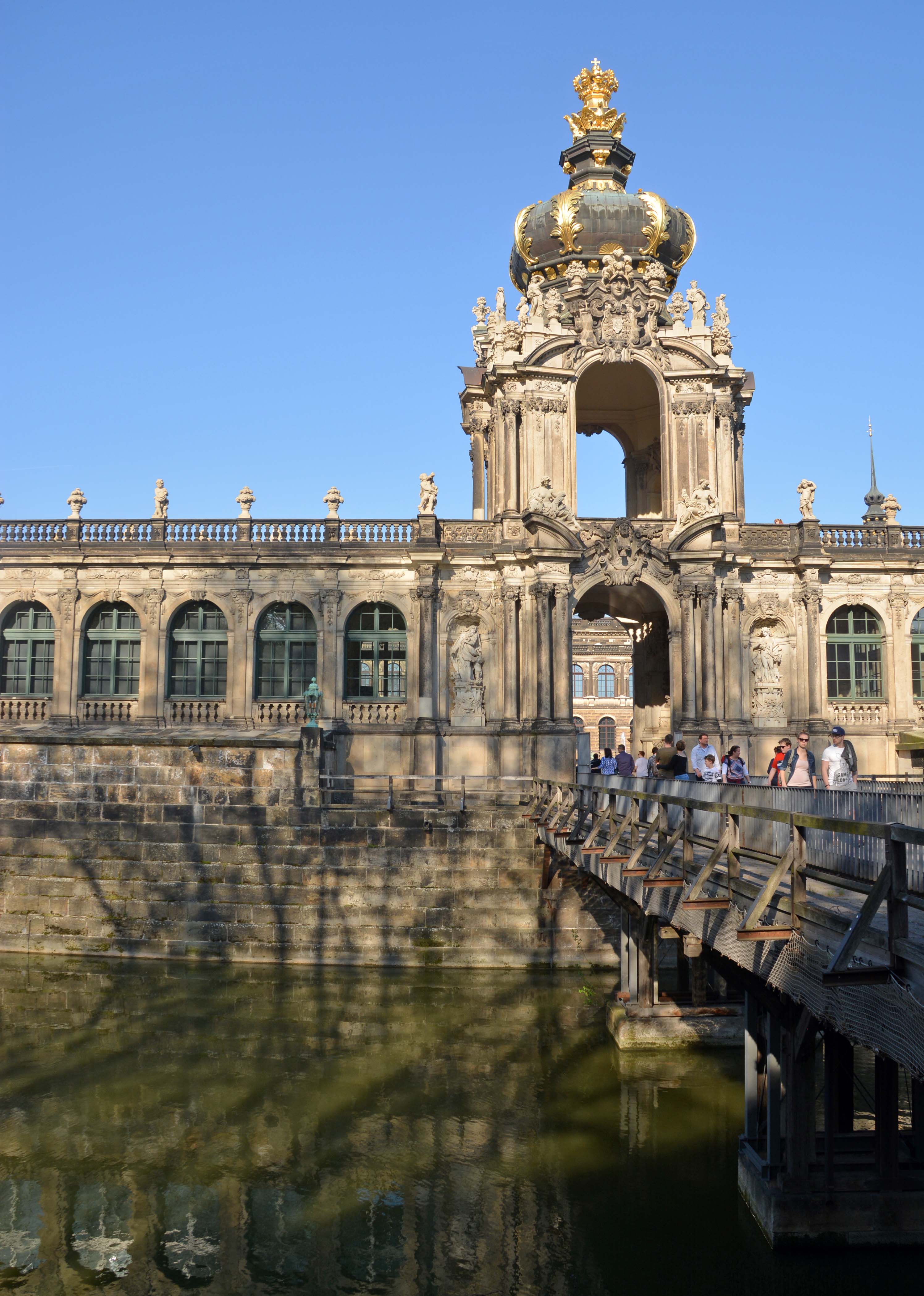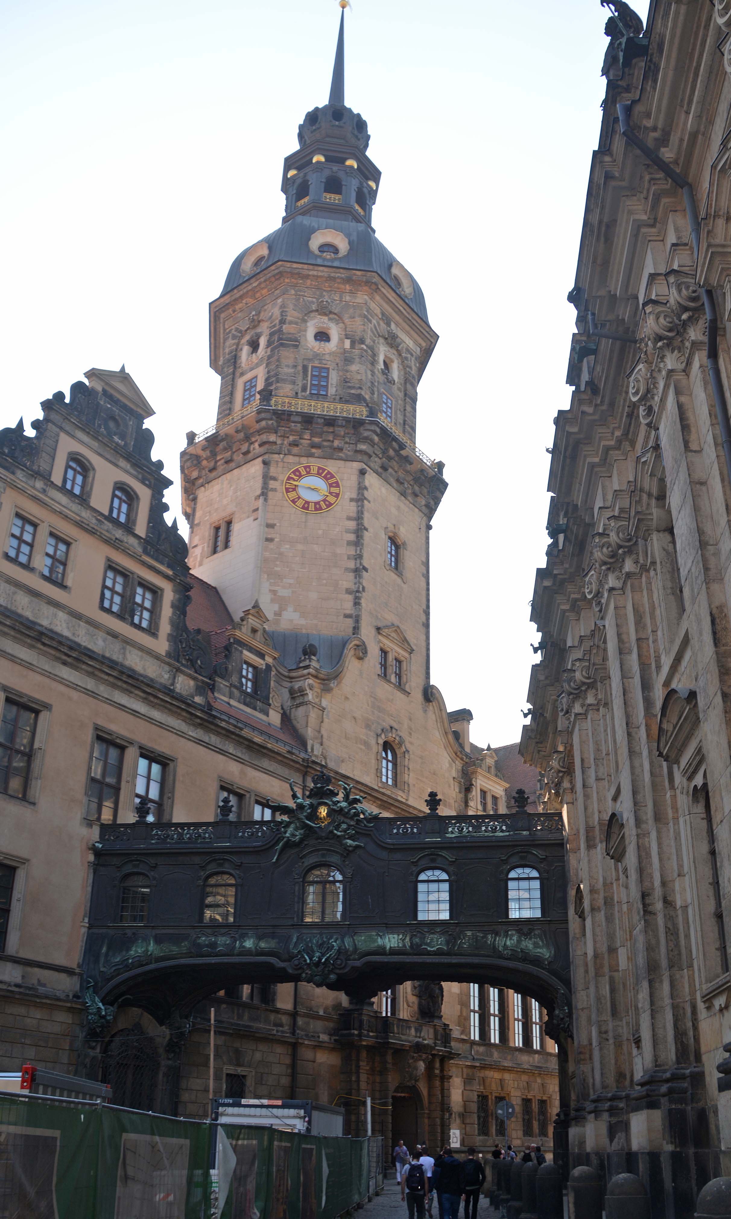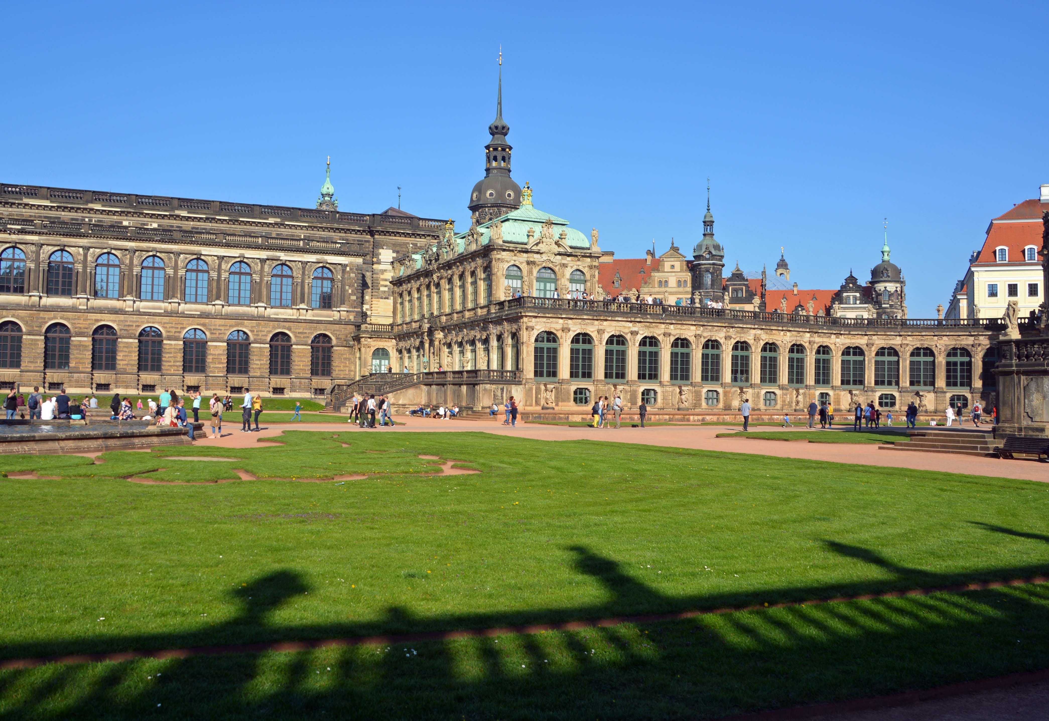 Jetzt ist der spätbarocke Zwinger, eine Gartenanlage mit sechs Pavillions und üppigem Figurenschmuck an der Reihe. Er ist zweifellos Touri-Magnet Nummer 2. Da wo einst Freiluftopern, Wagenrennen und andere Spektakel stattfanden, wuseln heute Touris durch und halten jede Kleinigkeit millionenfach in Bildern und Selfies fest. Seinen Namen verdankt der Gebäudekomplex seiner Lage zwischen äußerer und innerer Stadtmauer. Diese war zum Einzwingen des Feindes gedacht.