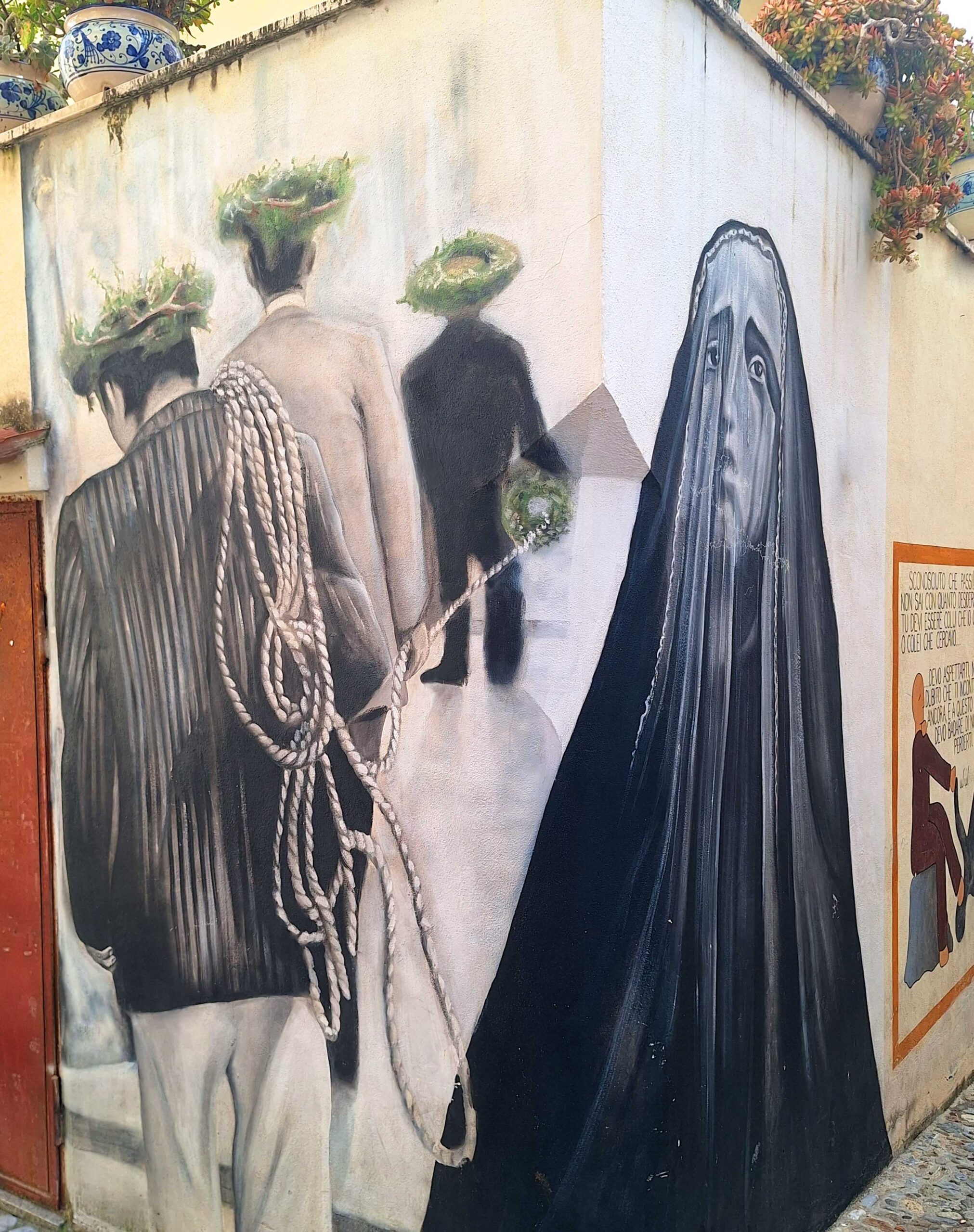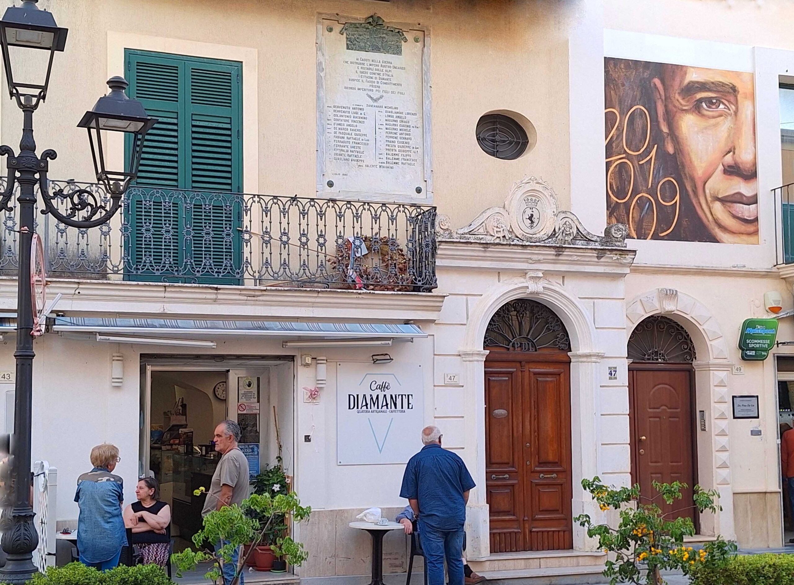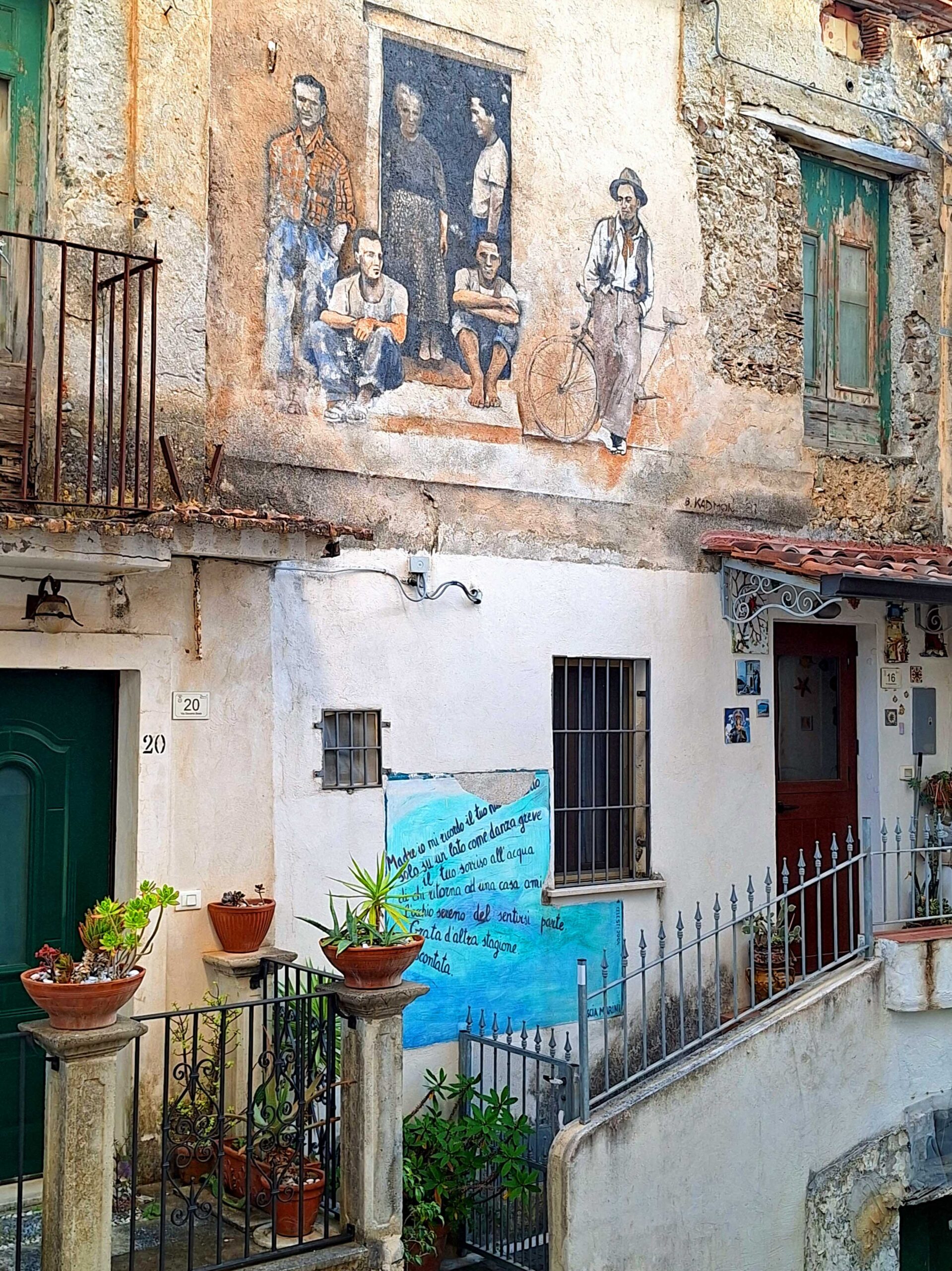 Weil die KĂŒche kalt bleibt, gehe ich Pizza đ essen, trinke ein Aperölchen đčmit NĂŒssen und Chips und treffe hier meine Schweinfurter Campingnachbarn. Danach mache ich mich auf die Suche nach den gut 200 âMurales di Diamanteâ (Wandbilder), fĂŒr die Diamante bekannt ist. 1981 gestalteten ca. 80 KĂŒnstler đŒïžđïžmit der âOperation Muralsâ eine wahre Freiluft-Kunstgalerie an den HĂ€userwĂ€nden. Seitdem ist der KĂŒstenort die meistbemalte Stadt in Italien. đ